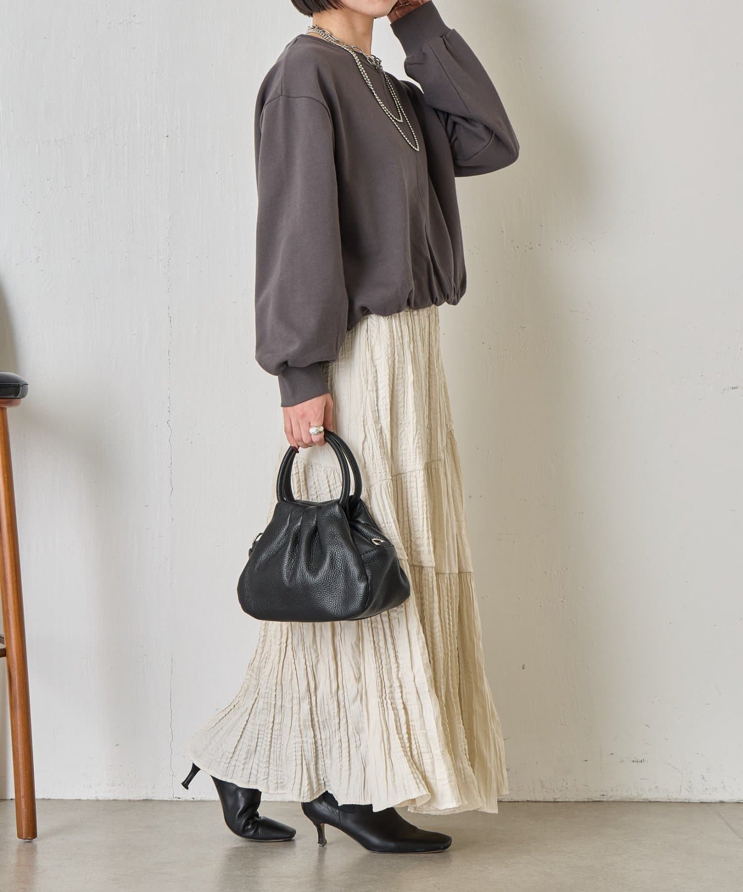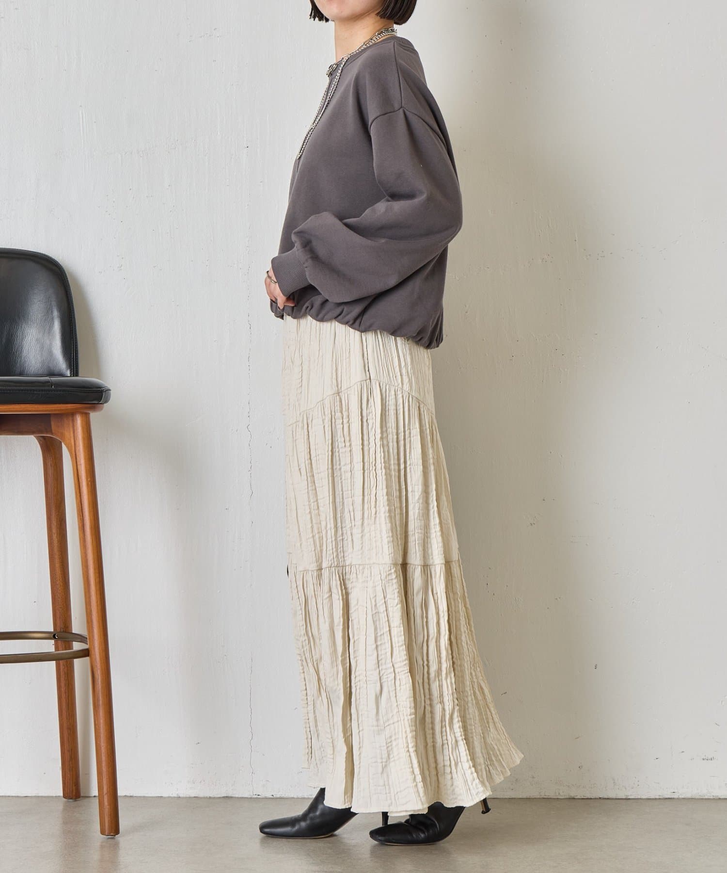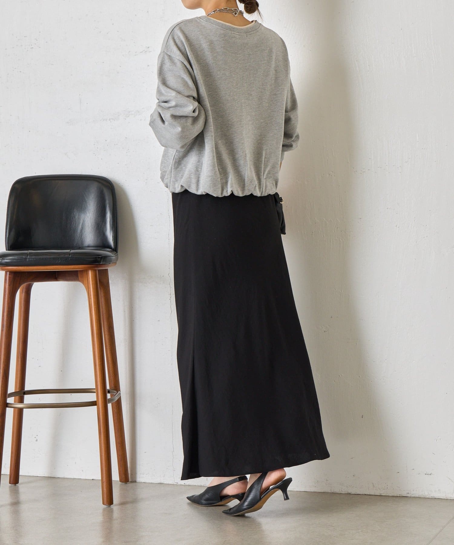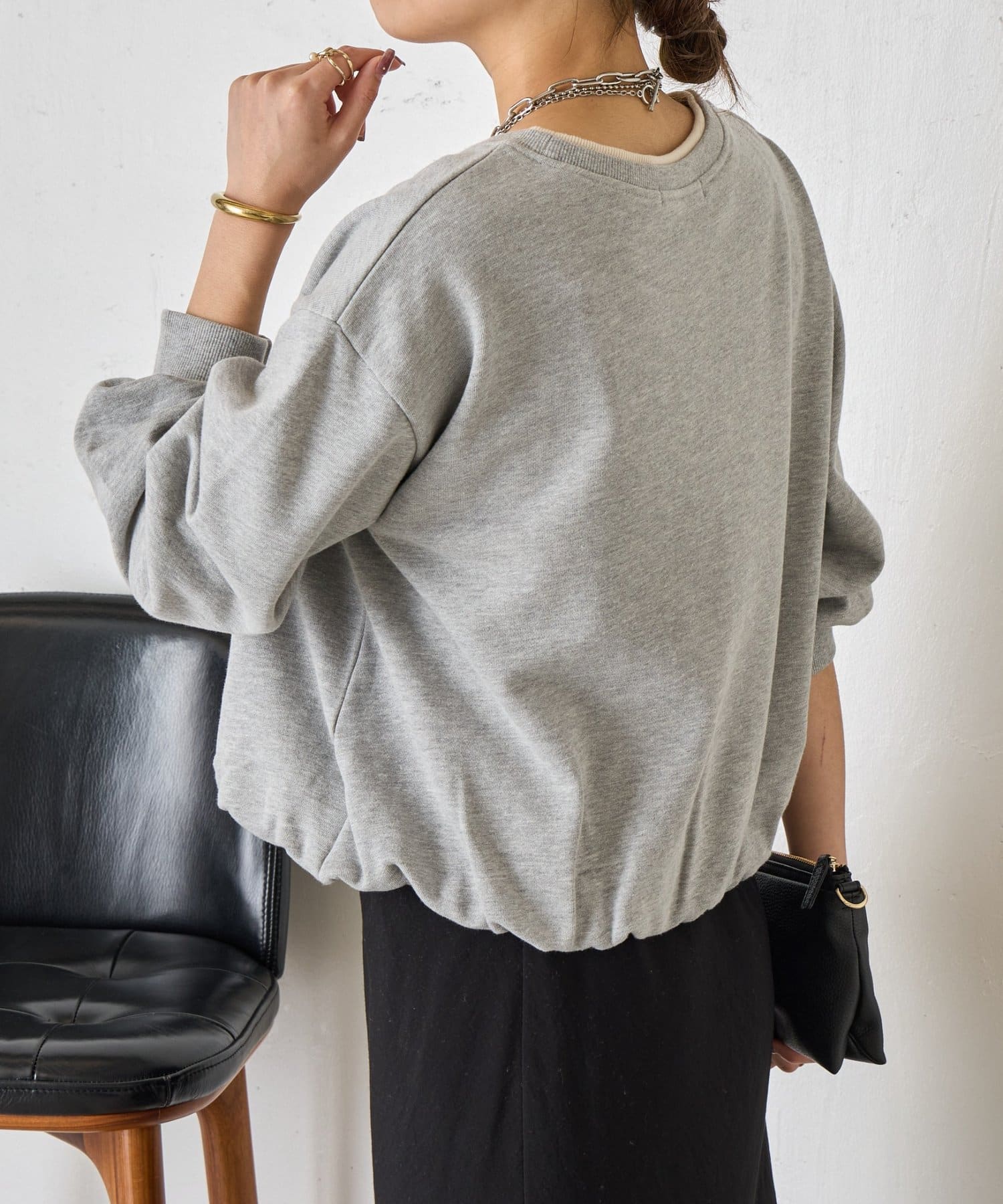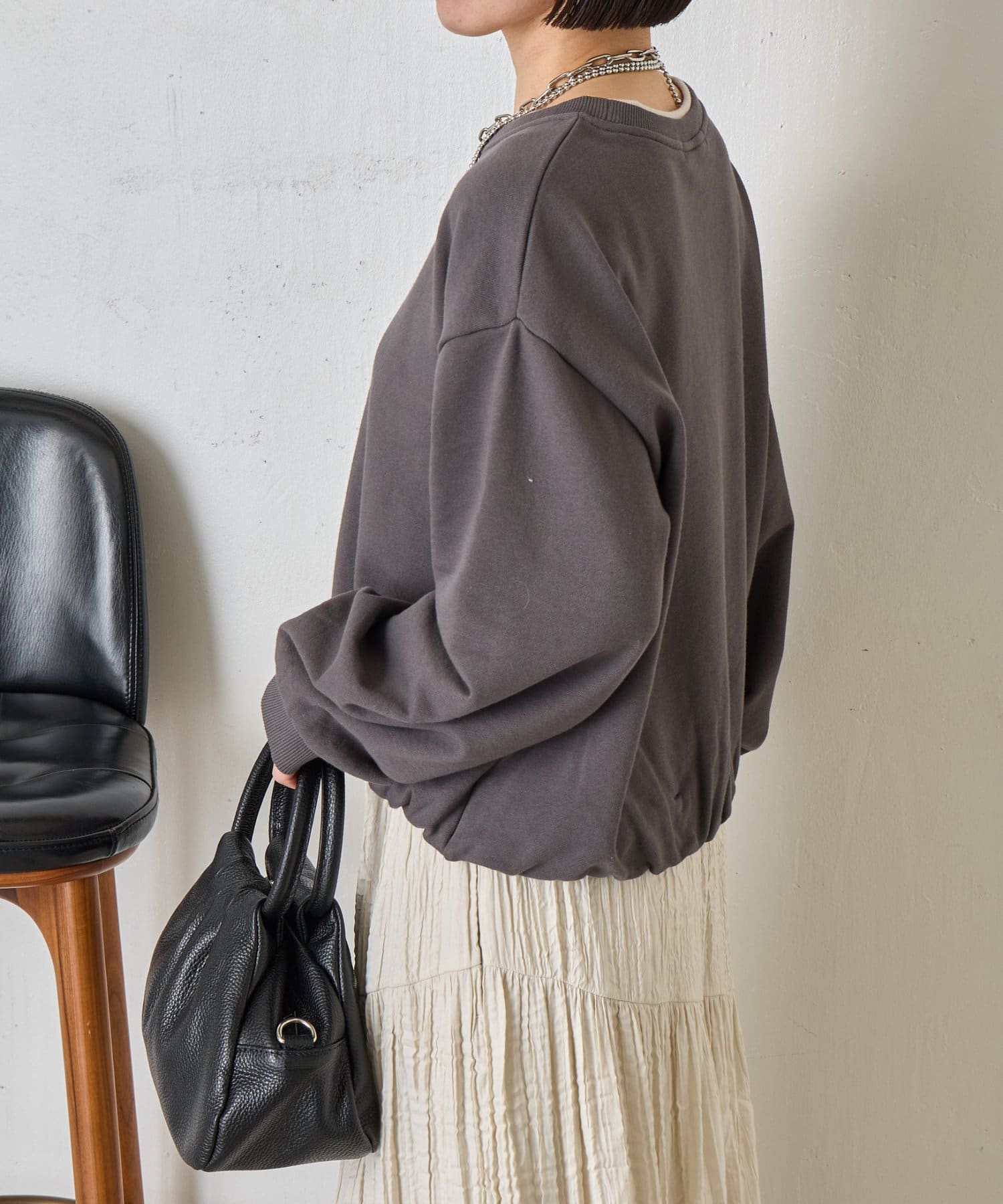 ・バルーンシルエットでスウェット素材ながらもカジュアルになりすぎない印象に。