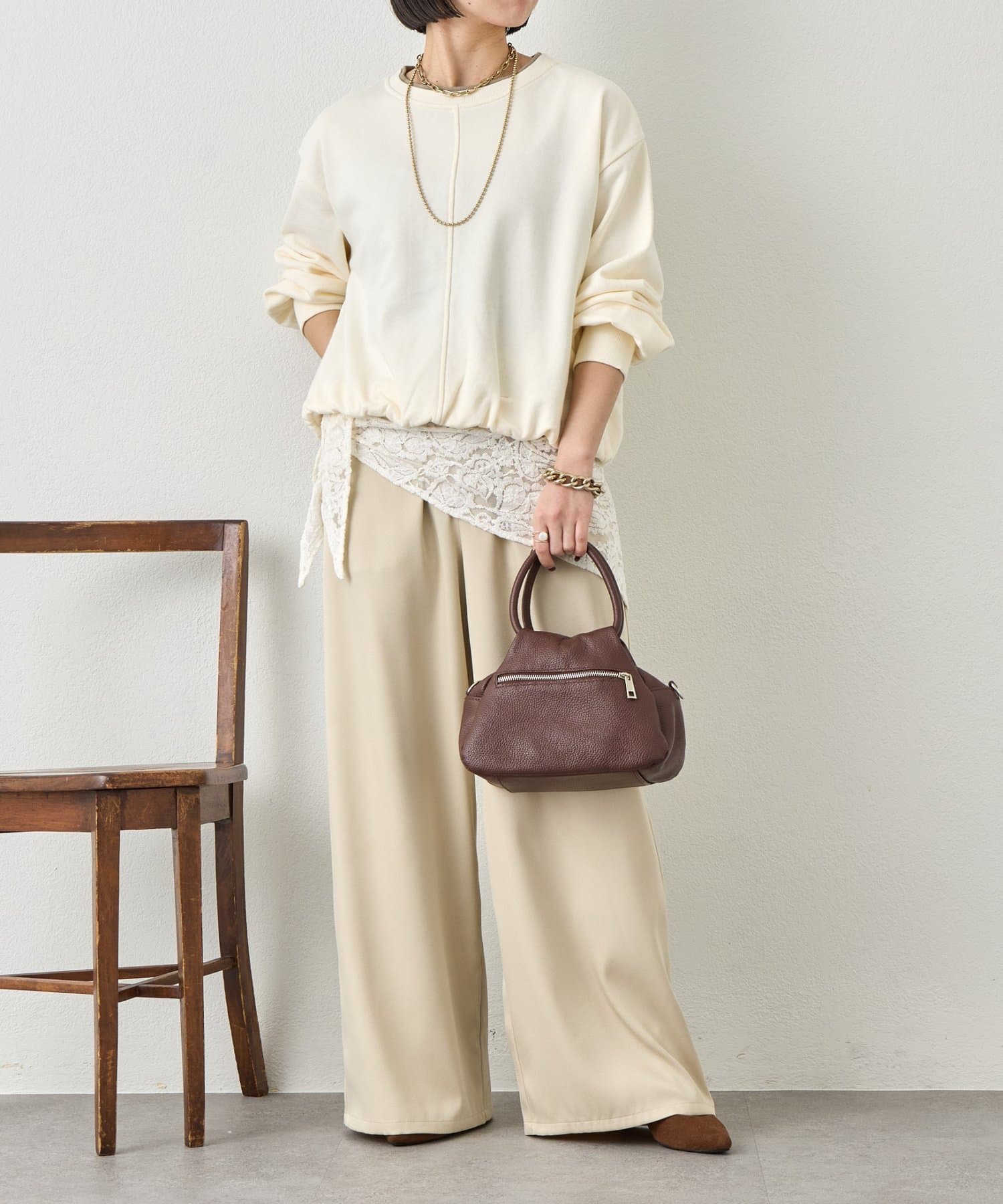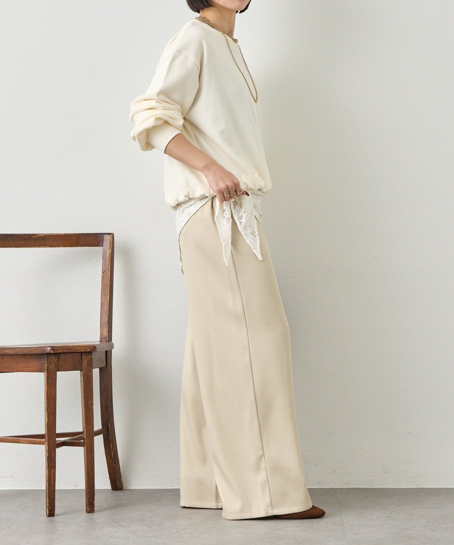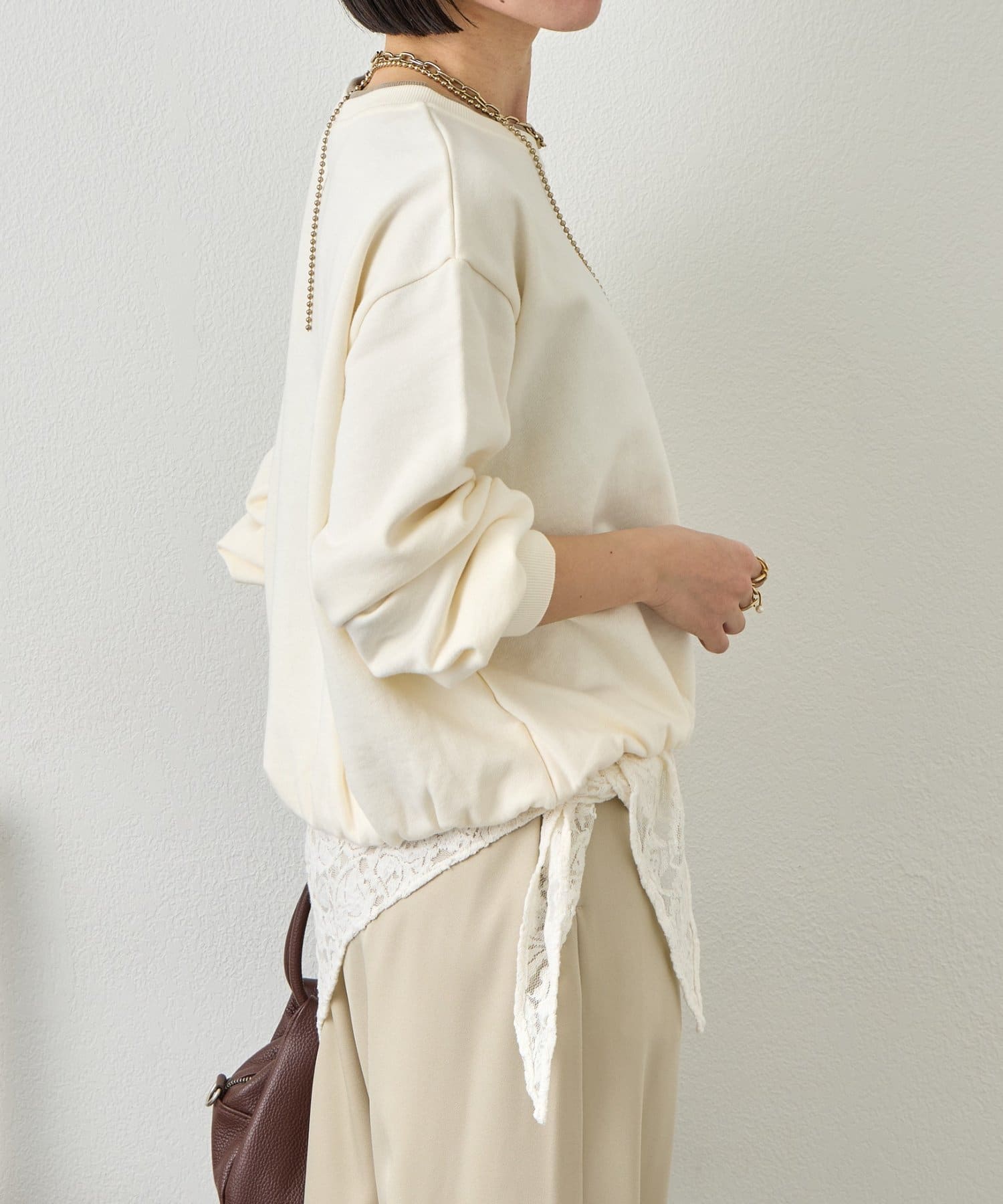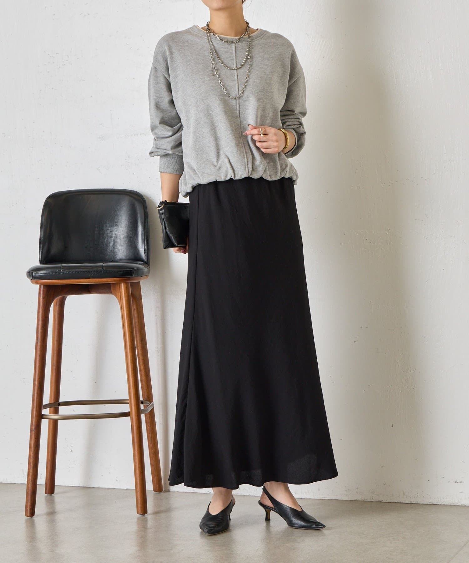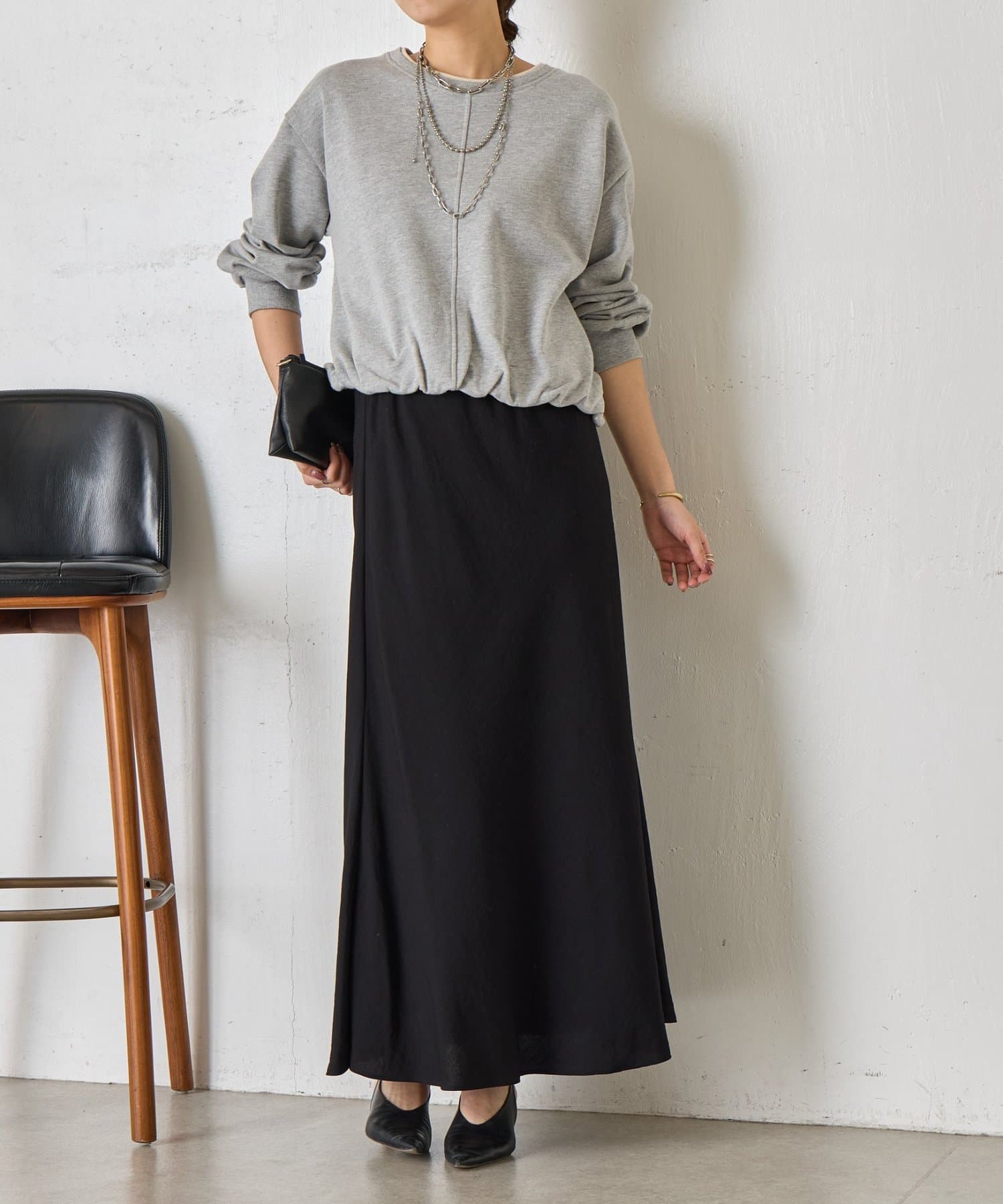 ・バルーンシルエットでスウェット素材ながらもカジュアルになりすぎない印象に。