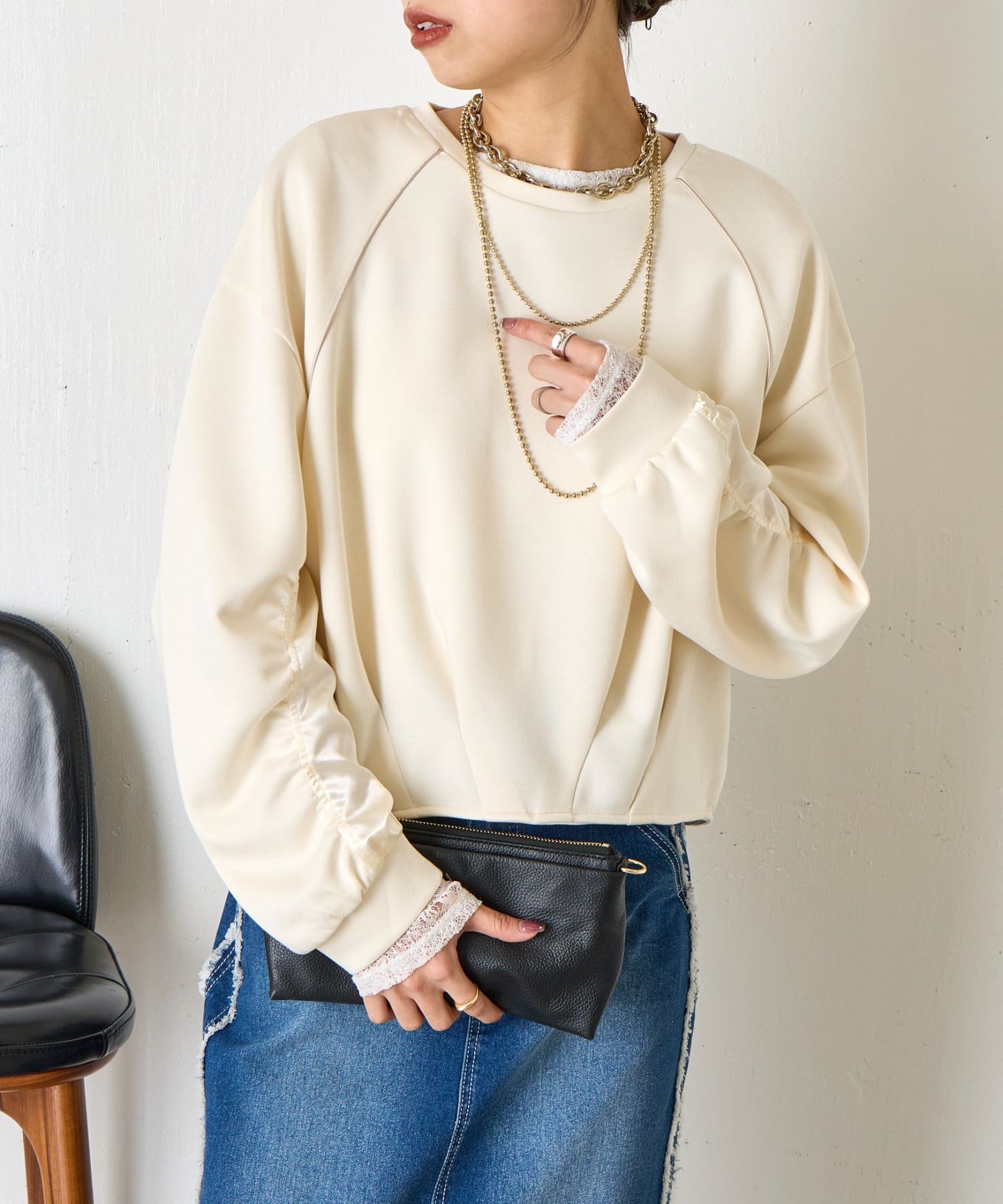 ・ギャザー入りの袖デザインで、気になる腕まわりをさりげなくカバー◎