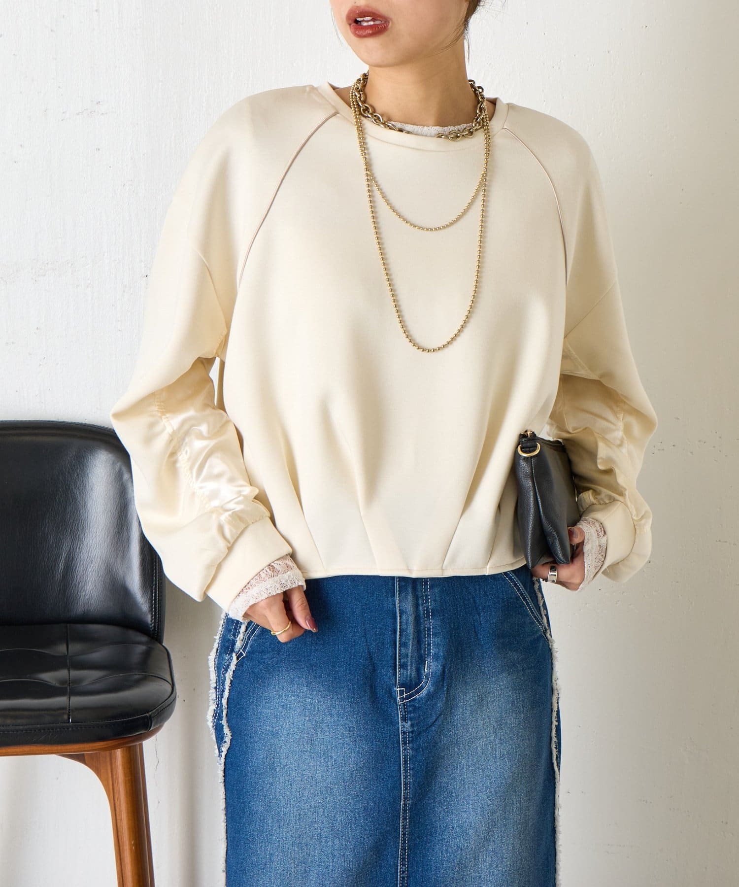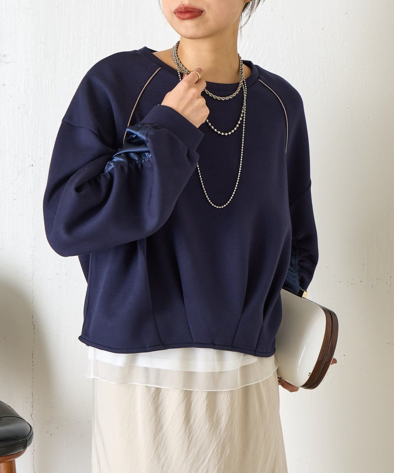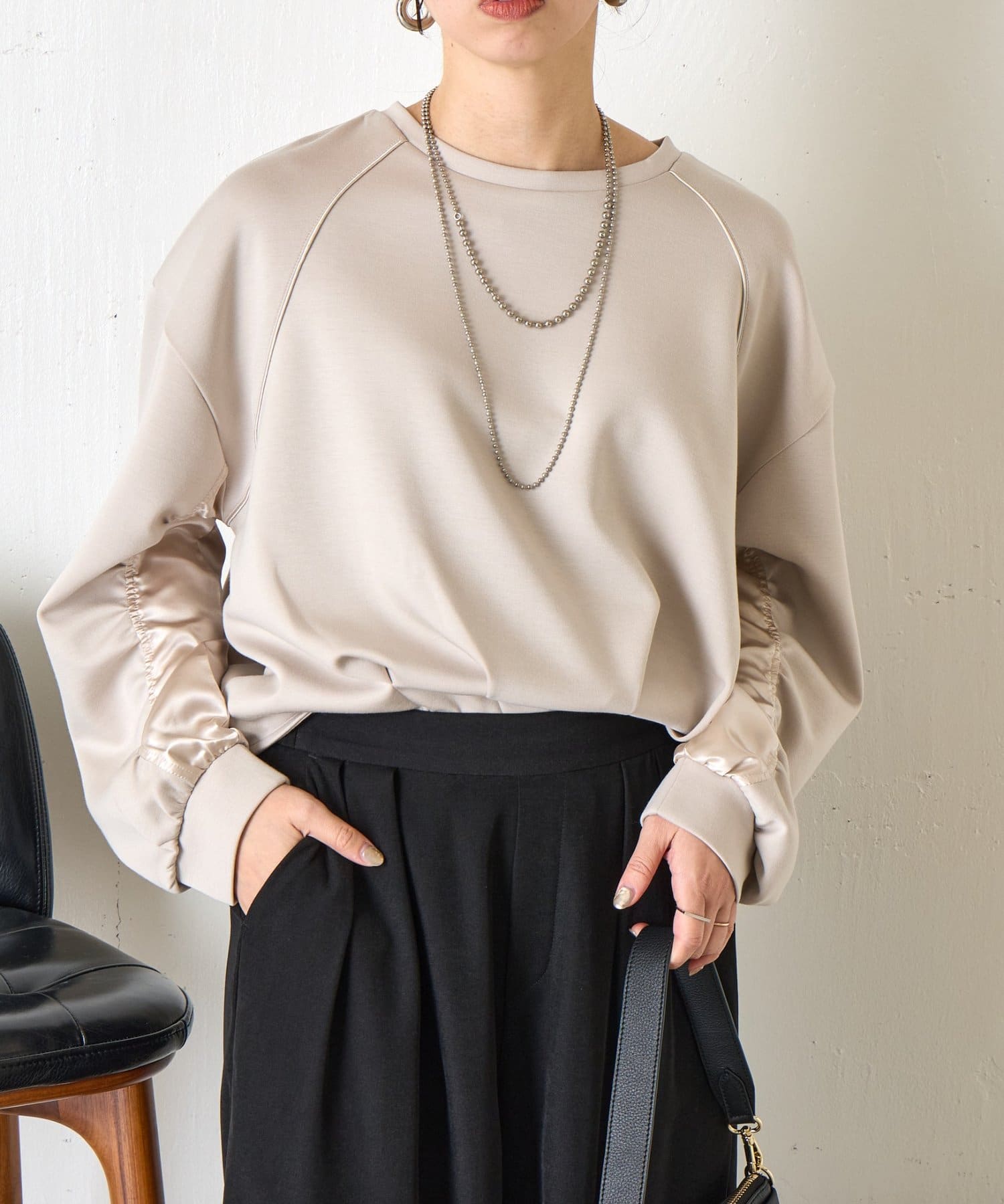 ・肩にあしらったサテン素材が、シンプルながらも上品なアクセントに。