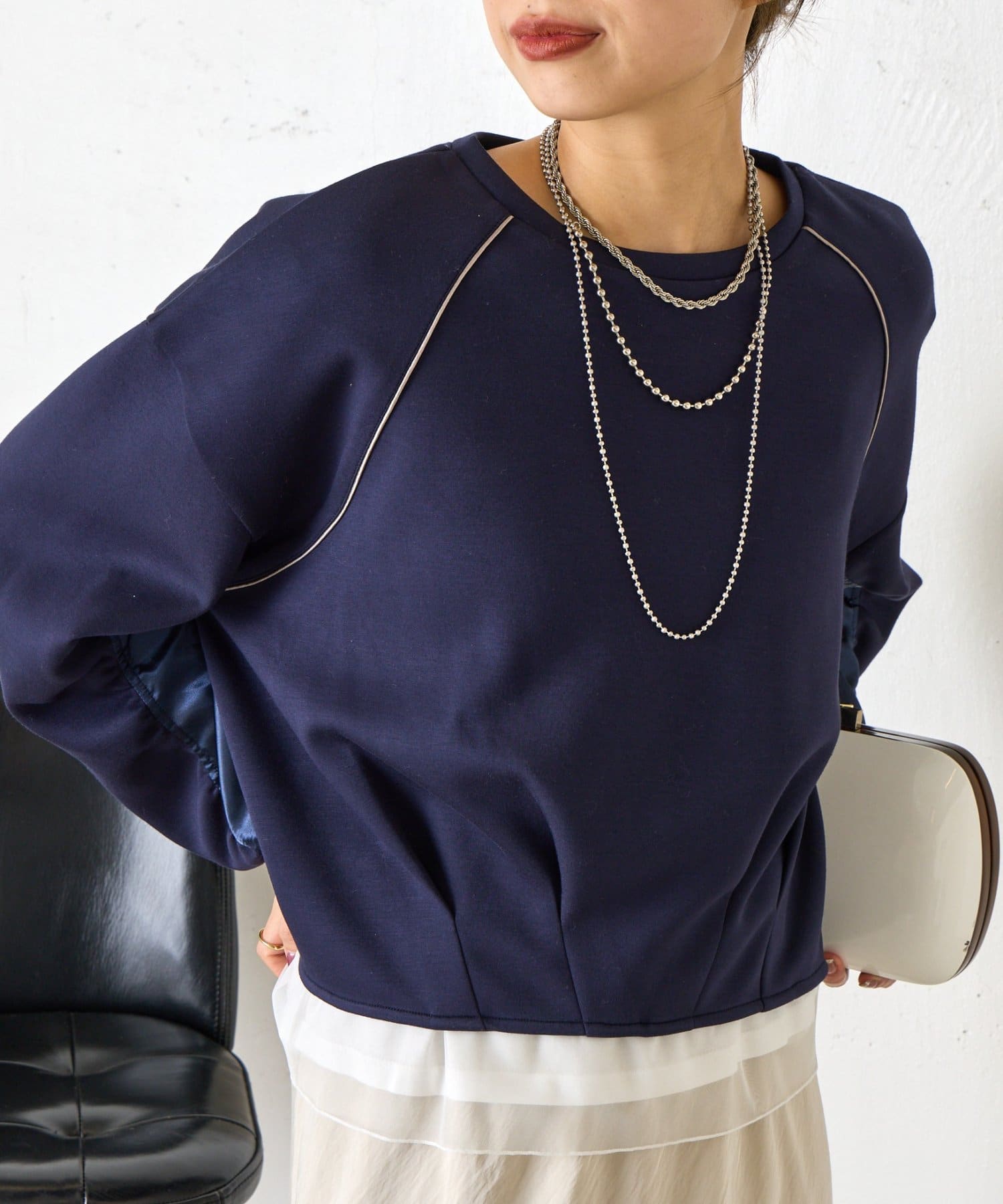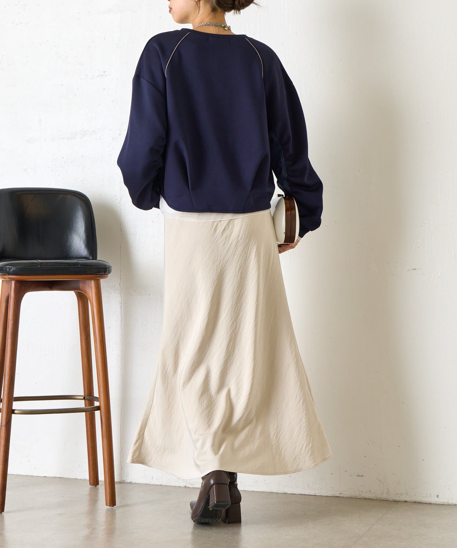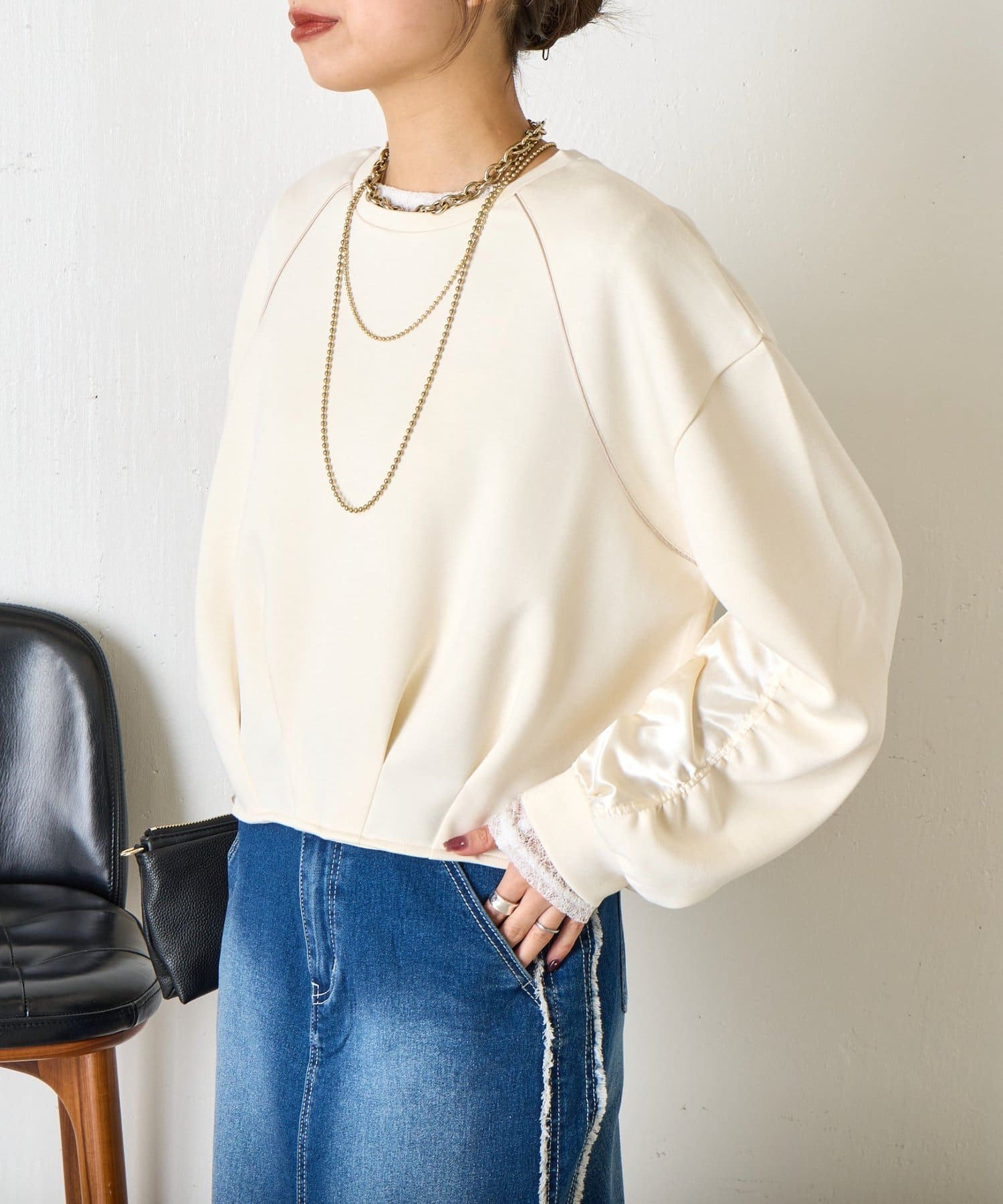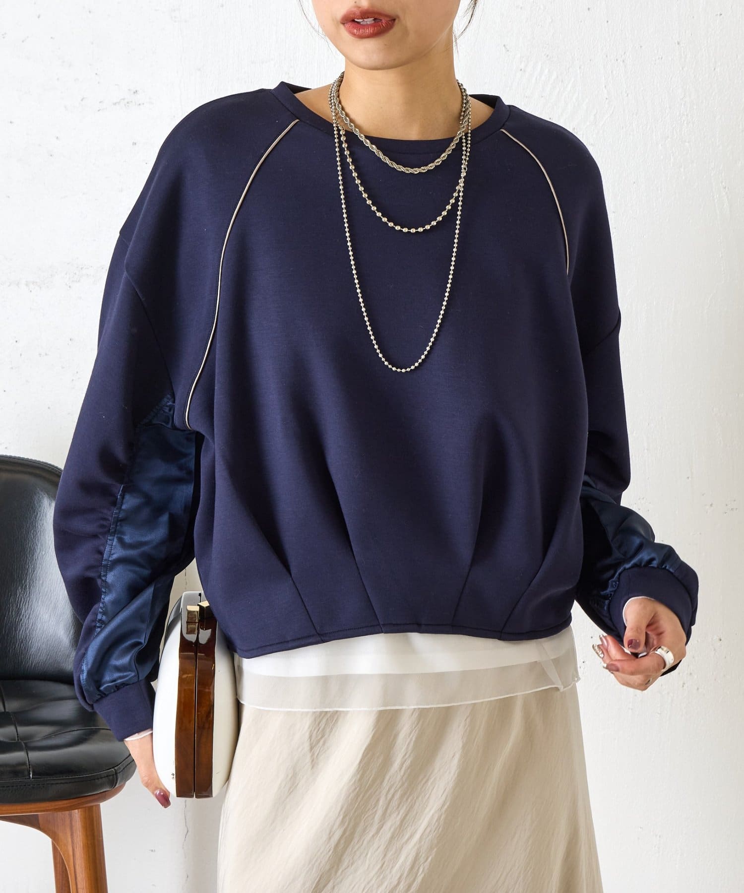 ・肩にあしらったサテン素材が、シンプルながらも上品なアクセントに。