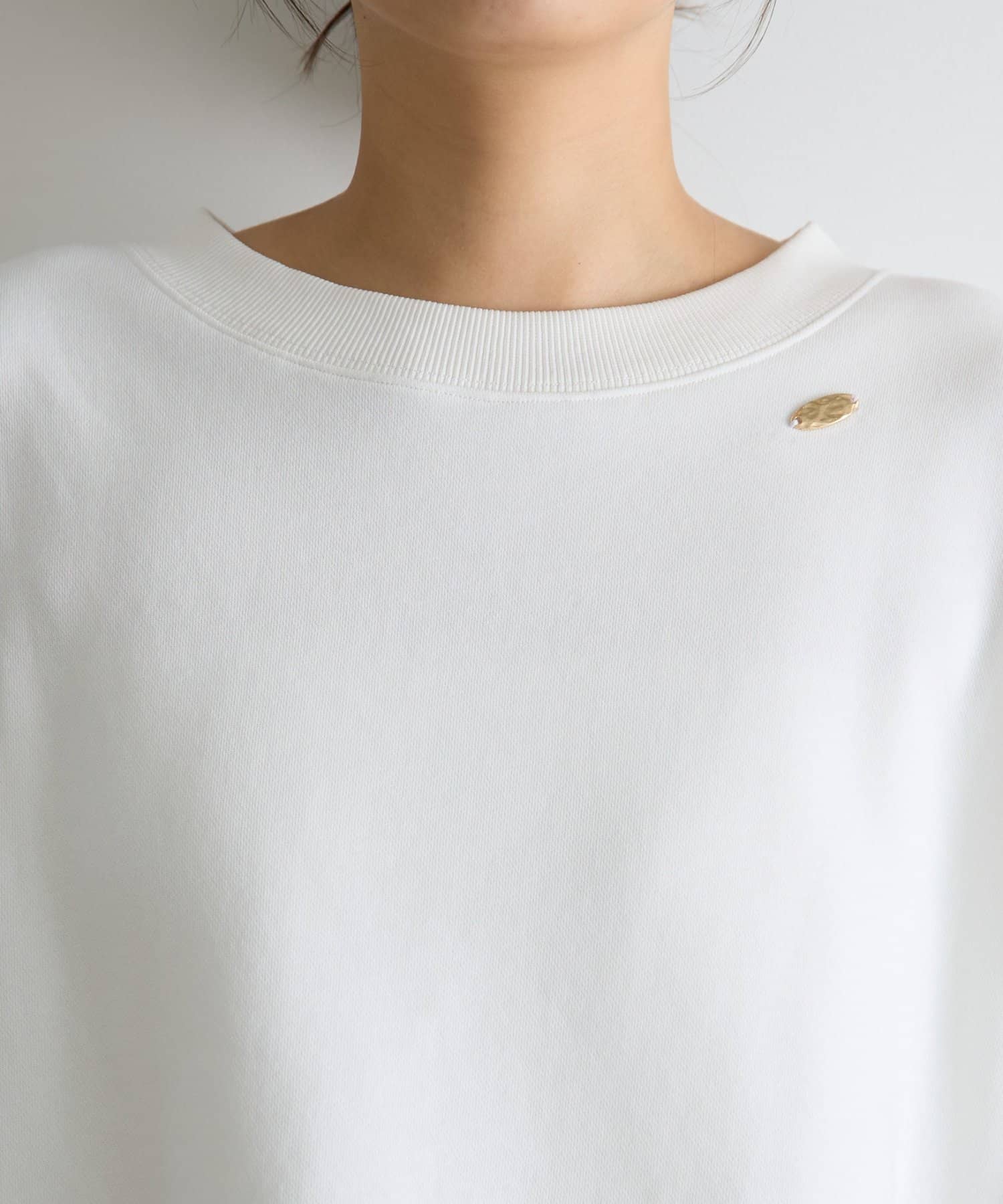 • Jena espace merveilleux(ジェナ エスパスメルヴェイユ) 【シンプルに差がつく】プレート付裾ドロストカットソー