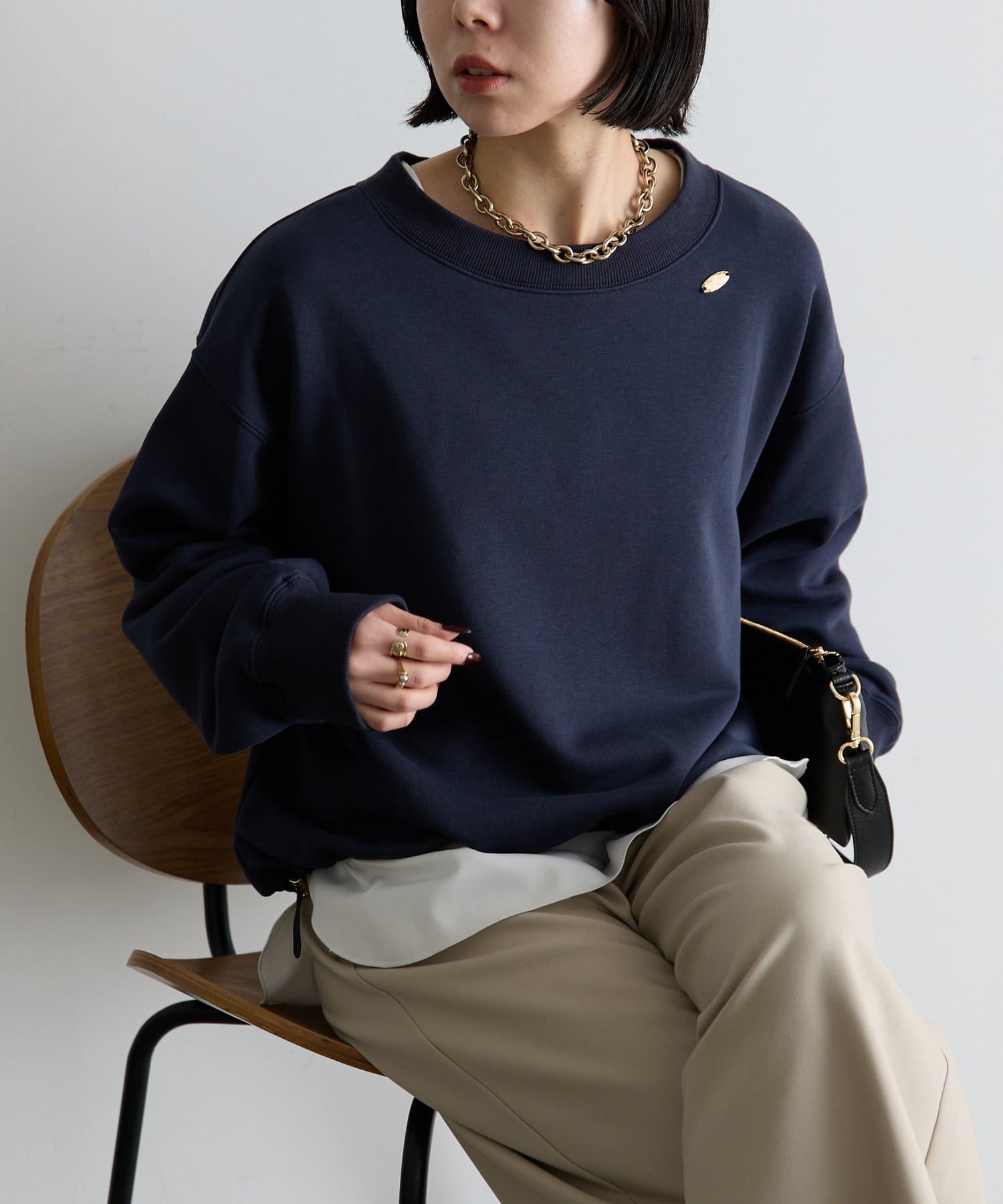 TOP > Jena espace merveilleux > レディース > トップス > Tシャツ/カットソー > 【シンプルに差がつく】プレート付裾ドロストカットソー