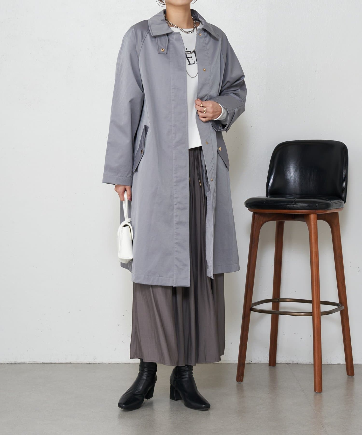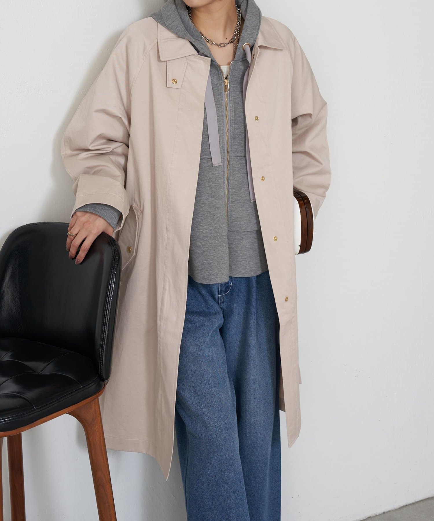 ・チンストラップ付きで、首元のデザインをアレンジできる2WAYコート。