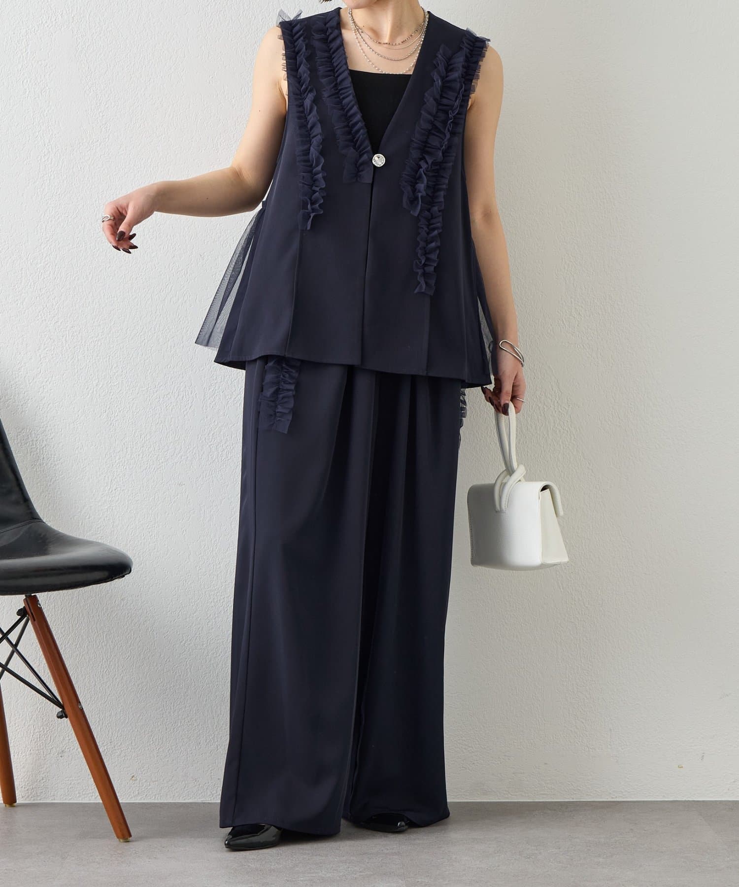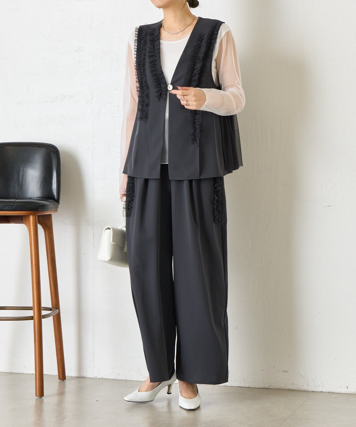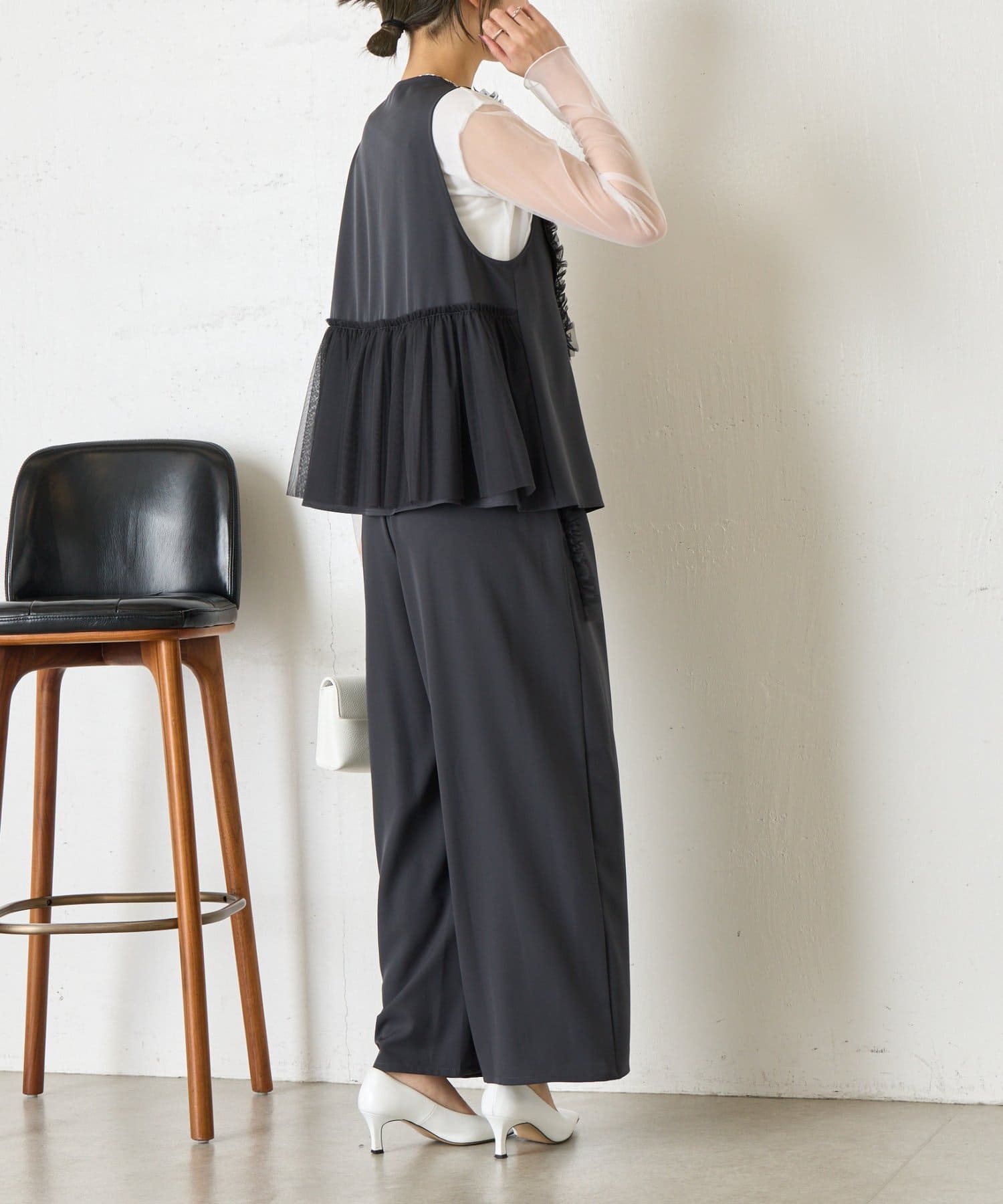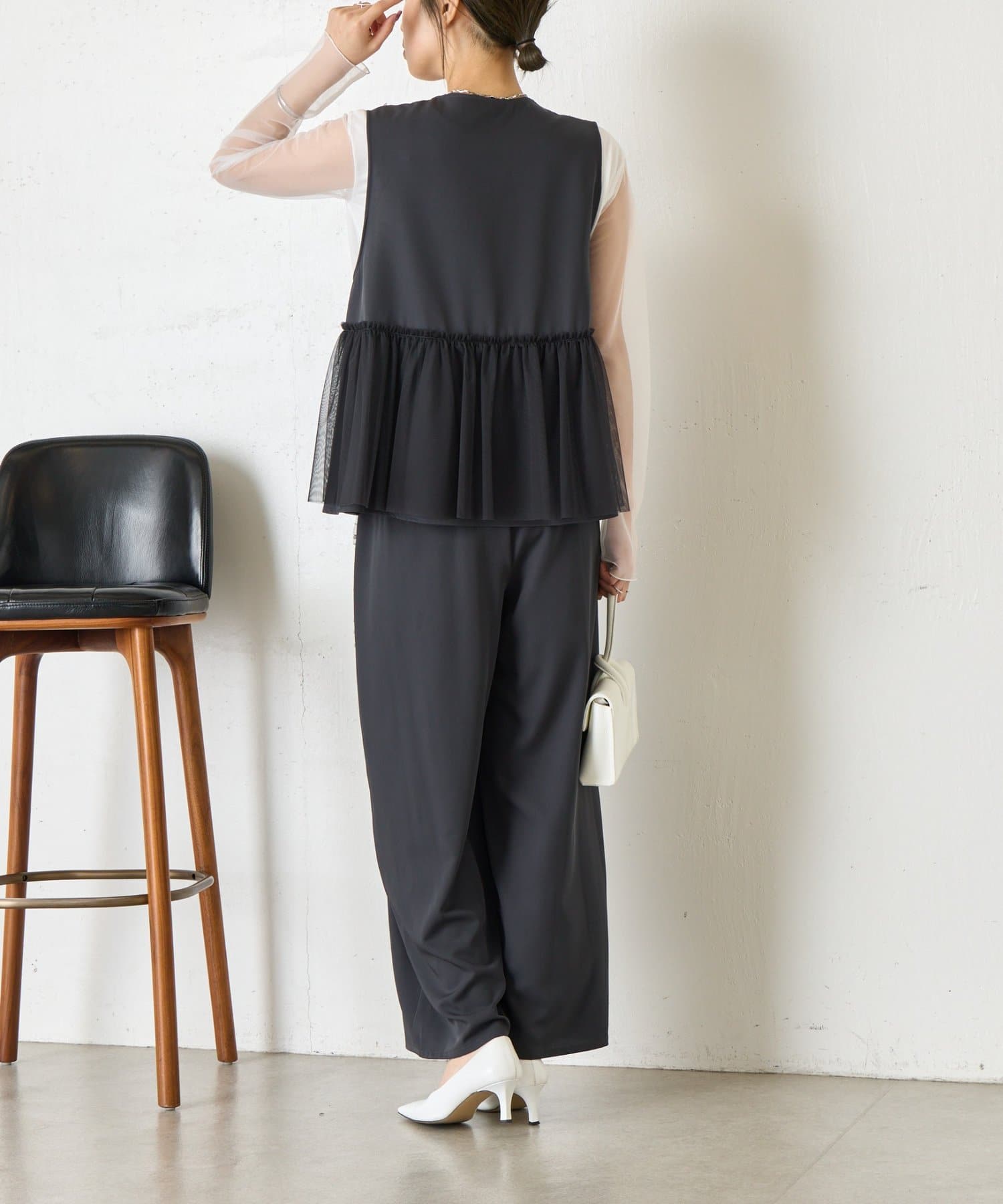 ・チュールベスト&テーパードパンツのうれしいセットアイテム。