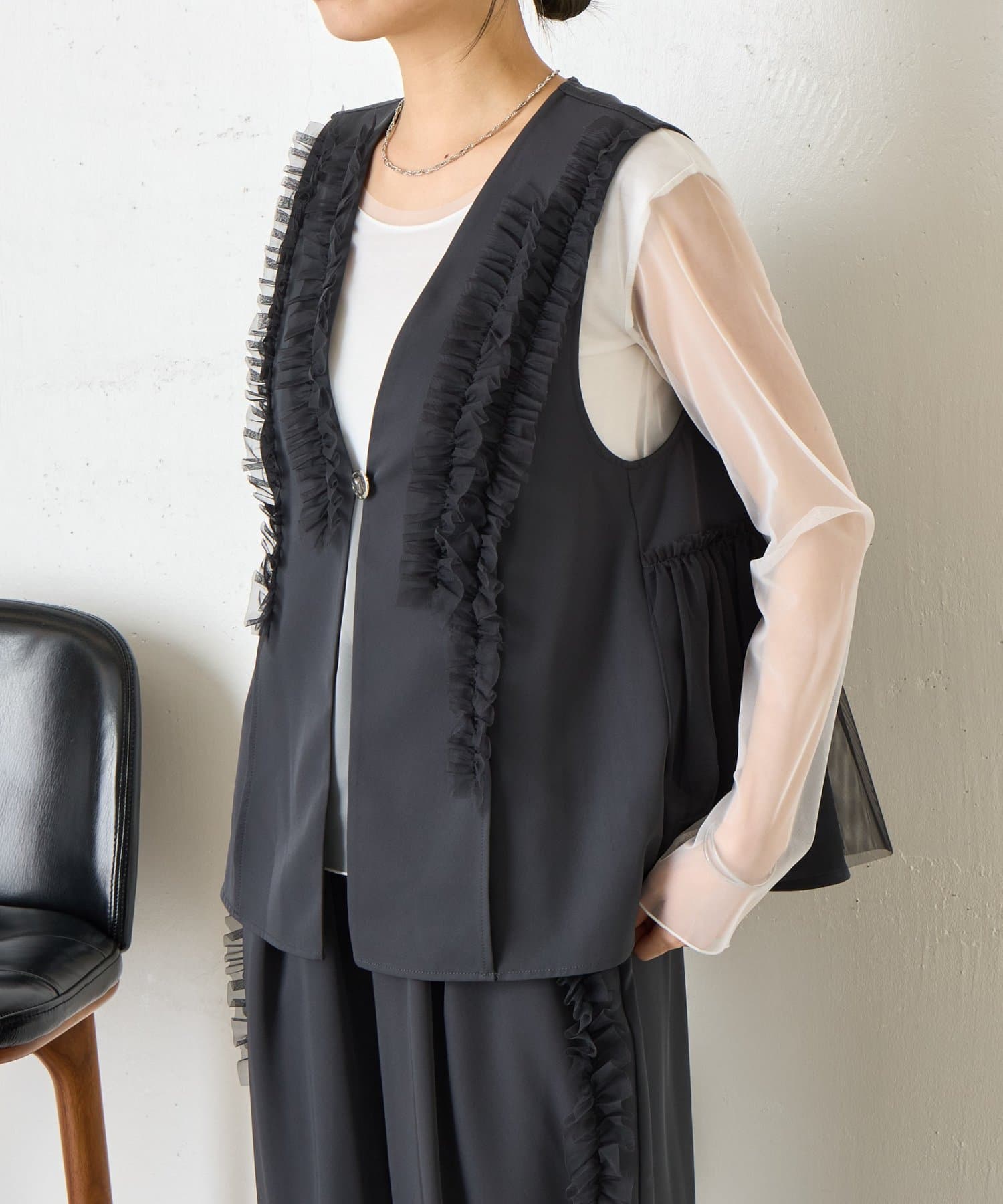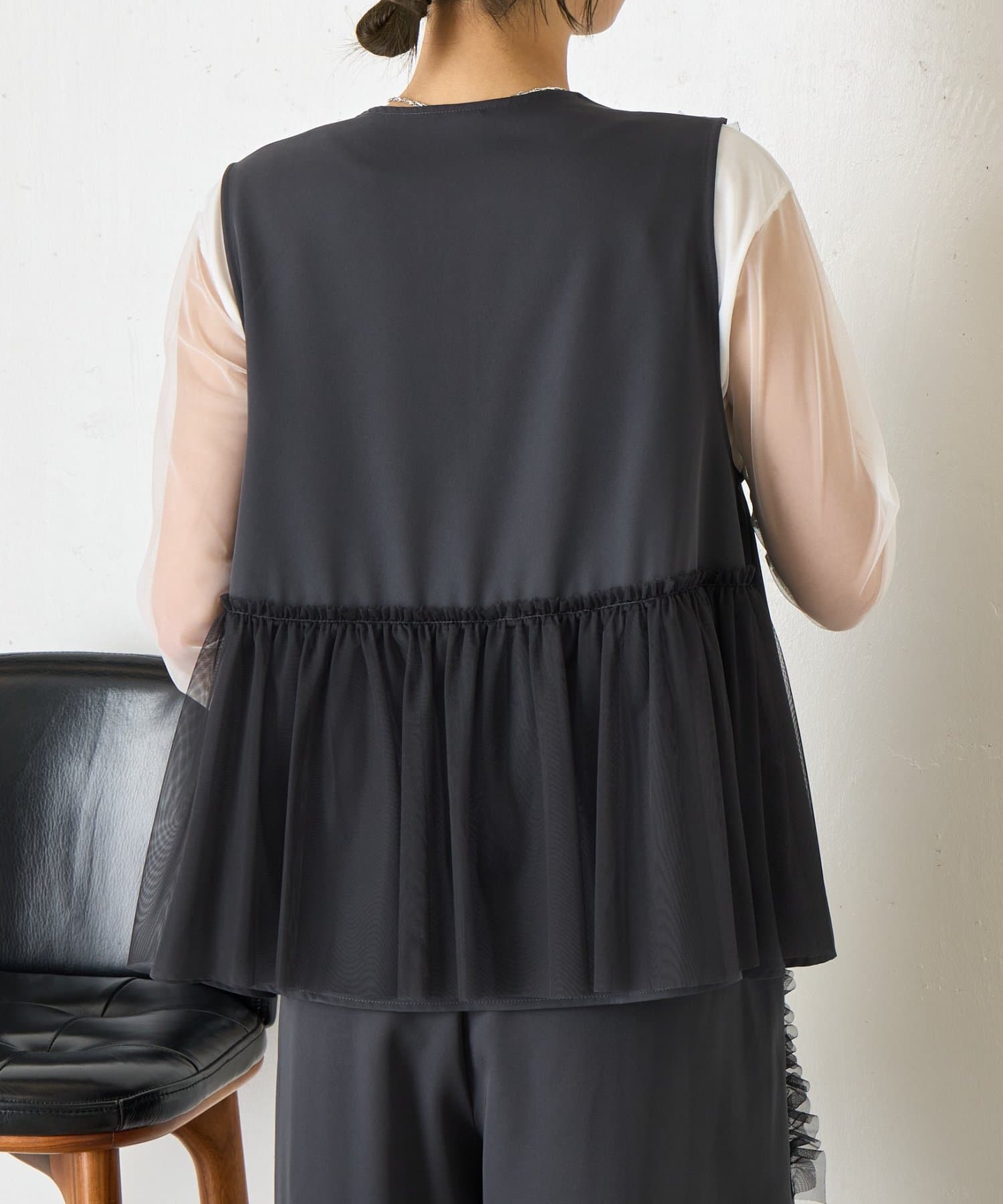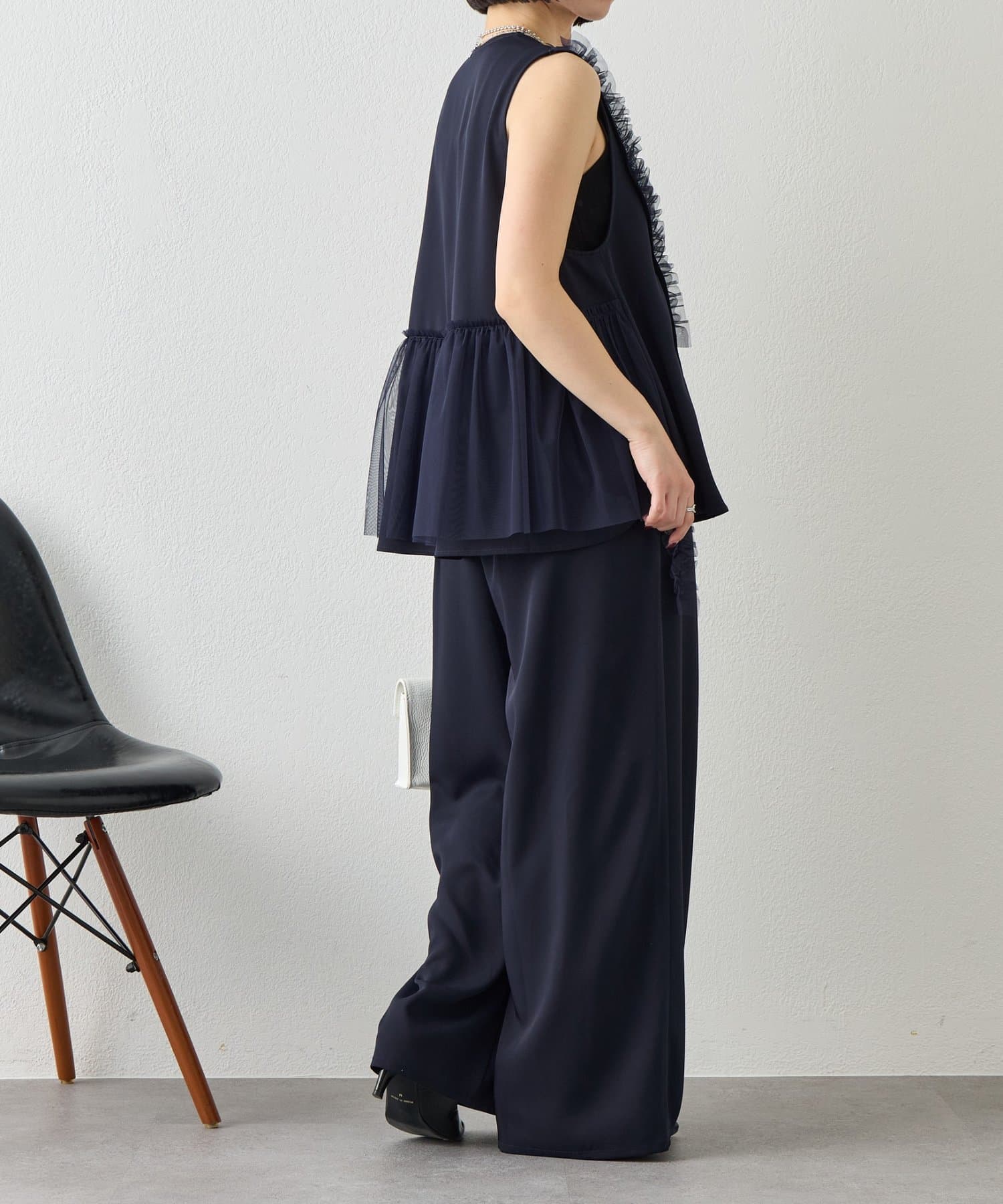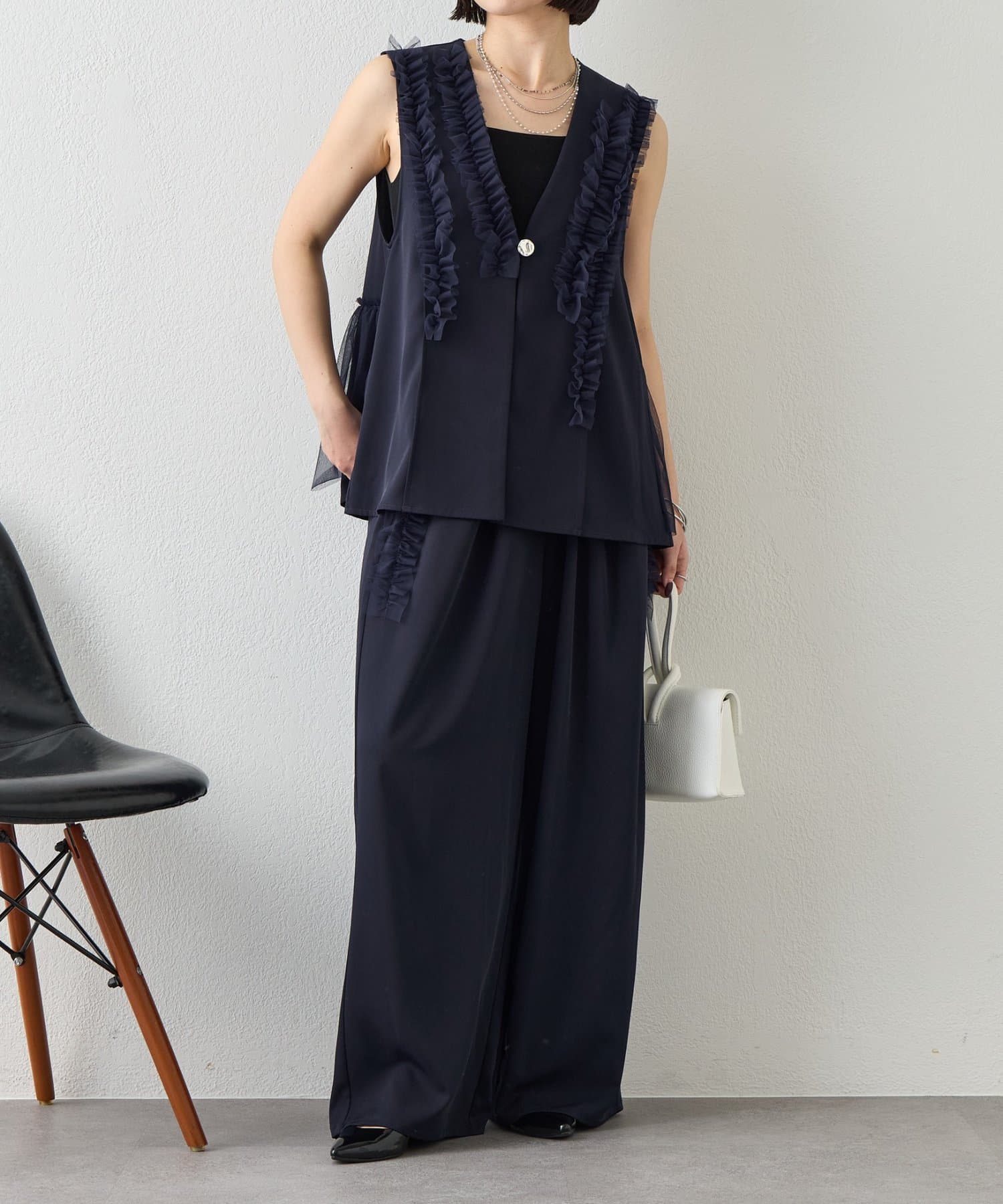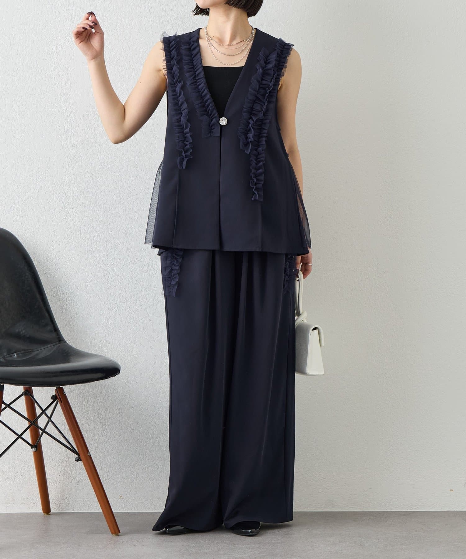・チュールベスト&テーパードパンツのうれしいセットアイテム。
