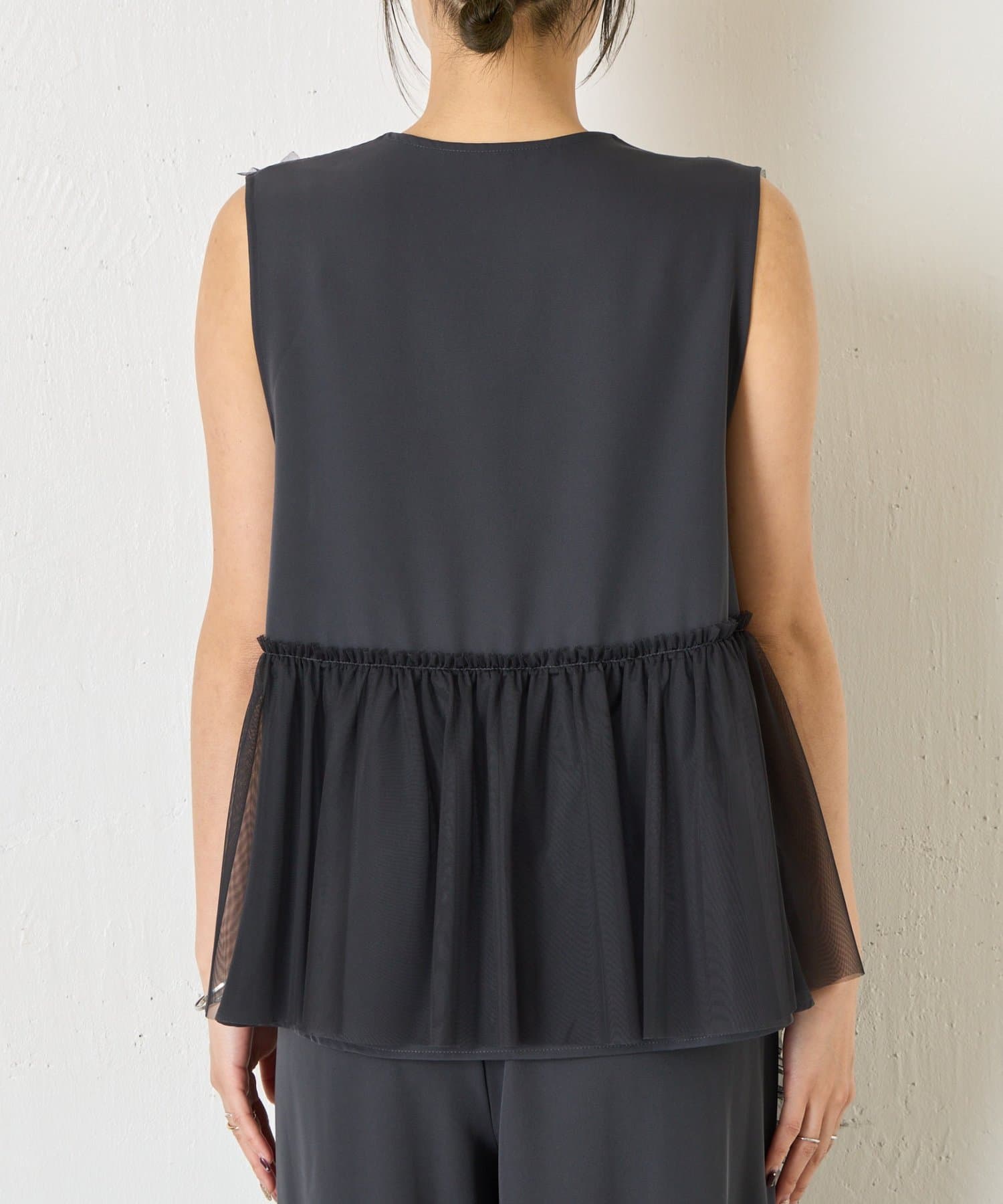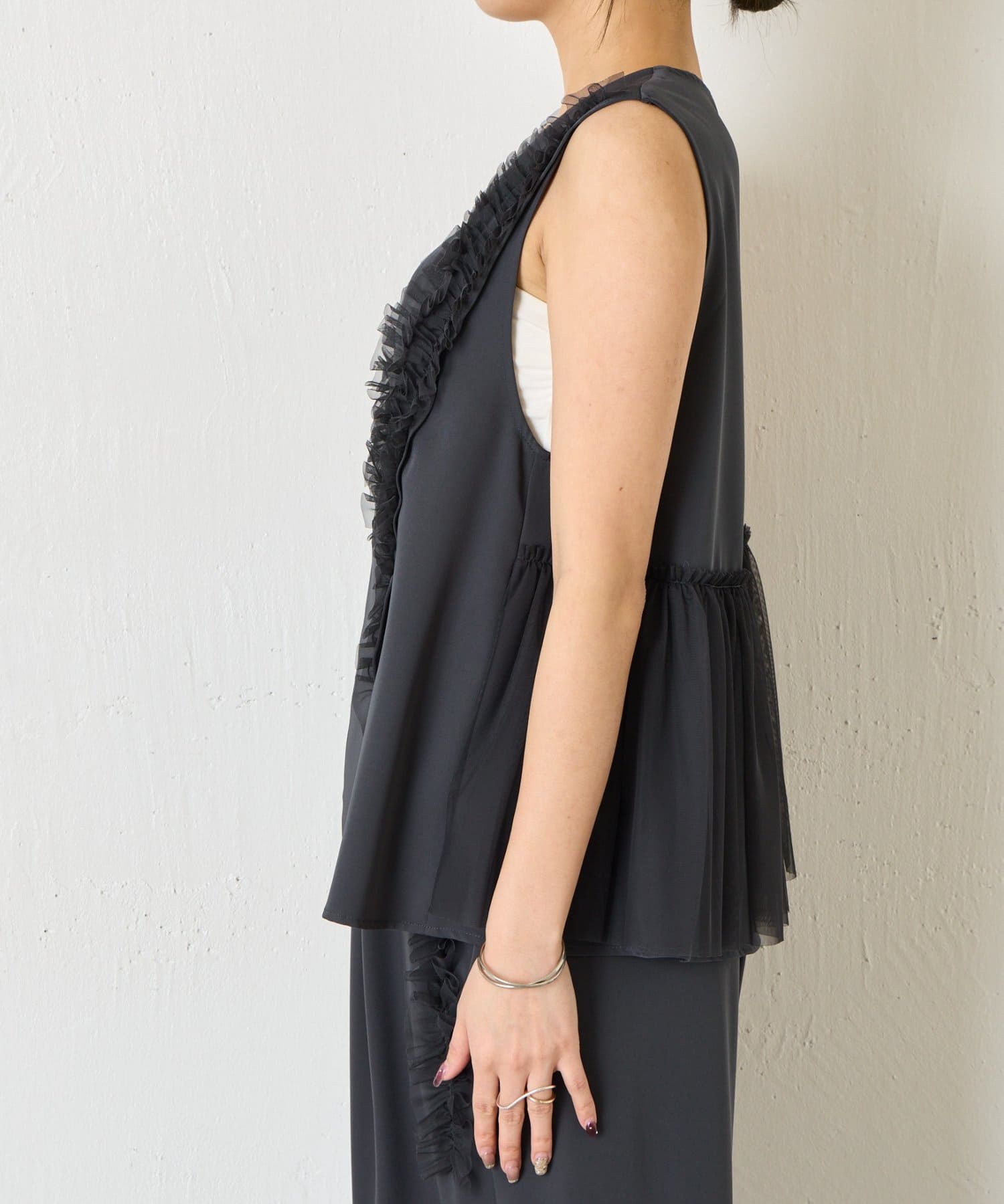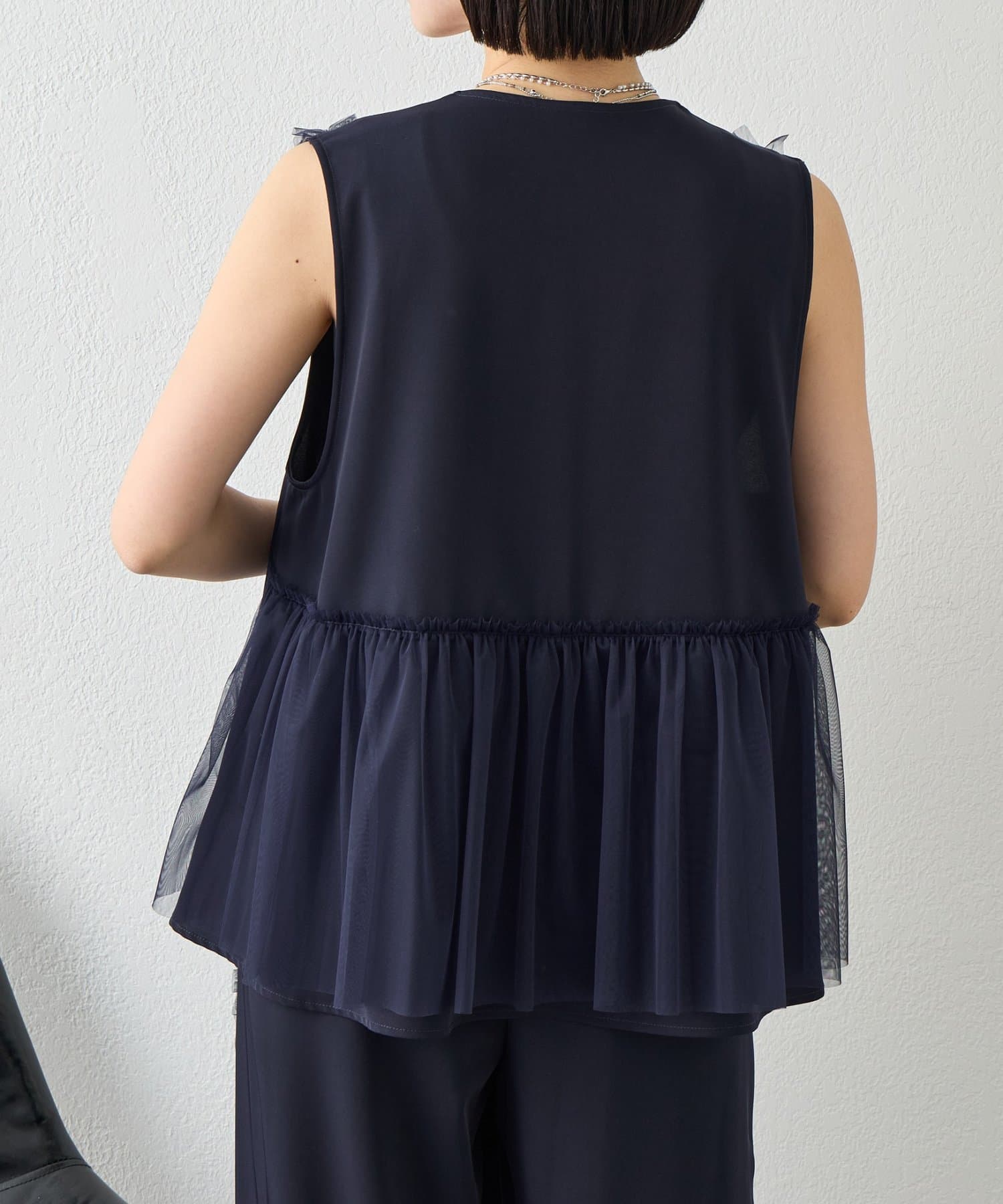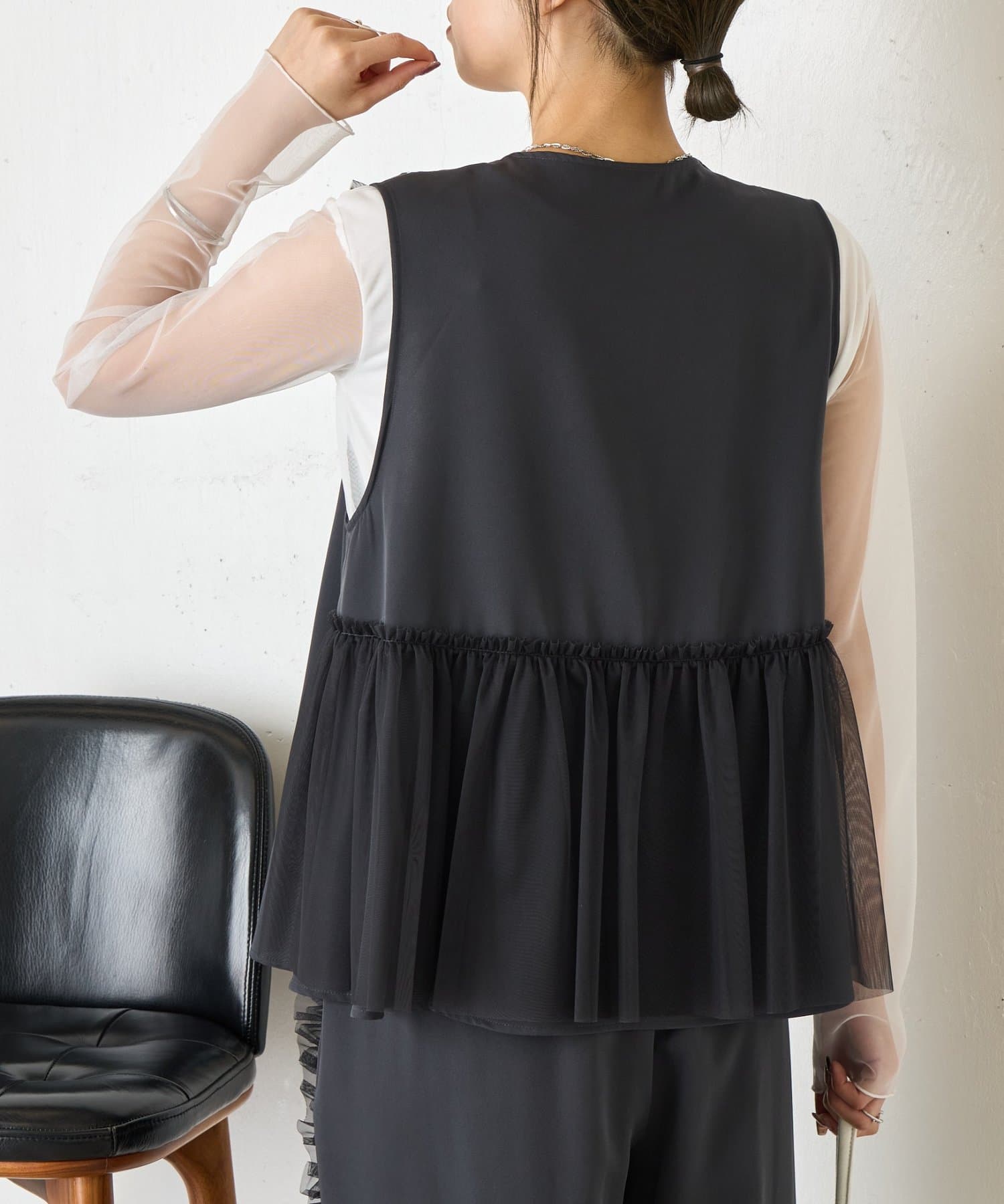 ・チュールベスト&テーパードパンツのうれしいセットアイテム。