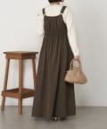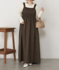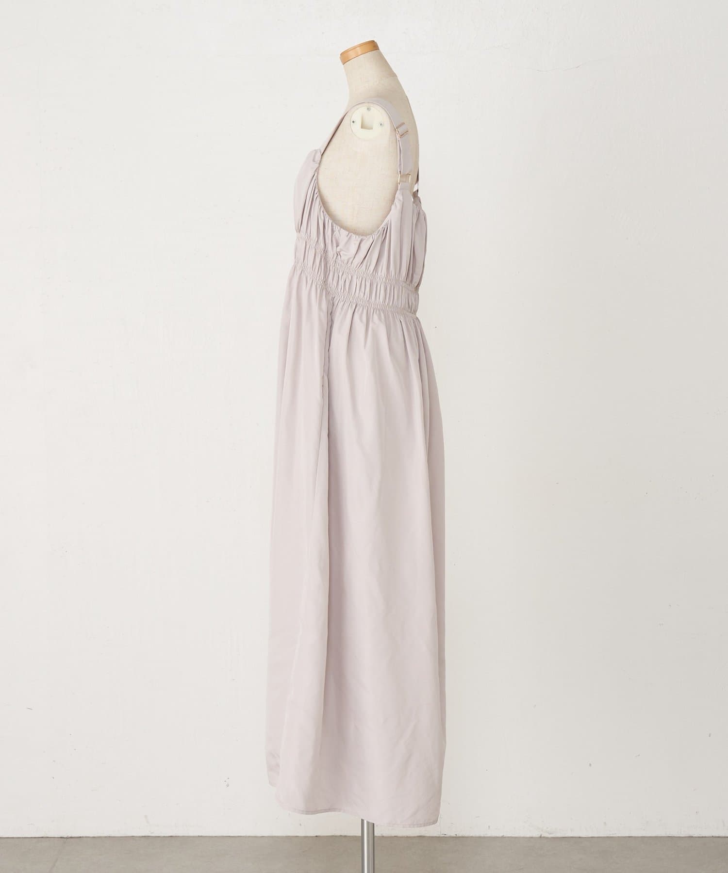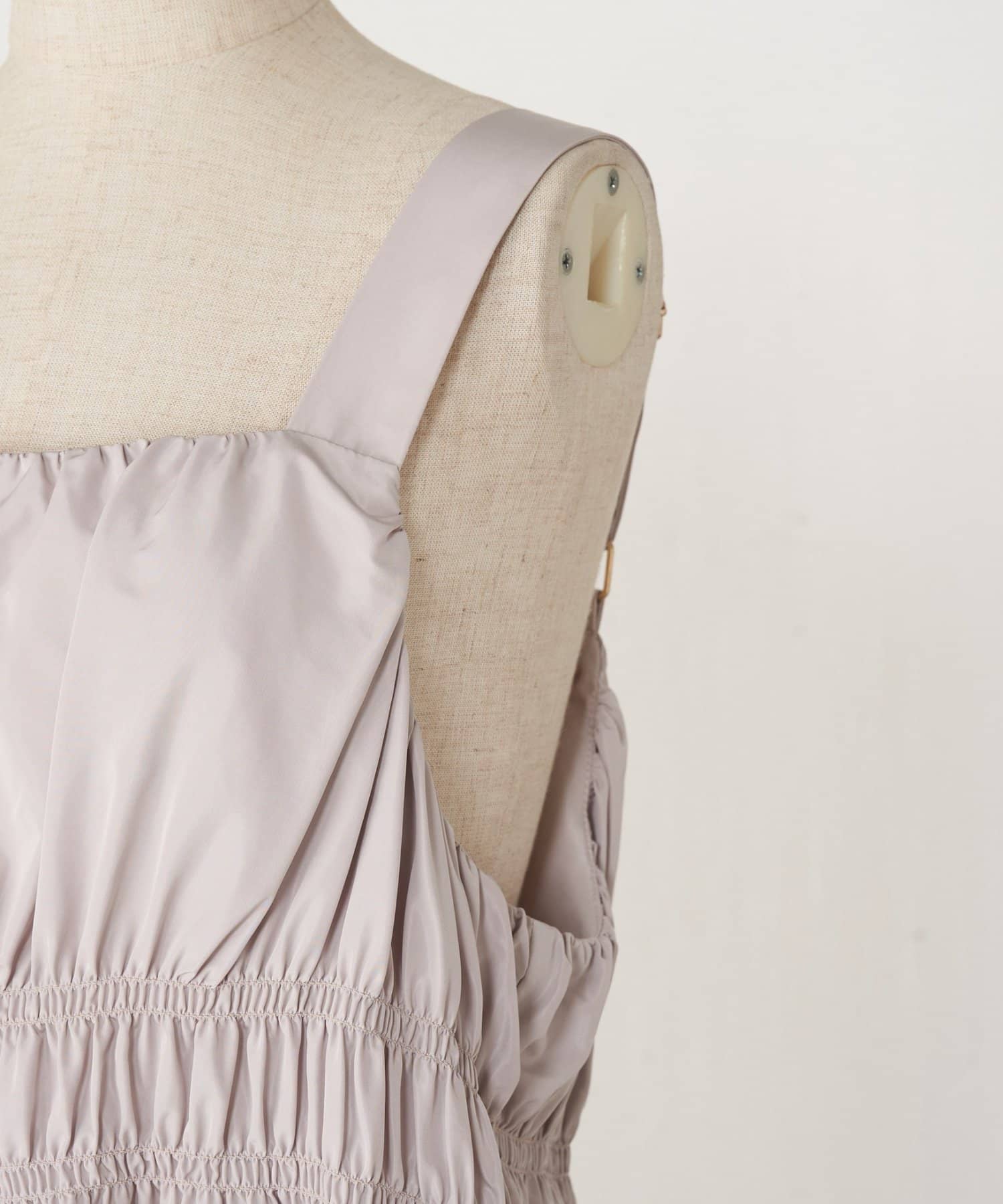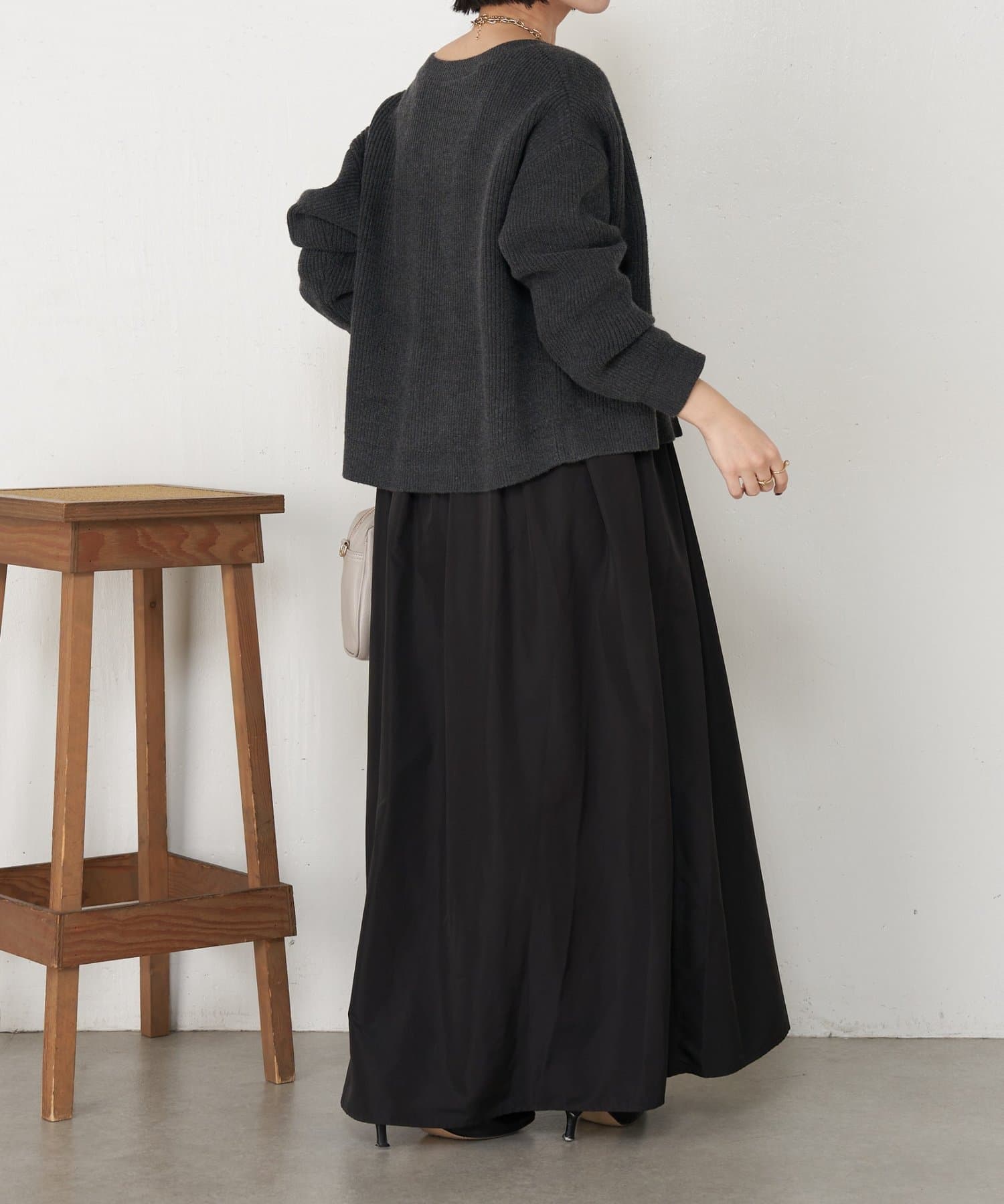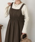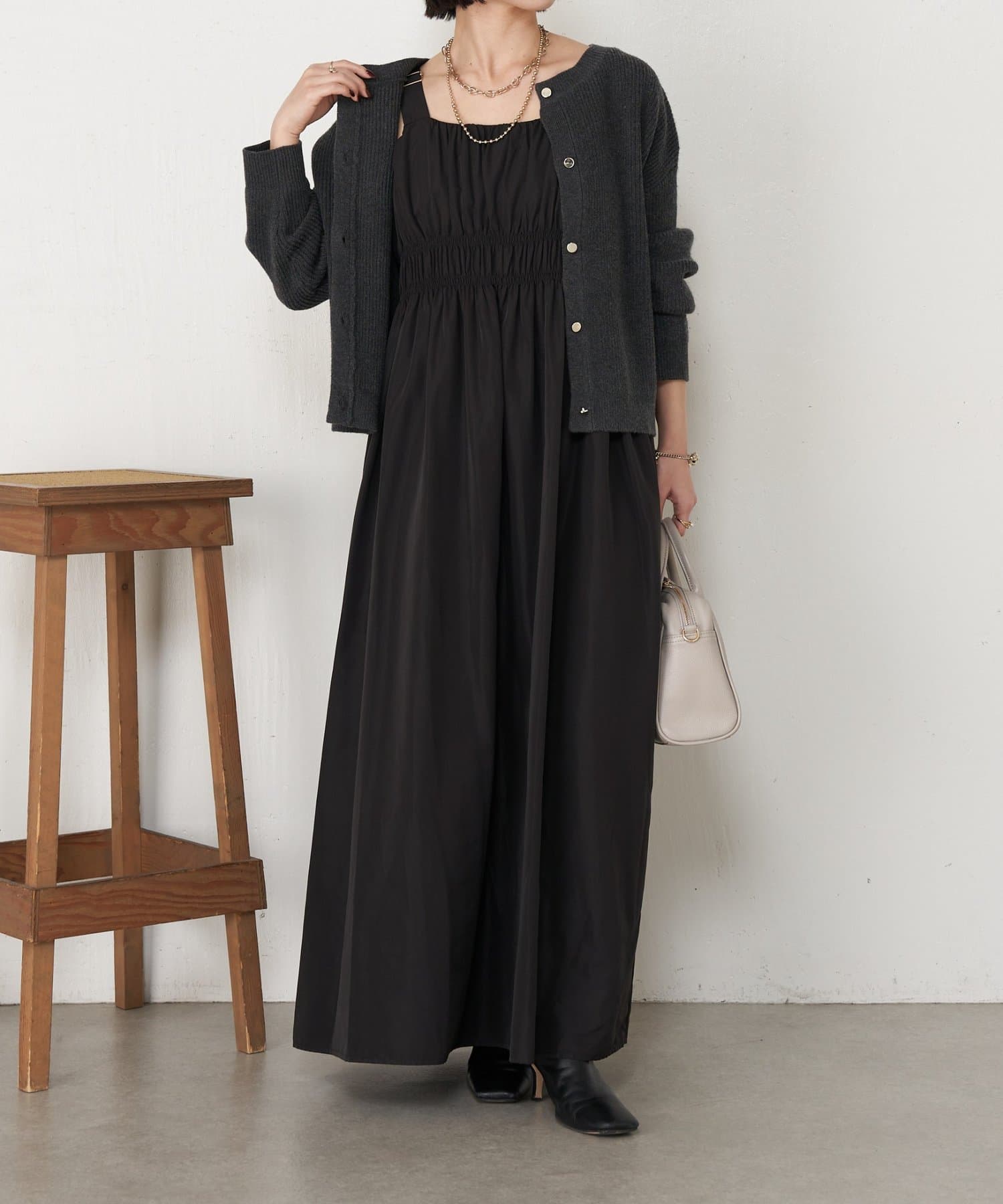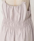 ・ウエストのシャーリングデザインが大人の甘さをプラスしたカジュアル過ぎないナイロン素材のジャンスカ。