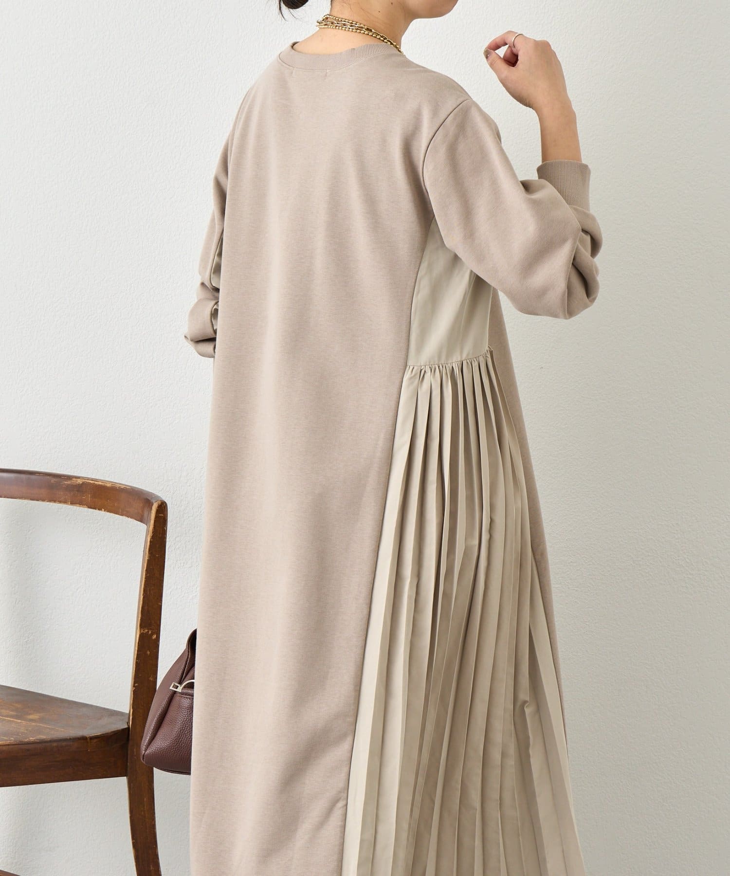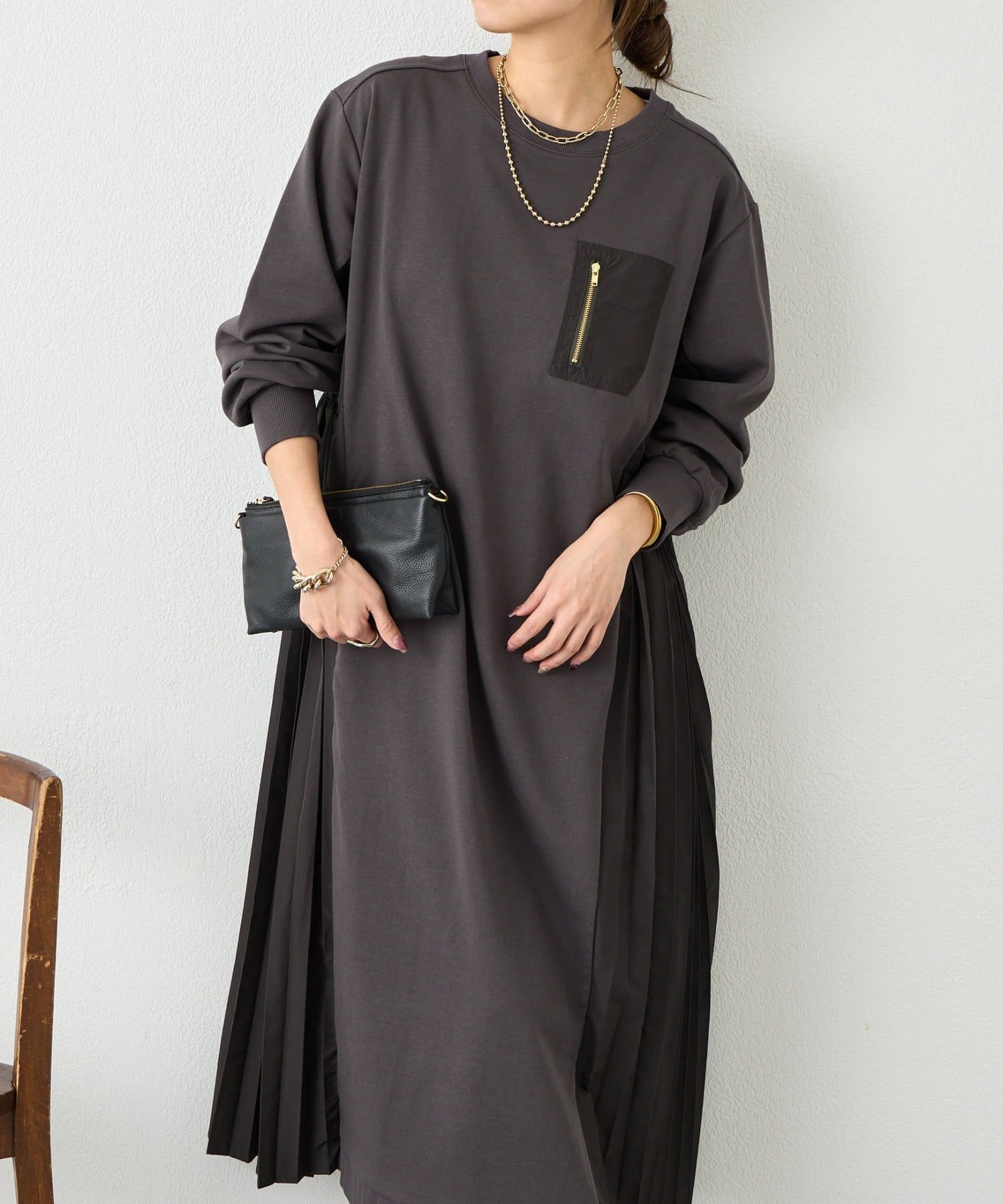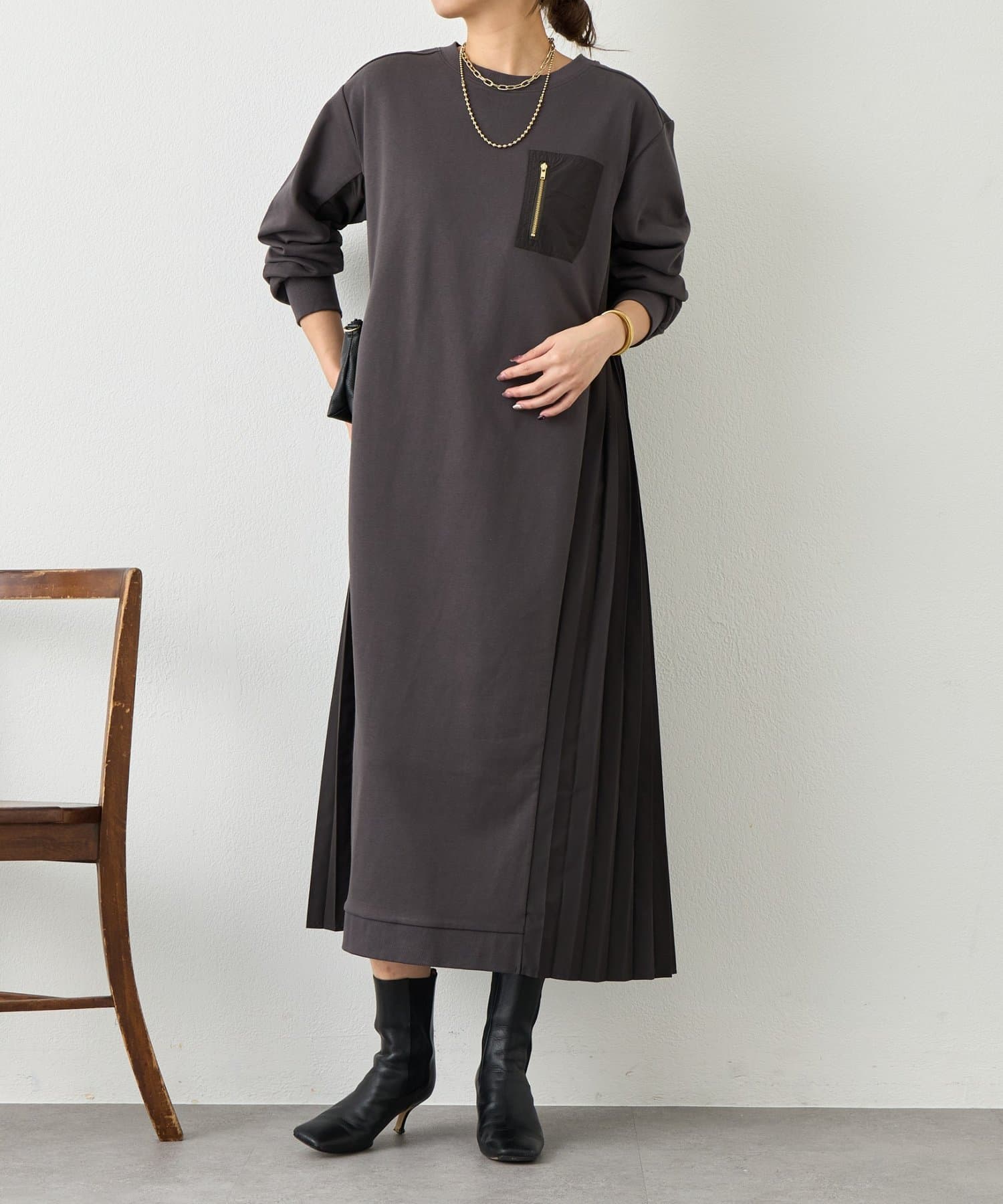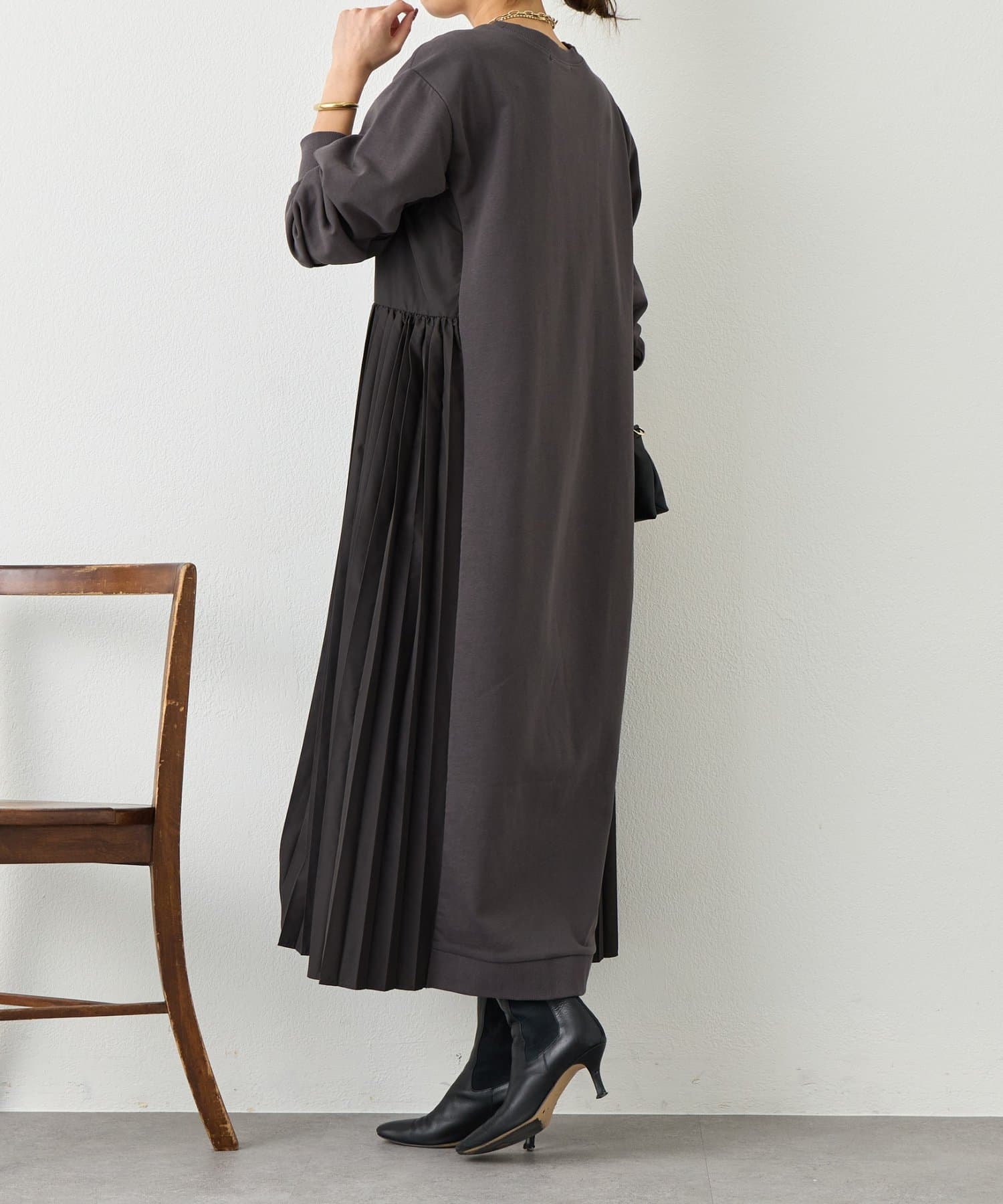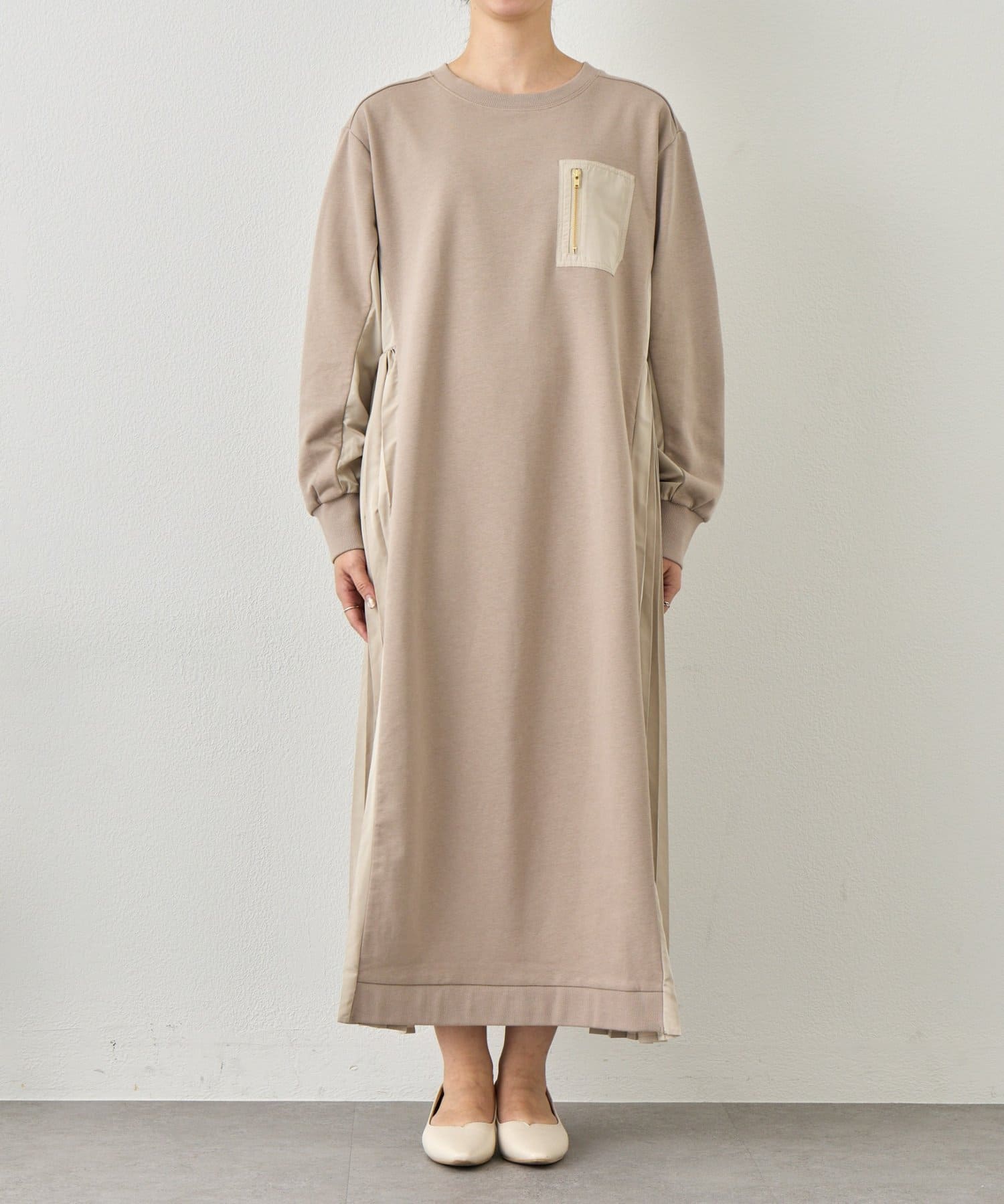 サイドプリーツ裏毛ワンピース