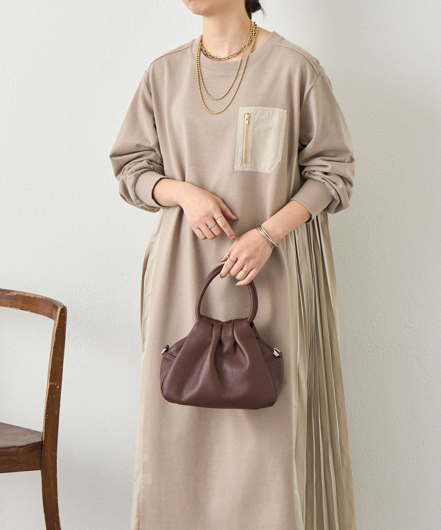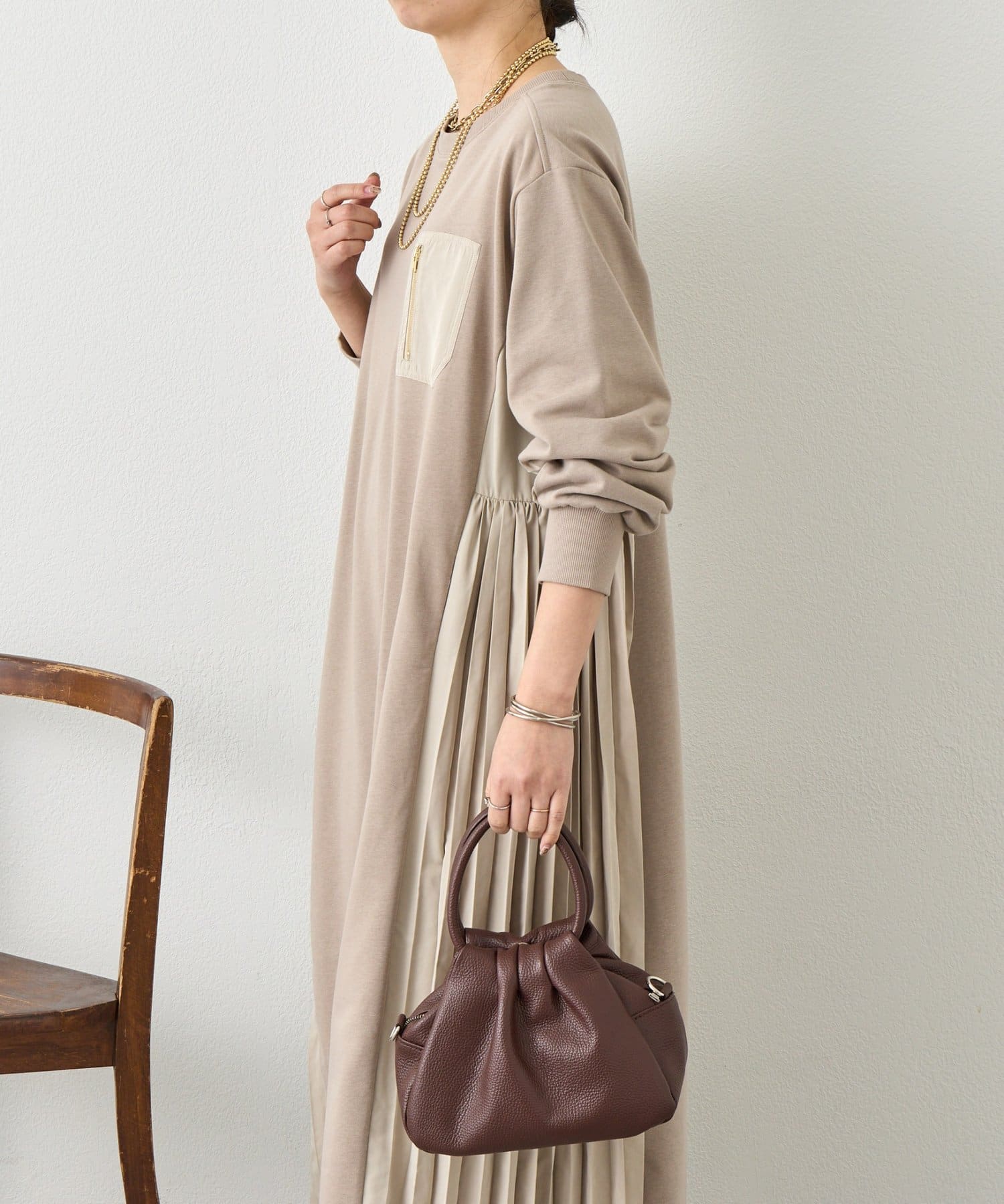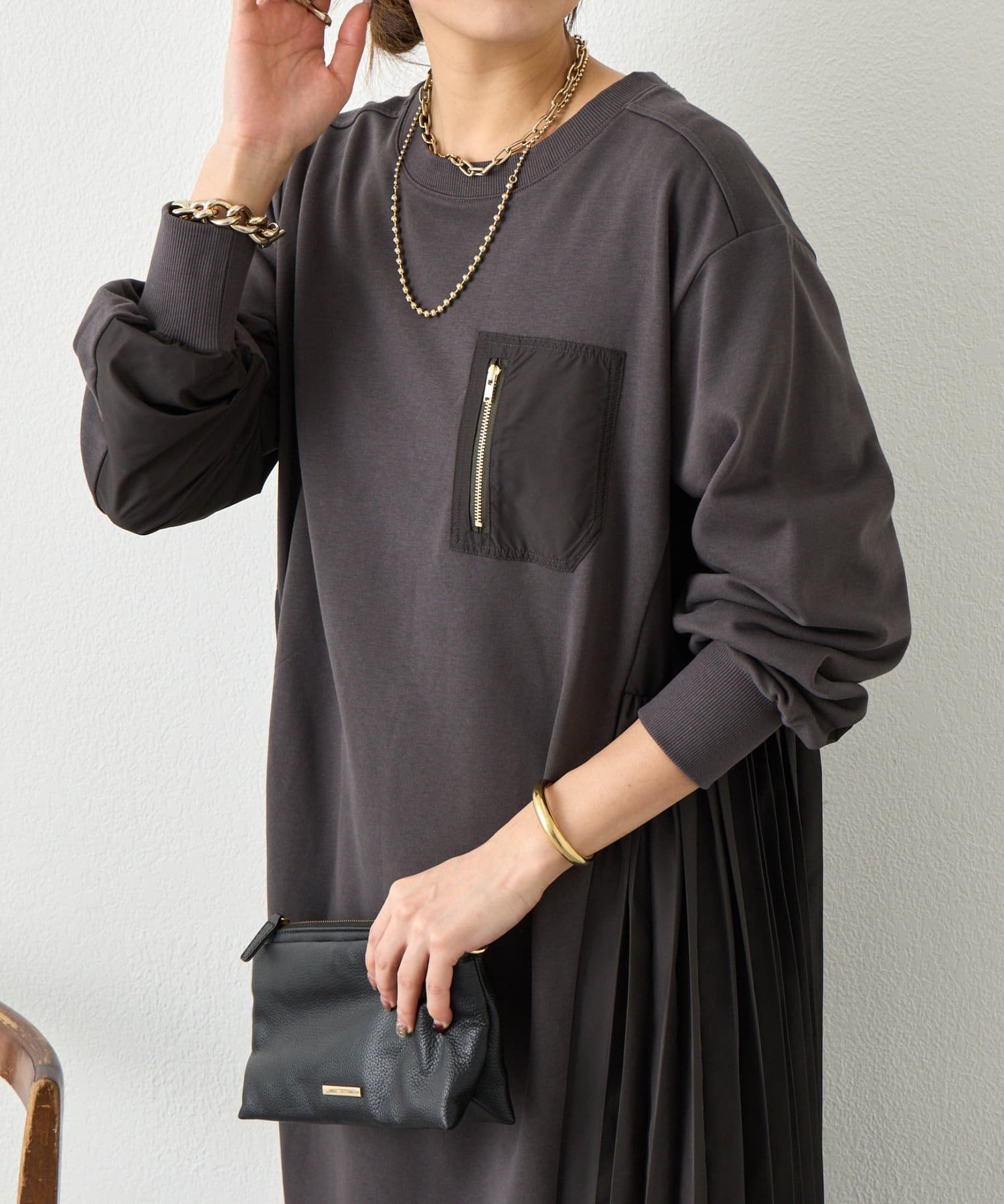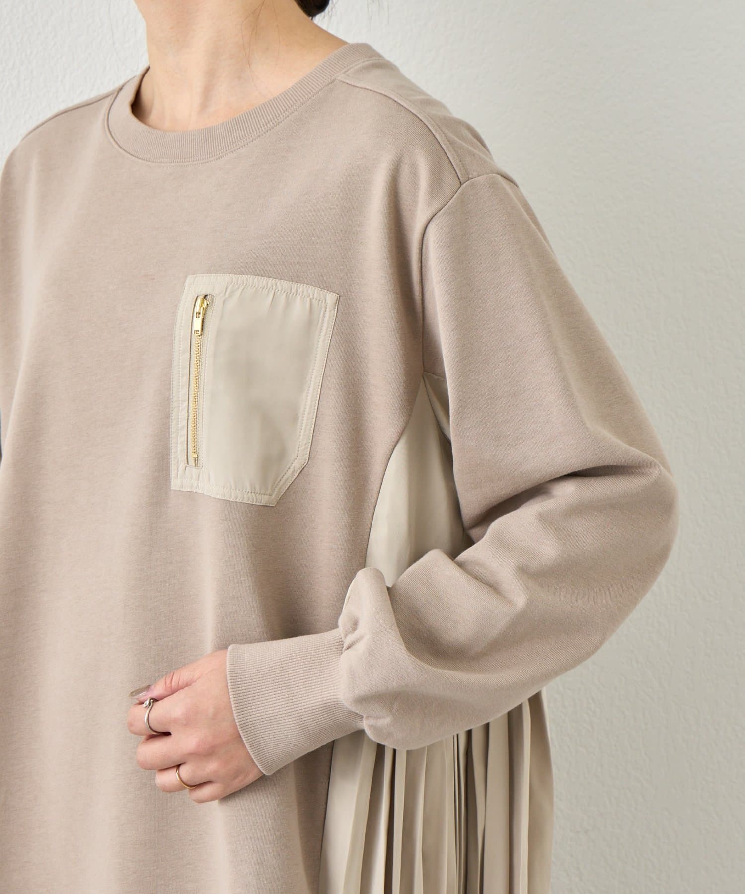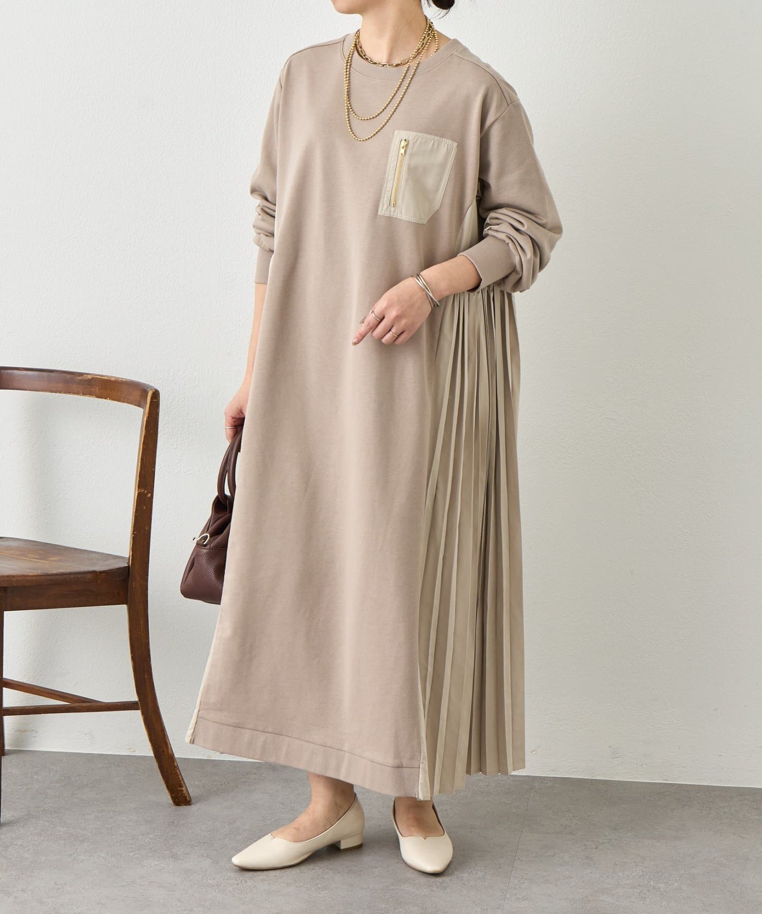 サイドプリーツ裏毛ワンピース