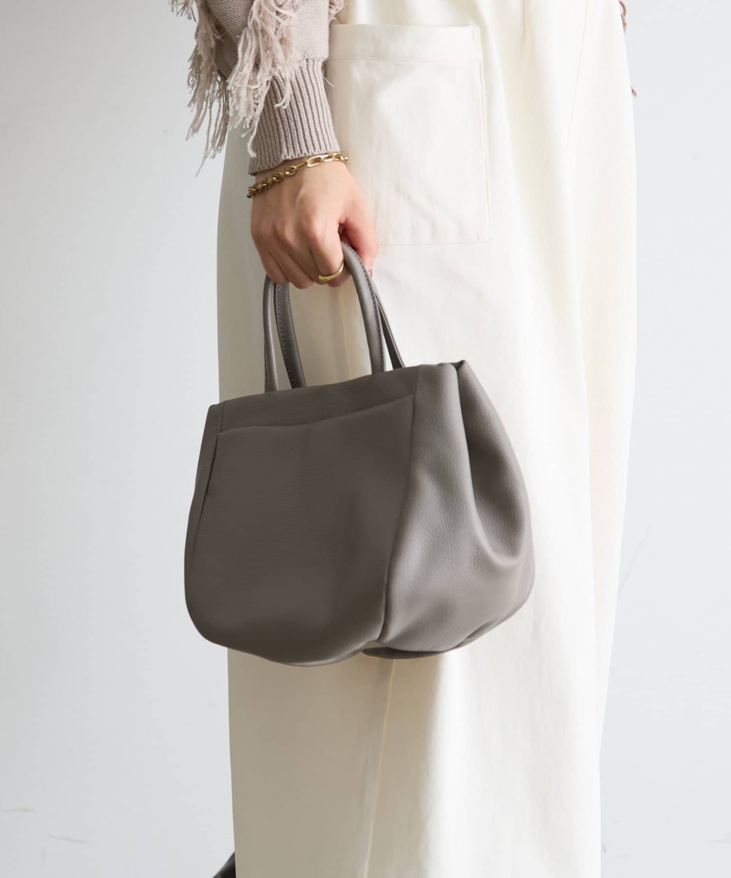 ・サイドのリングにスカーフやチャーム、カードケースなどを付けてお楽しみいただけます。
