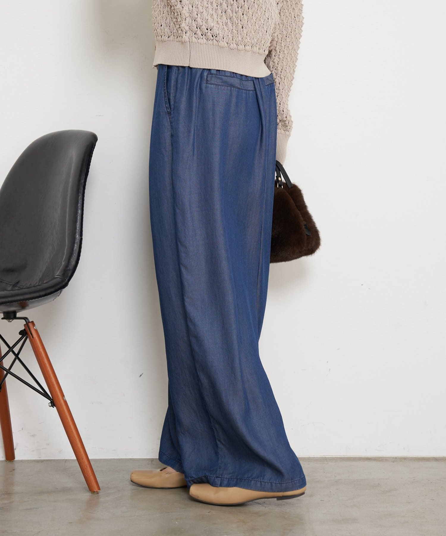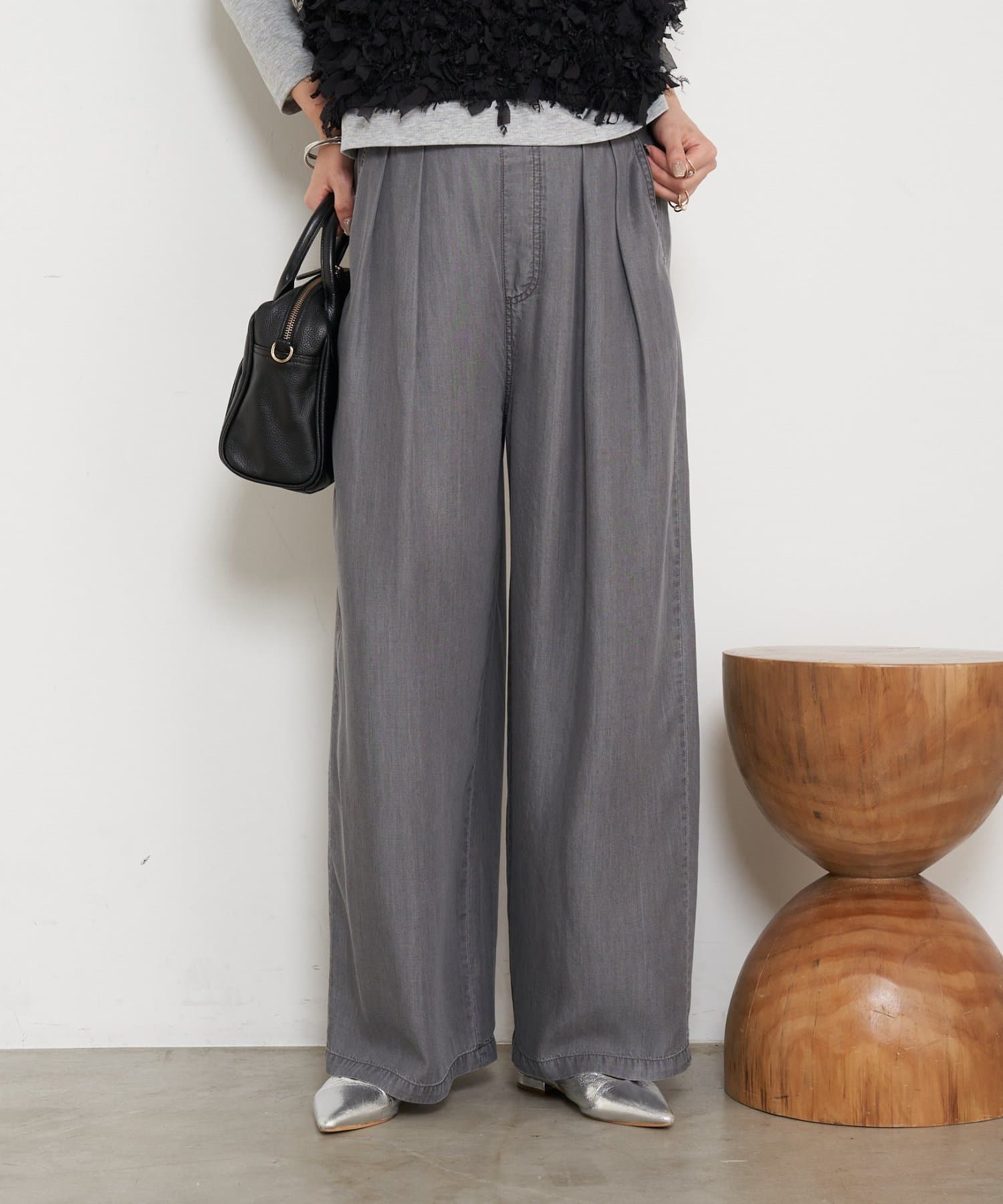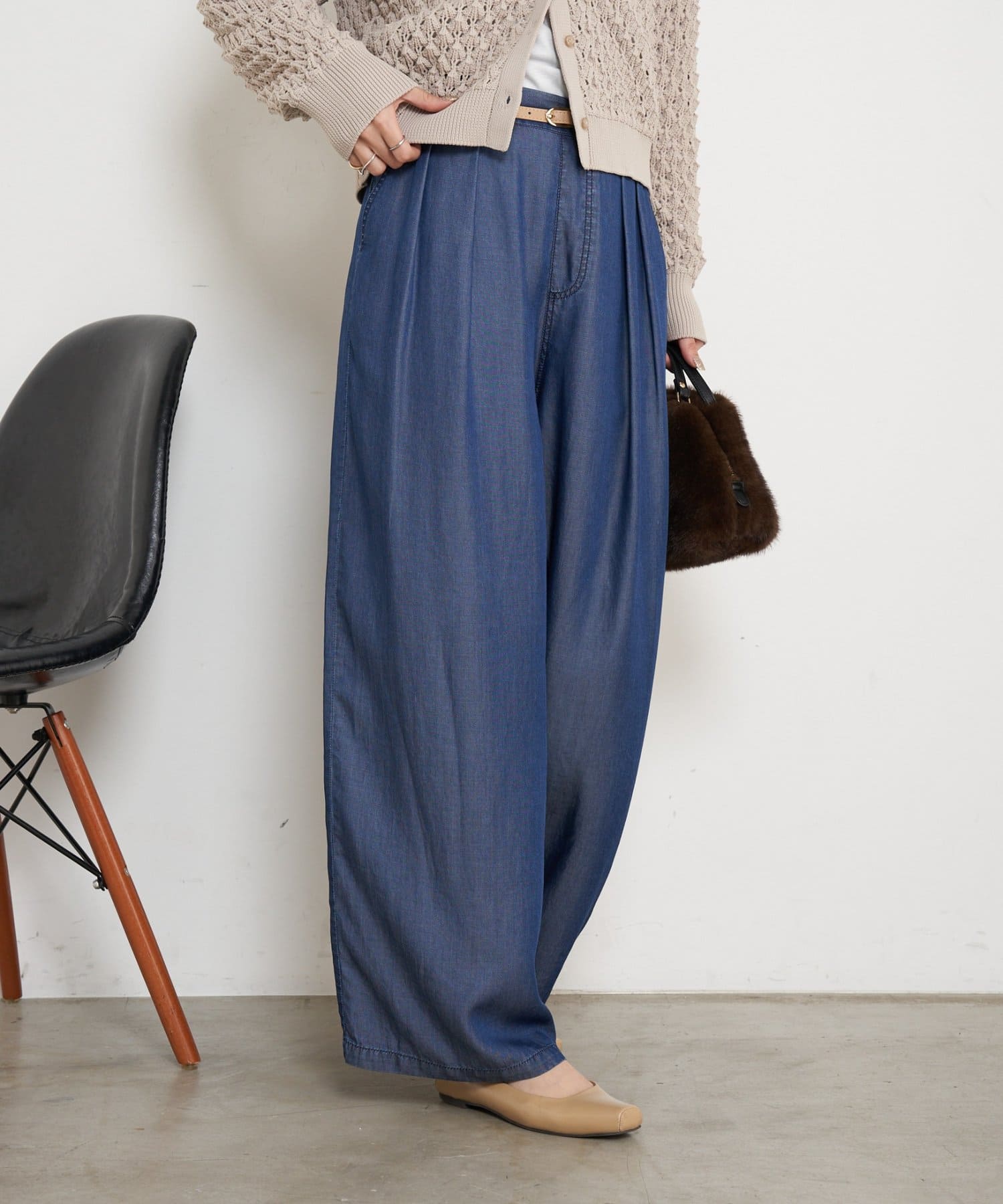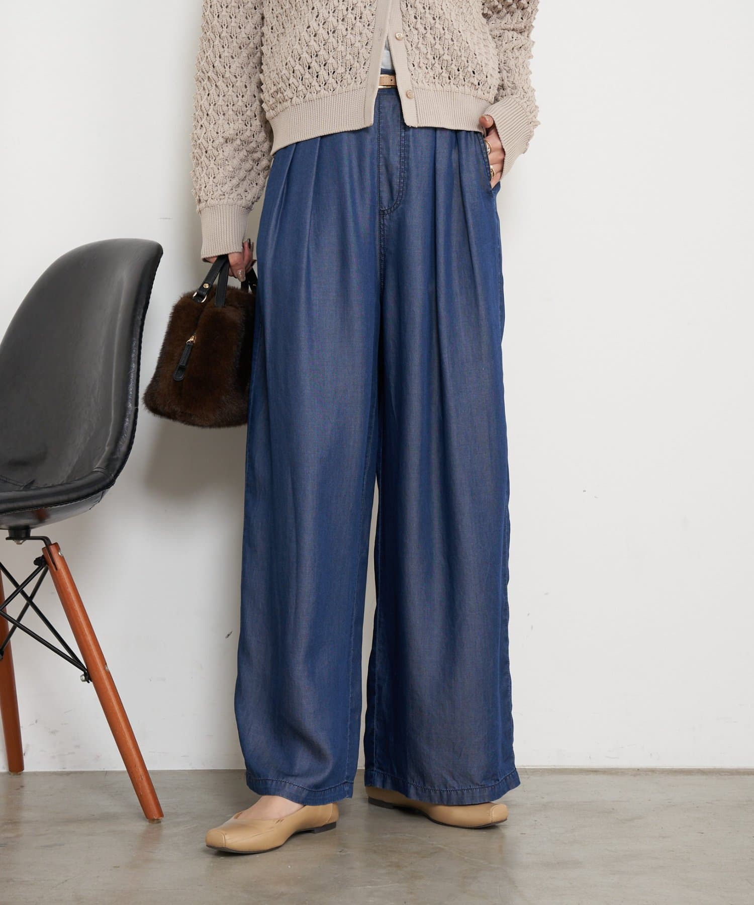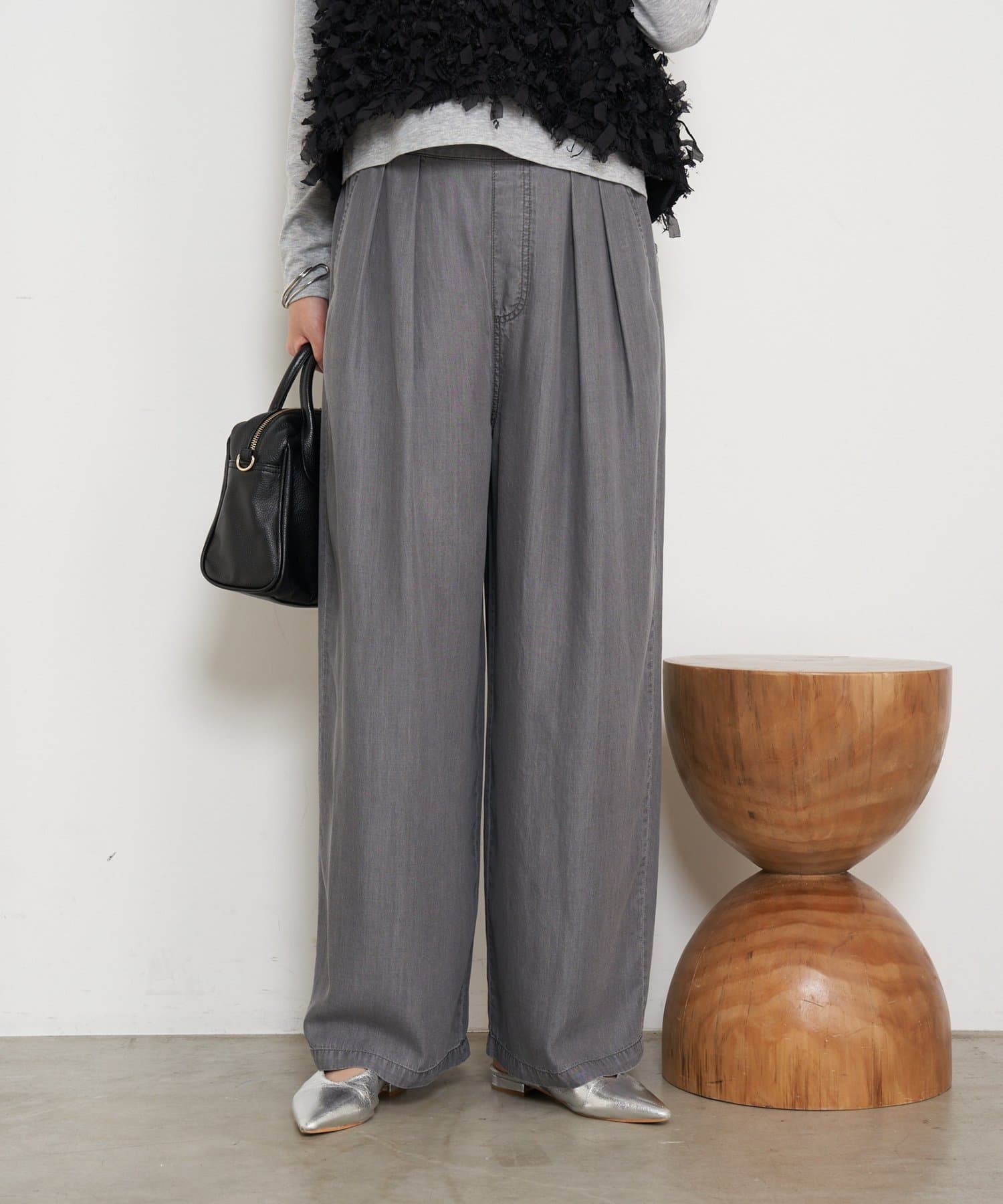 【やわらぐシルエット/きれい見え】テンセルタックワイドパンツ