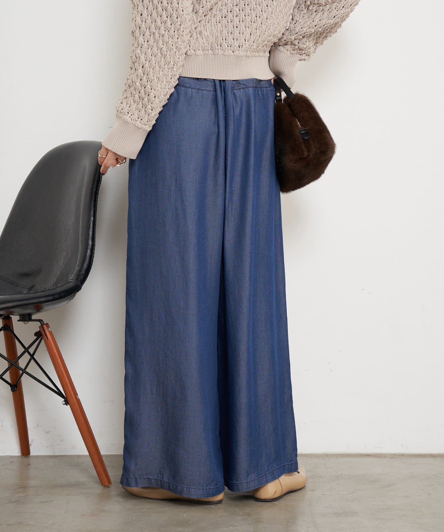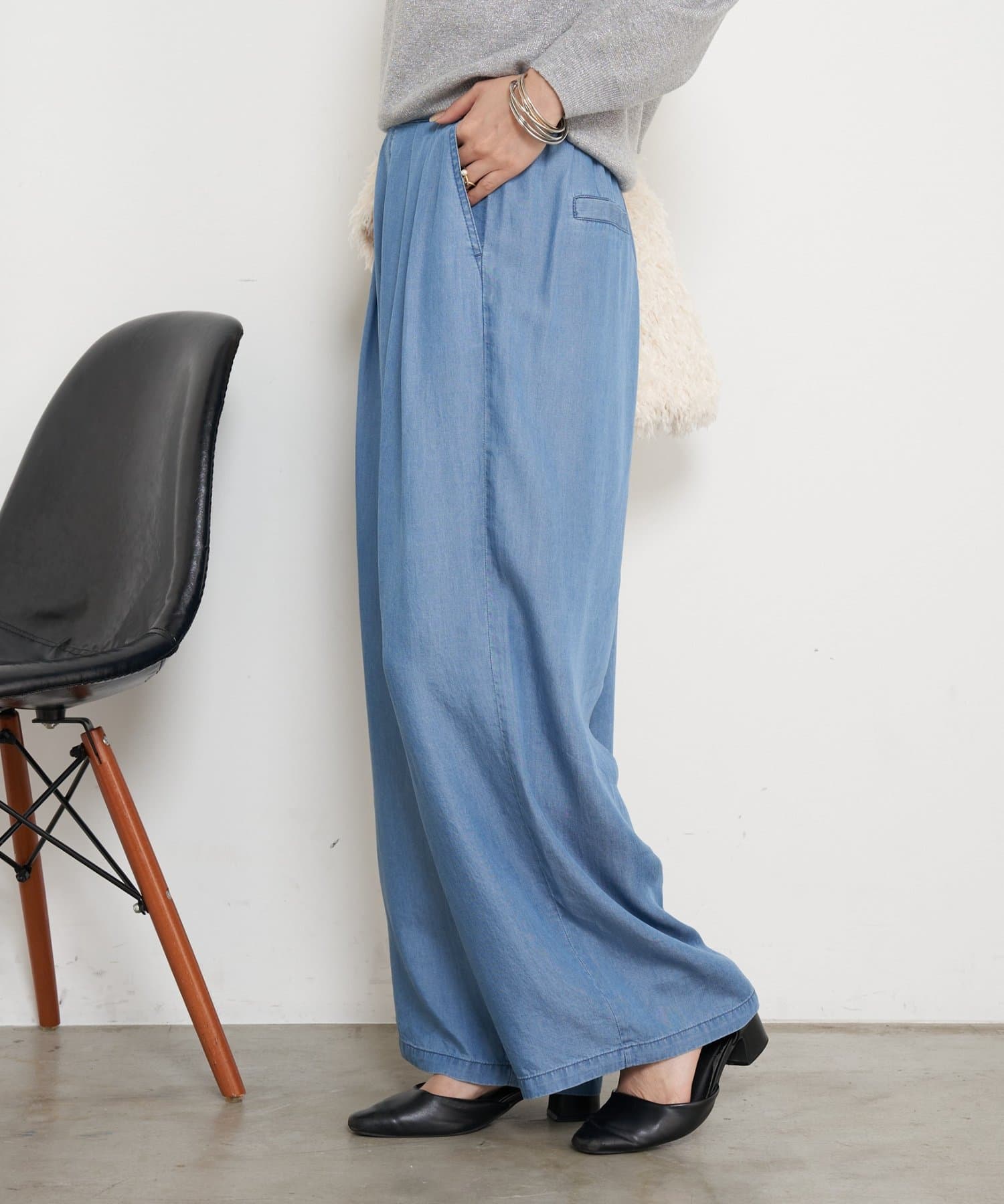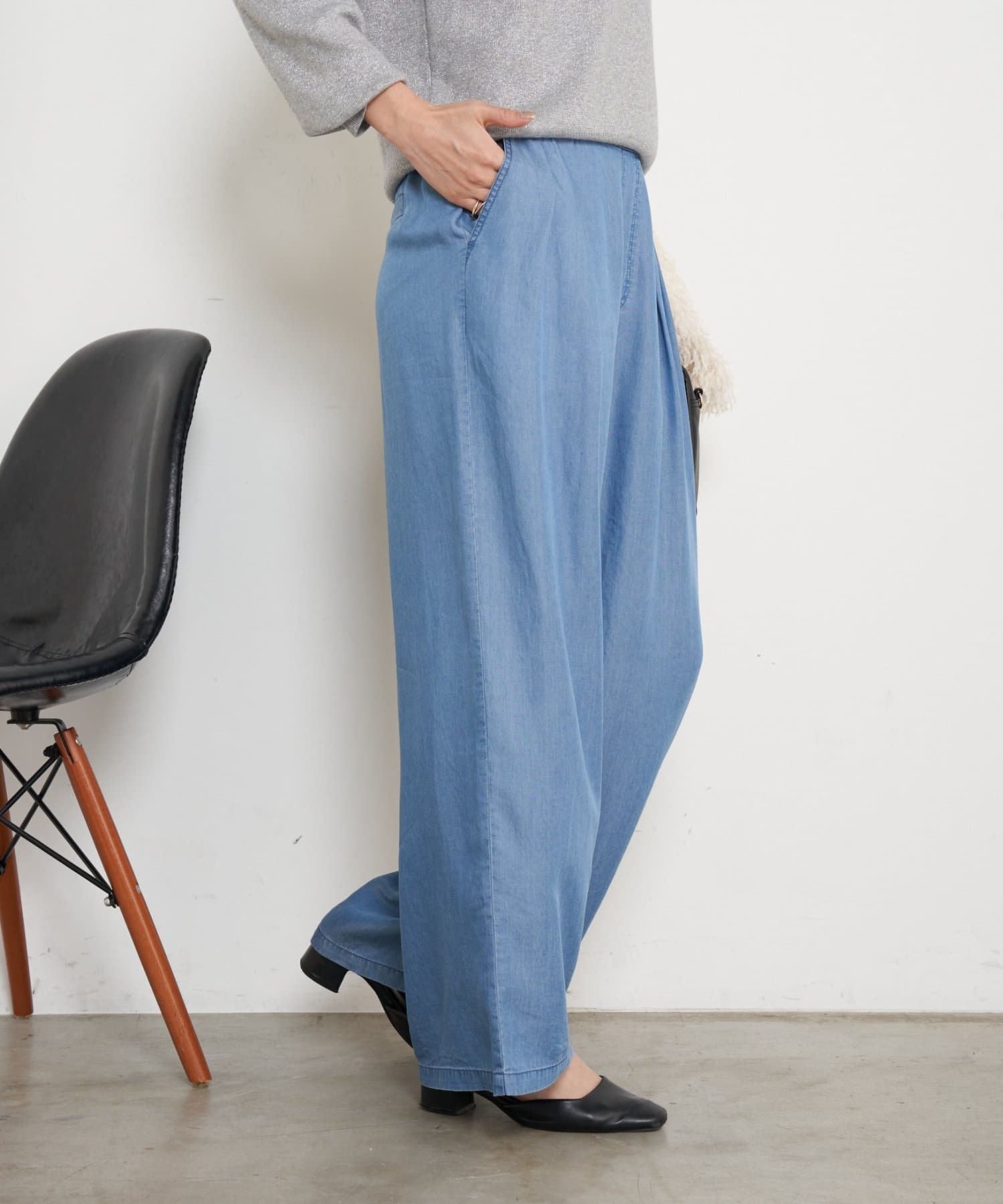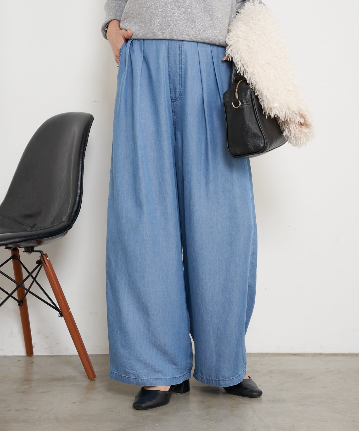 【やわらぐシルエット/きれい見え】テンセルタックワイドパンツ