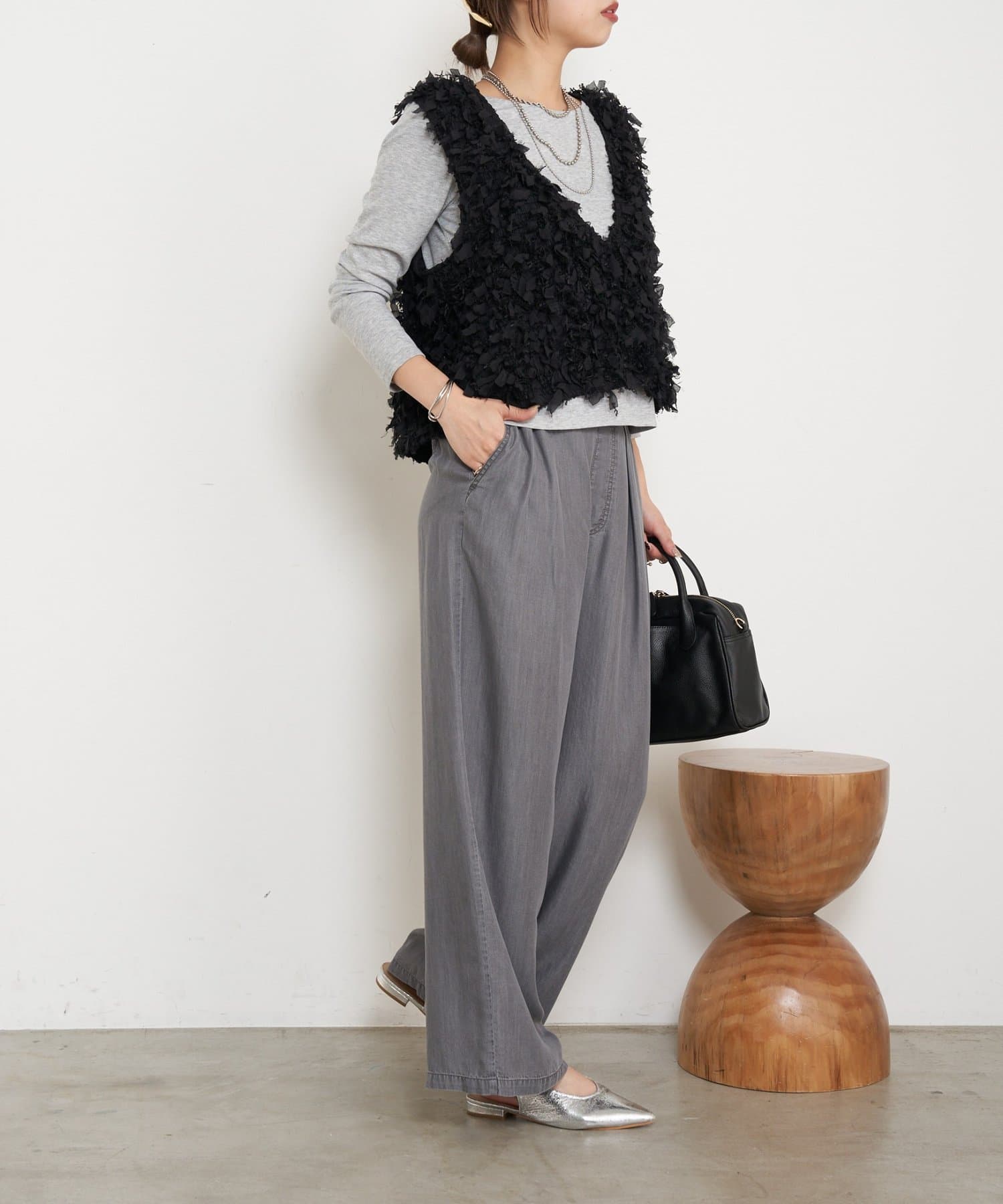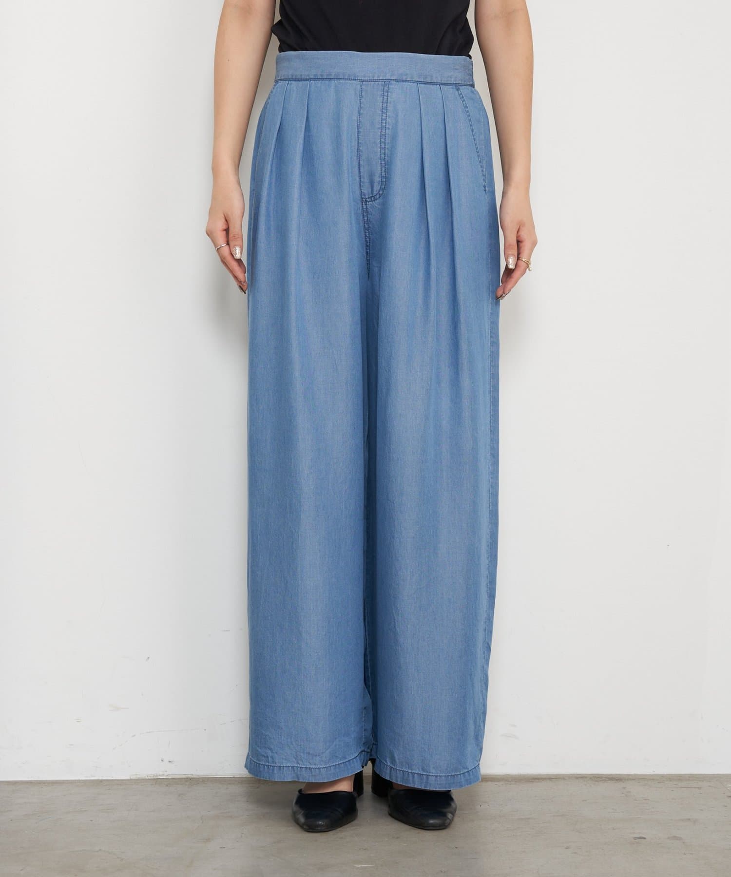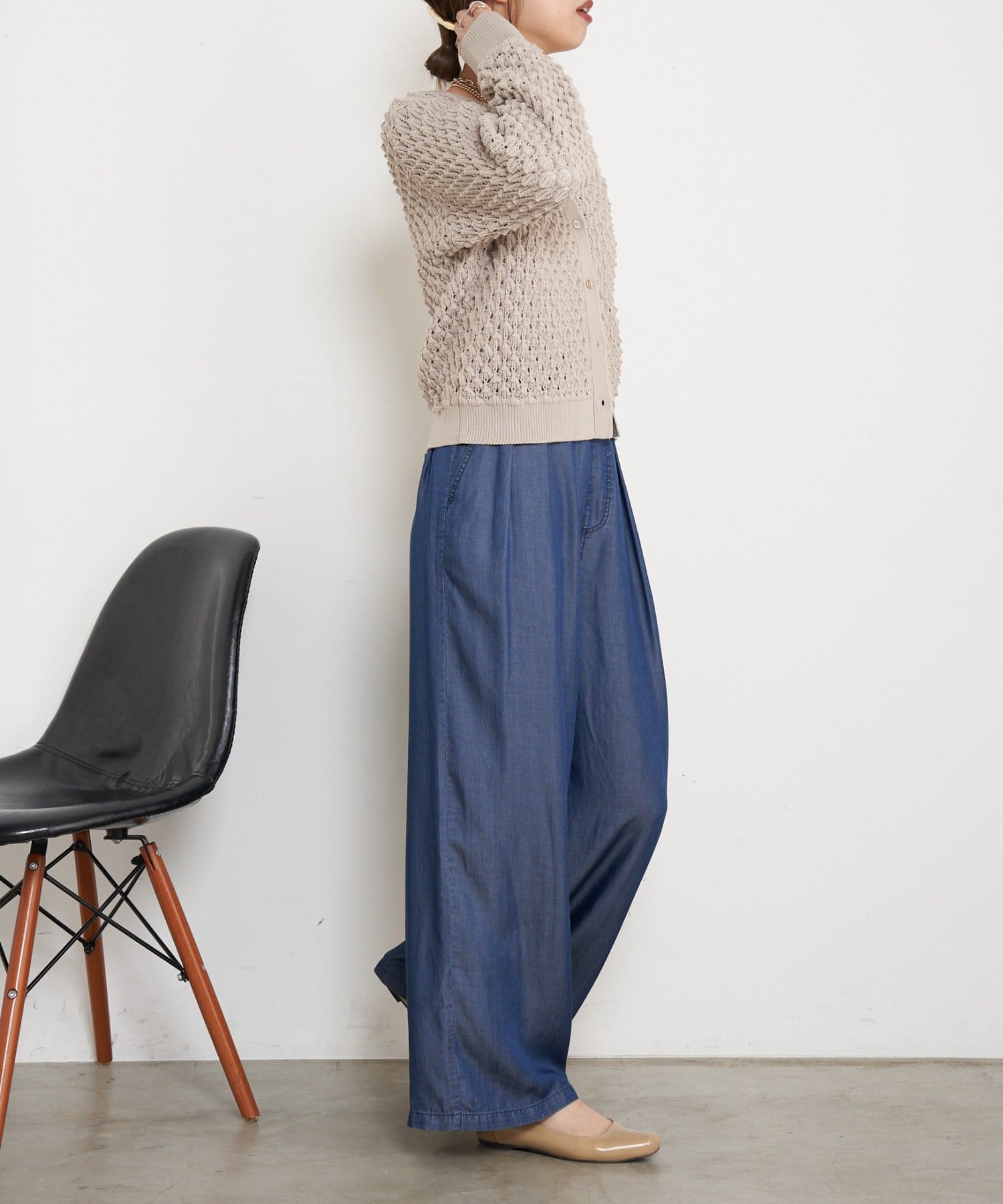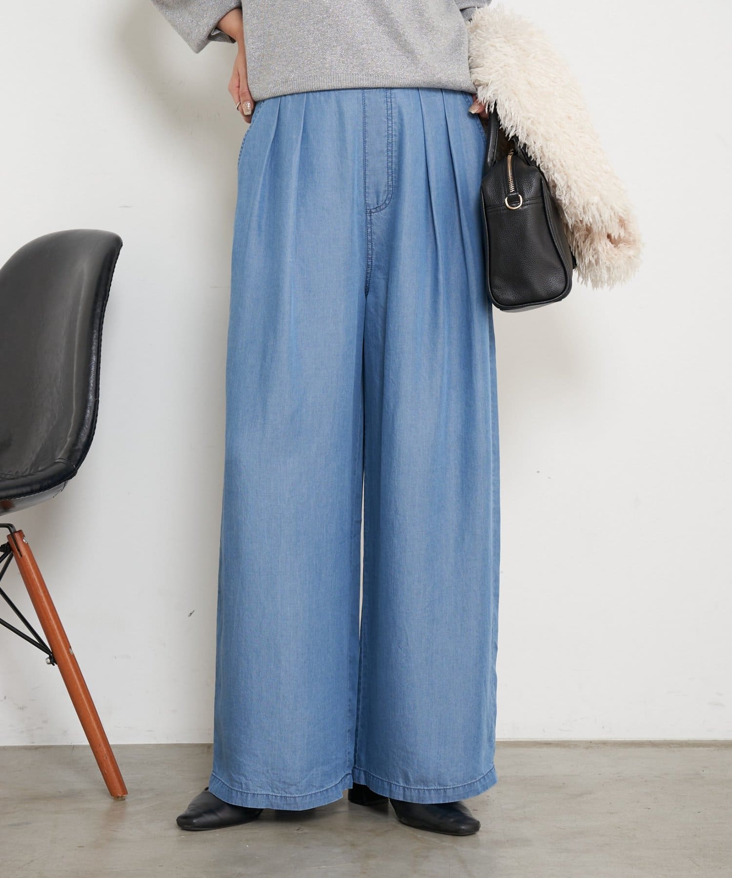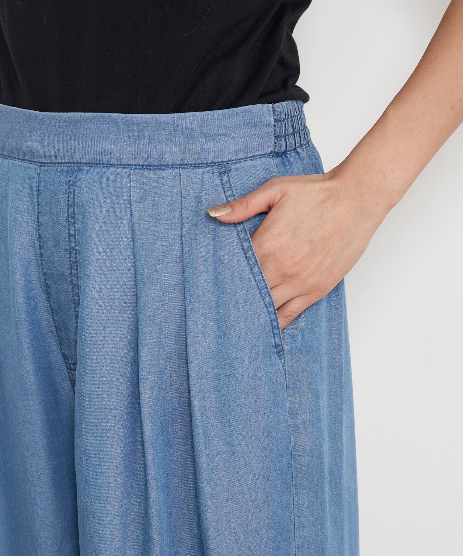 【やわらぐシルエット/きれい見え】テンセルタックワイドパンツ