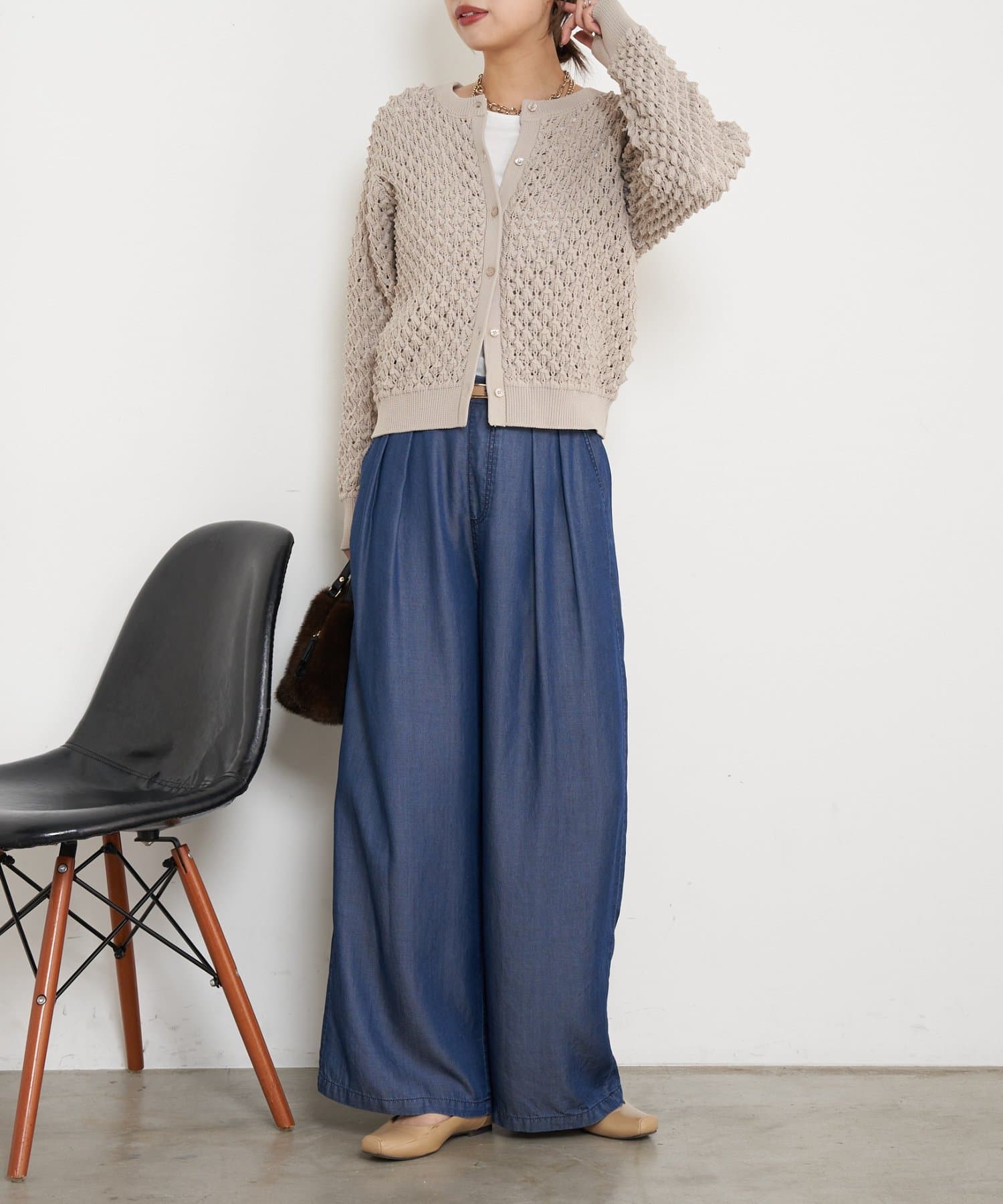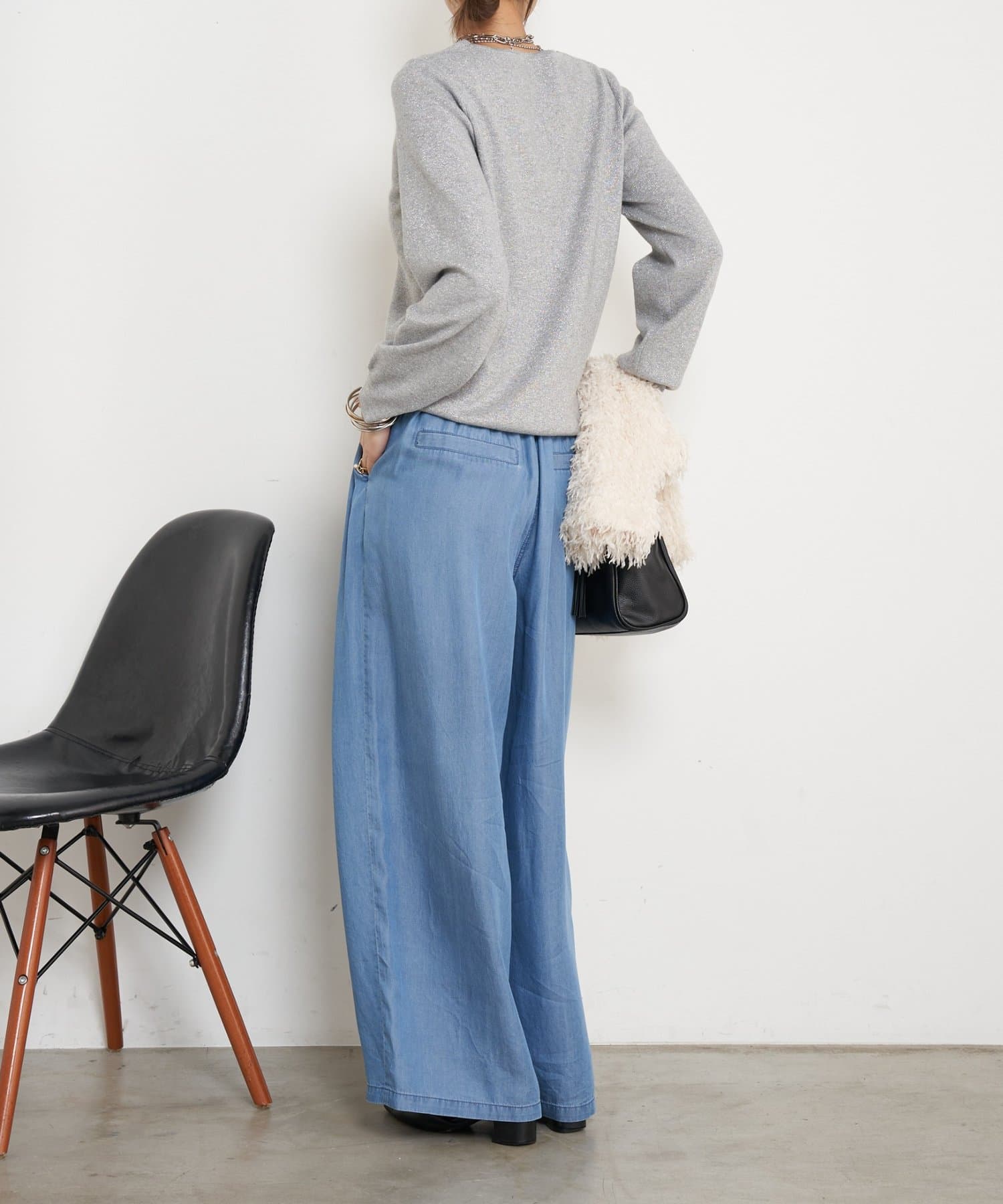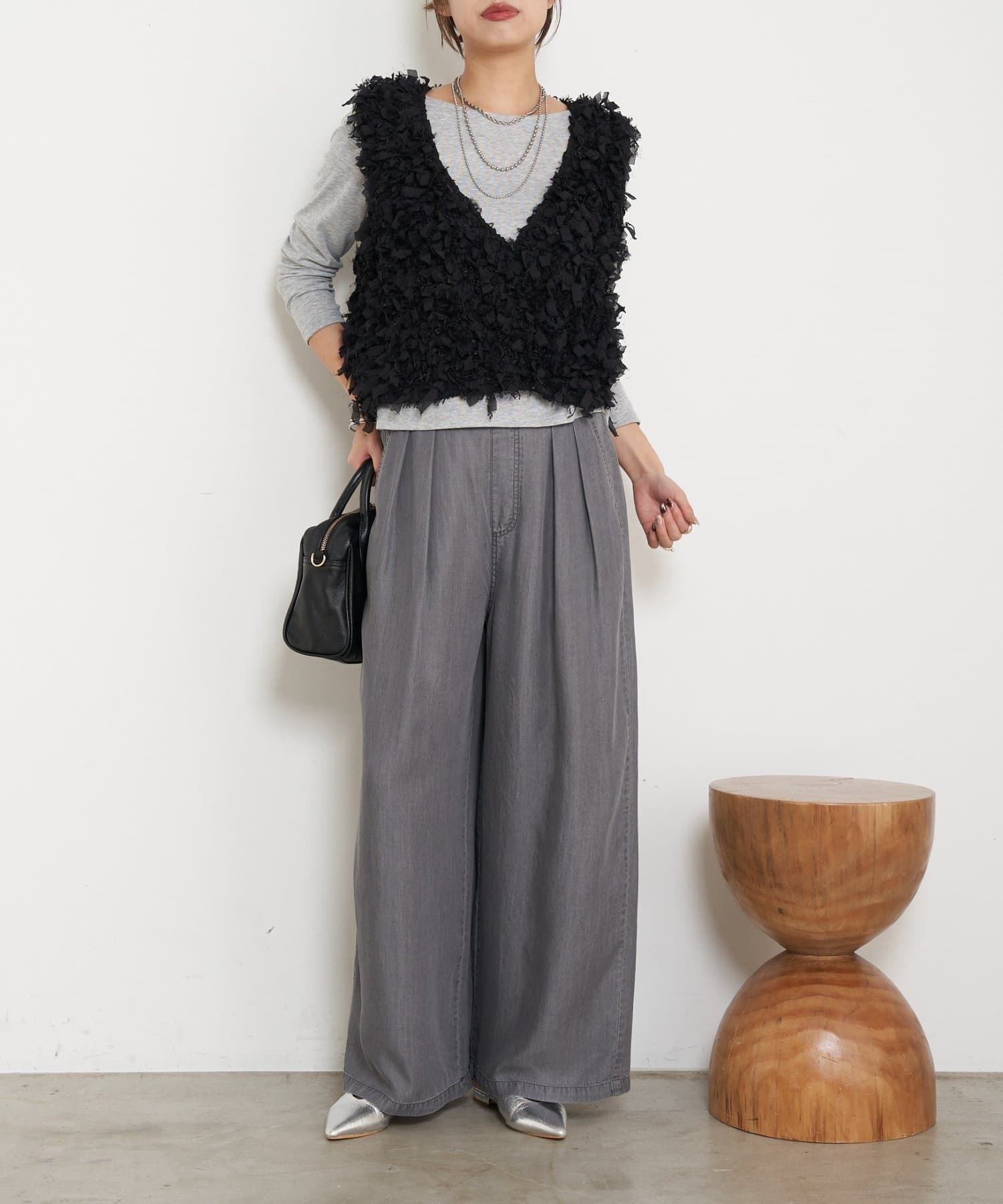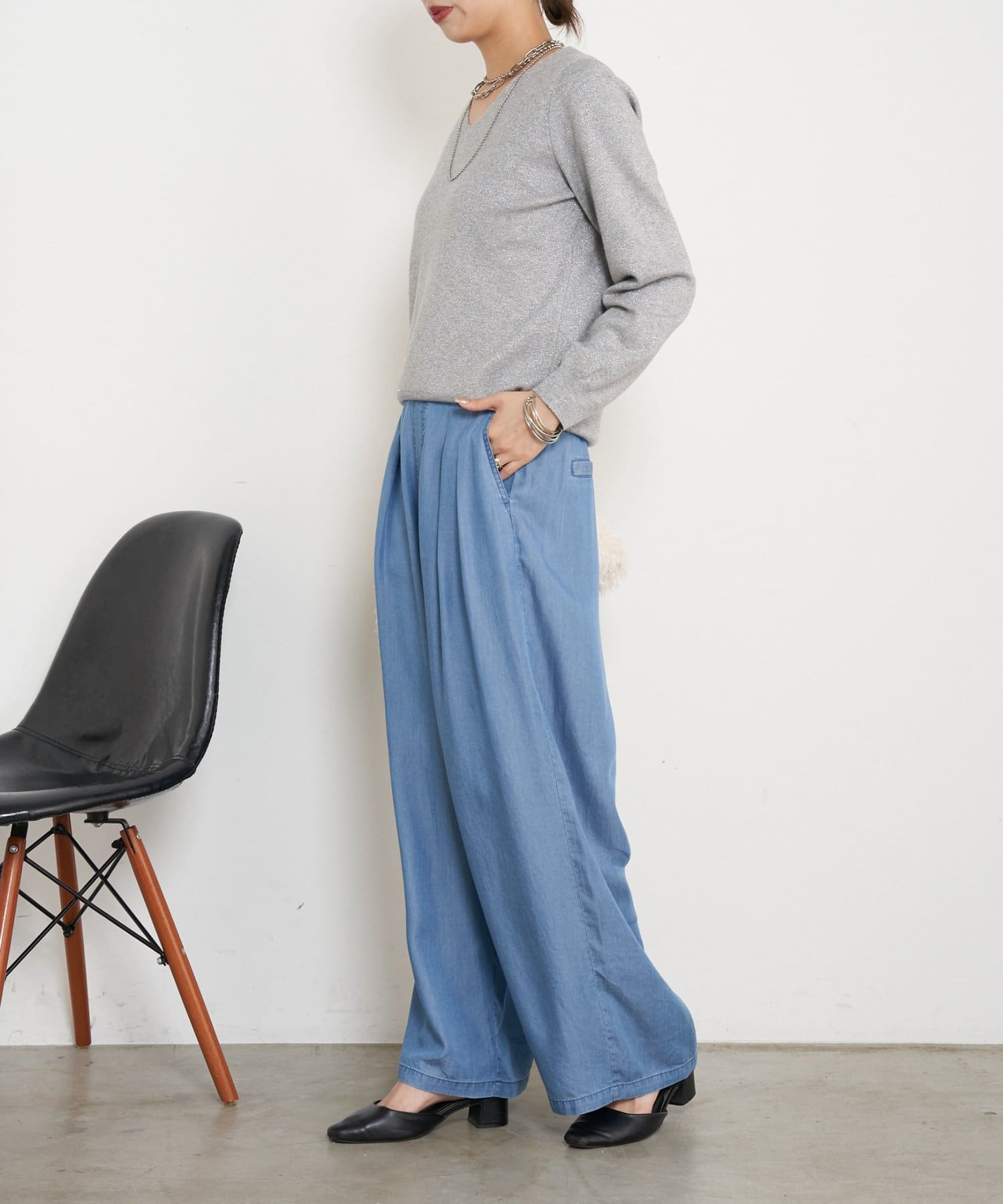 【やわらぐシルエット/きれい見え】テンセルタックワイドパンツ