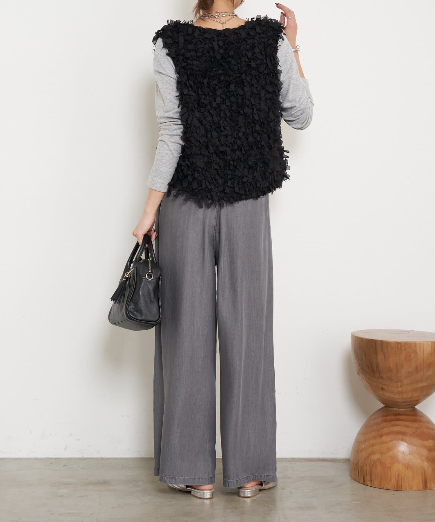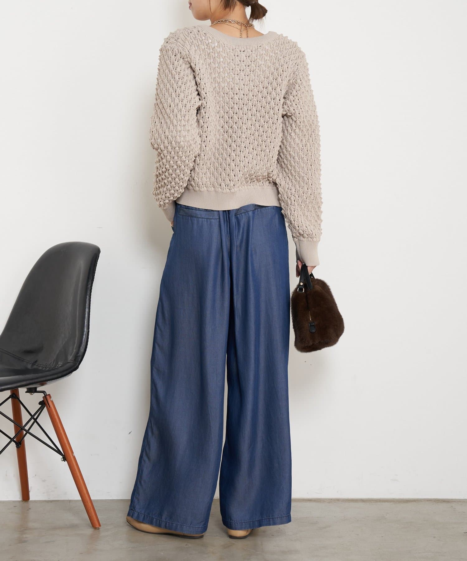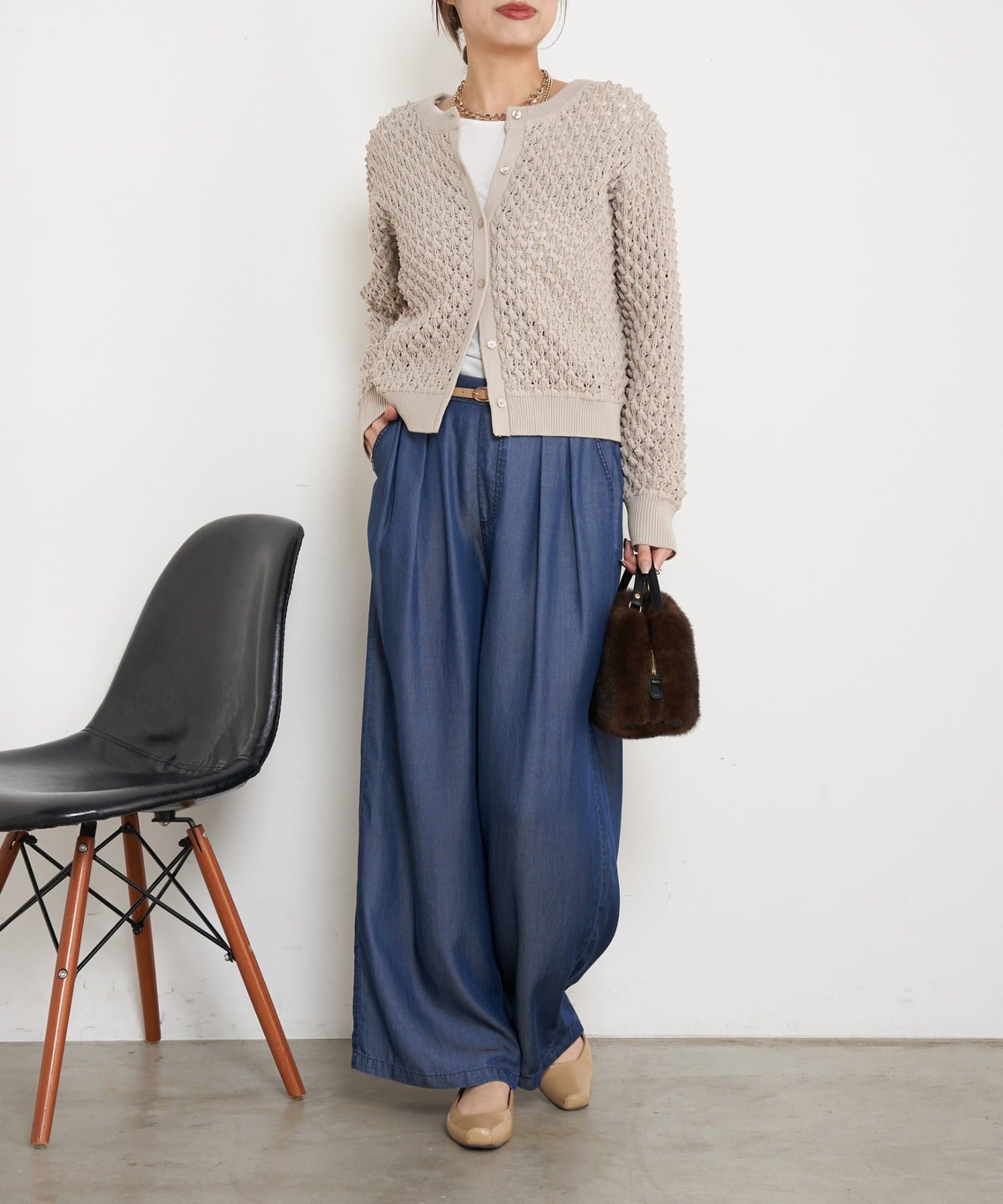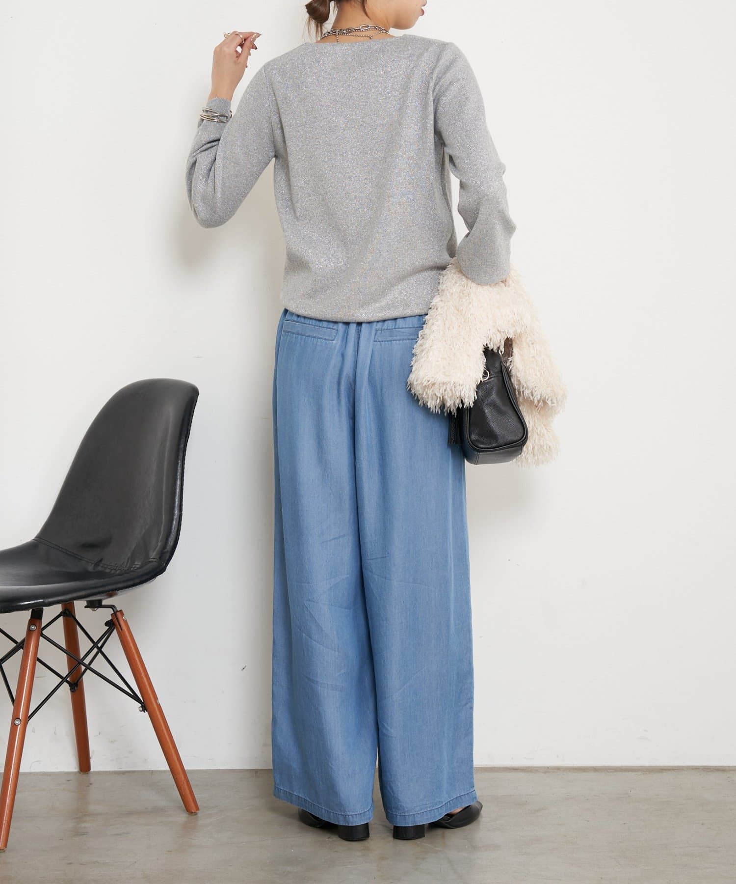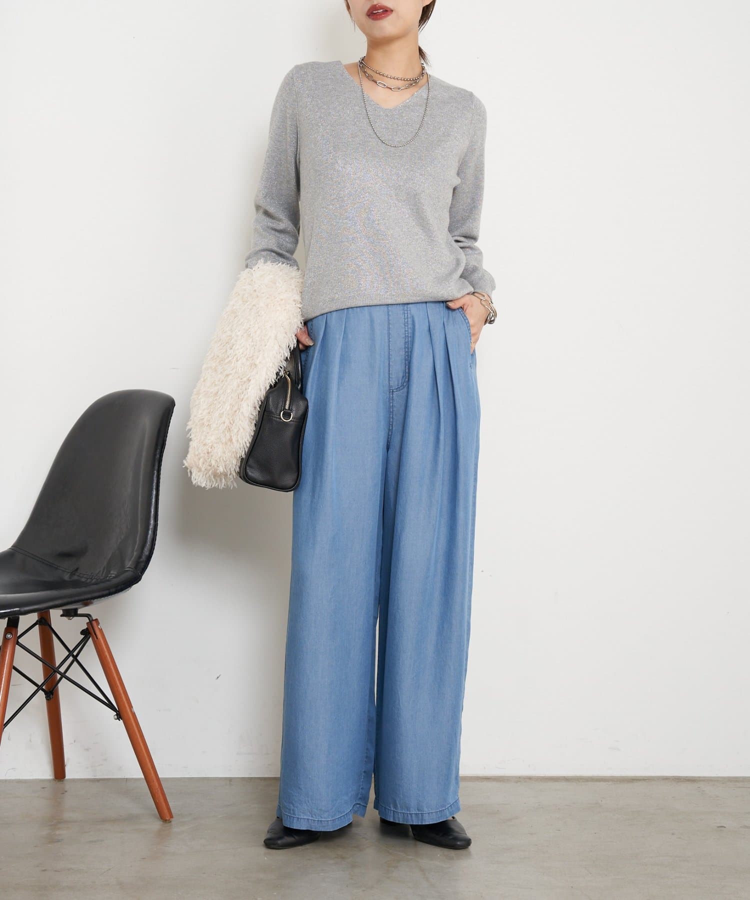 【やわらぐシルエット/きれい見え】テンセルタックワイドパンツ