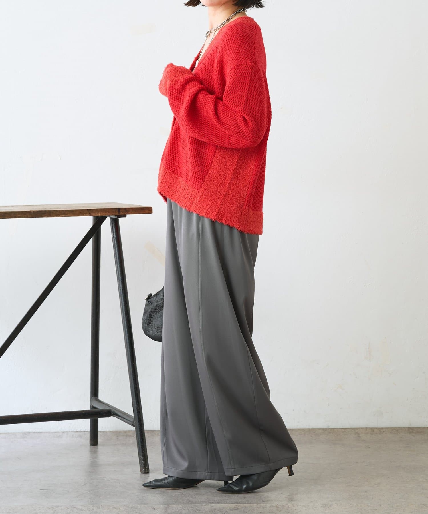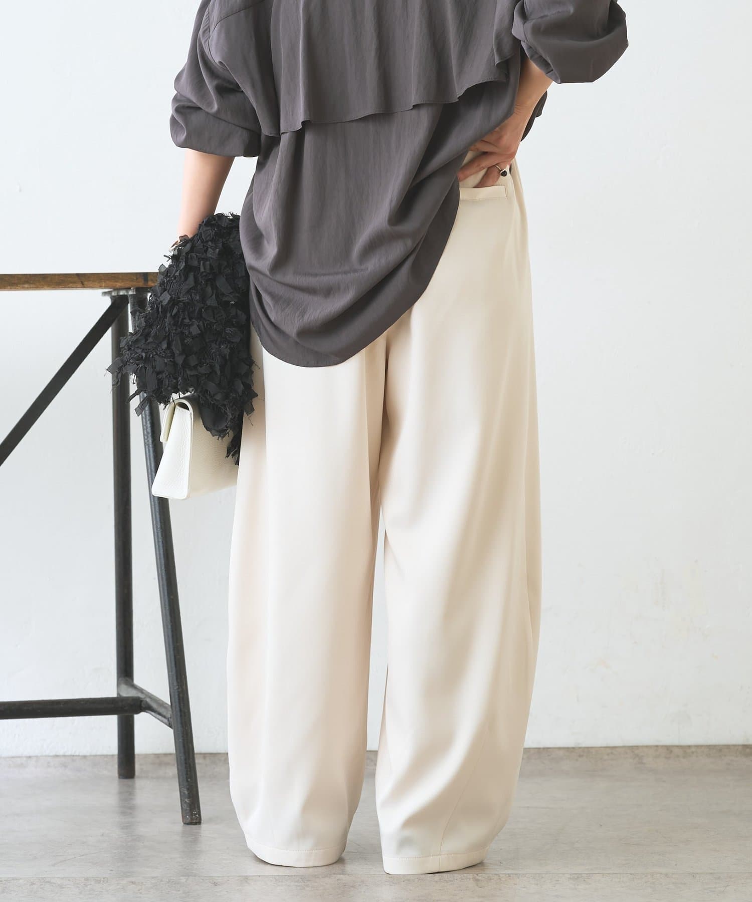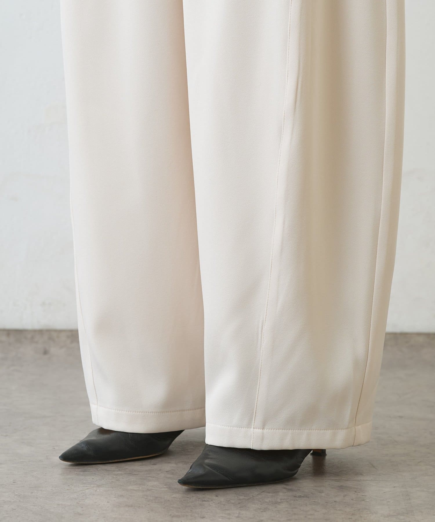 ・とろみ素材で落ち感がきれいで、カーブラインが自然にシルエットを整えてくれる一本!