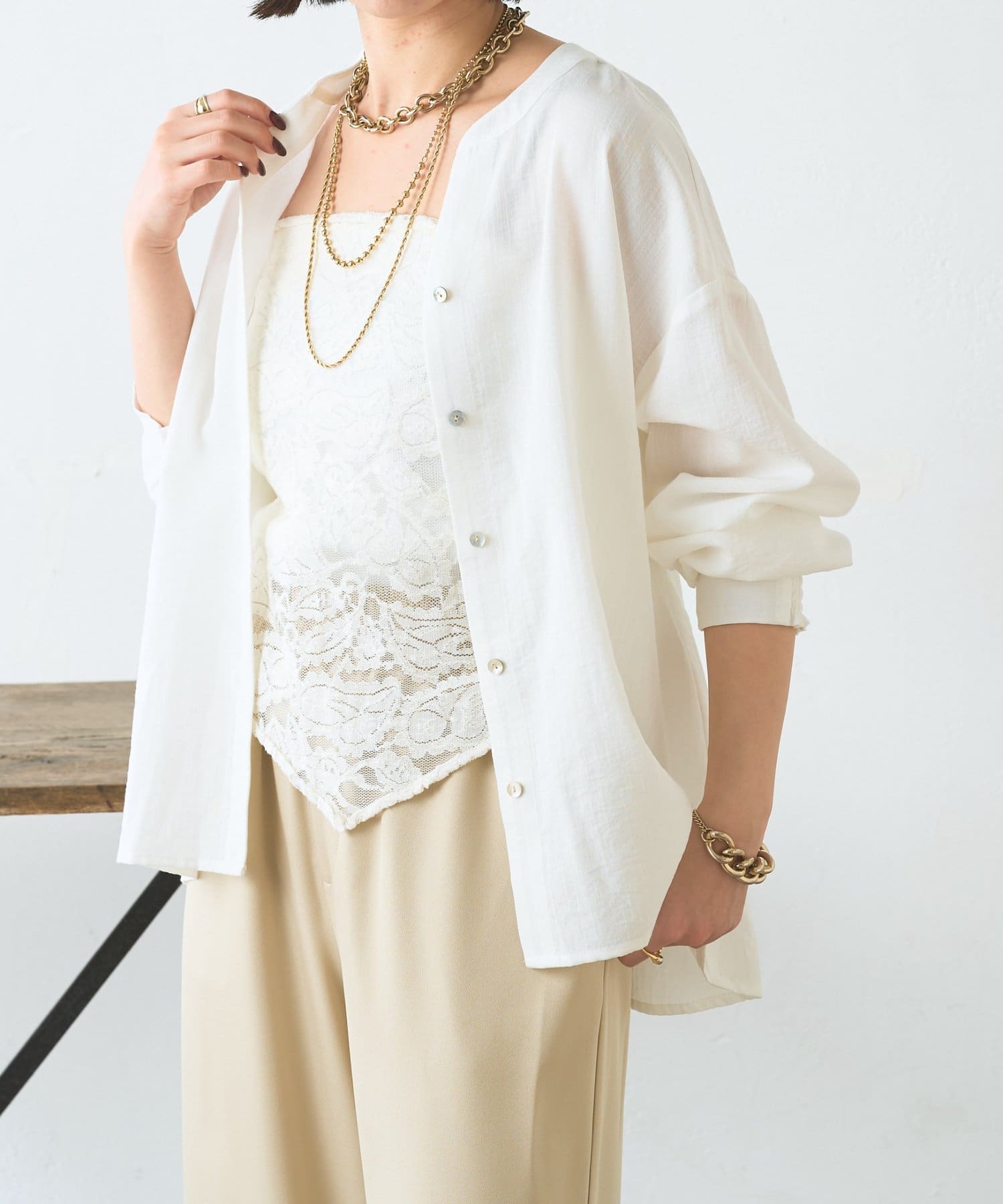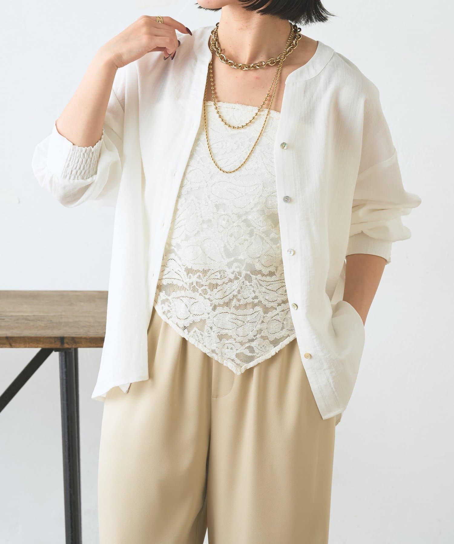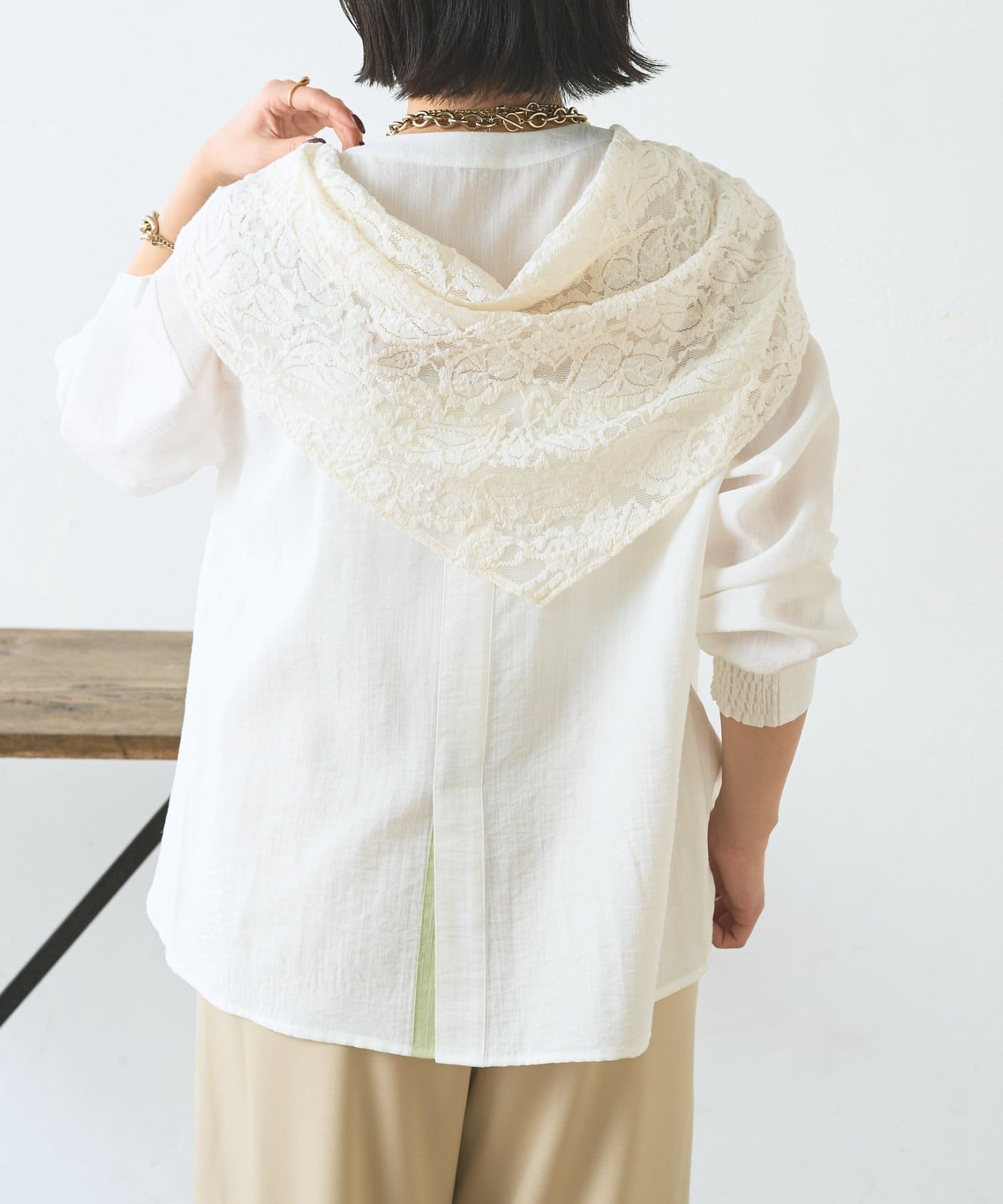 ・取り外せるレーススカーフ付きで、シンプルにも華やかにもアレンジ自在