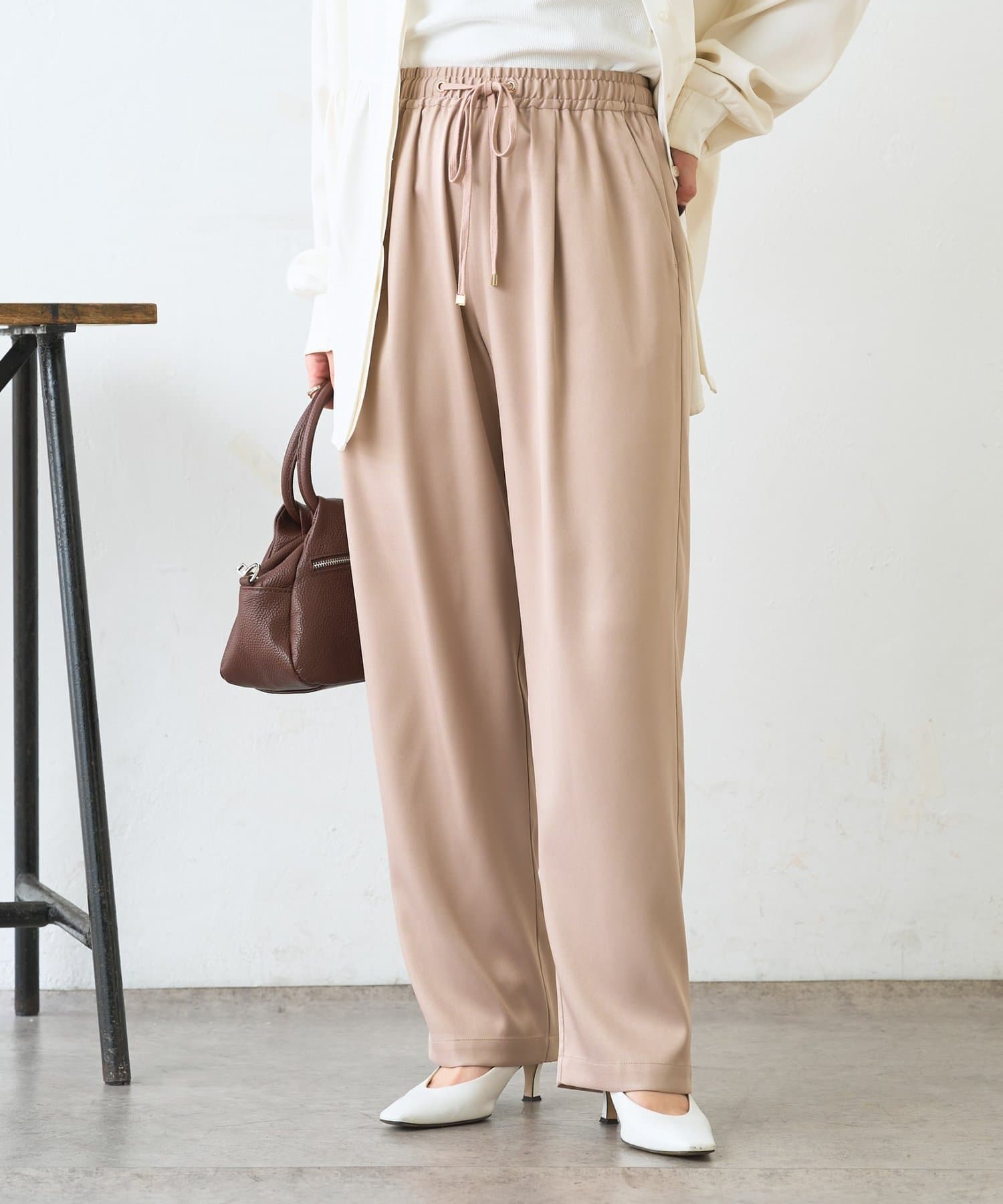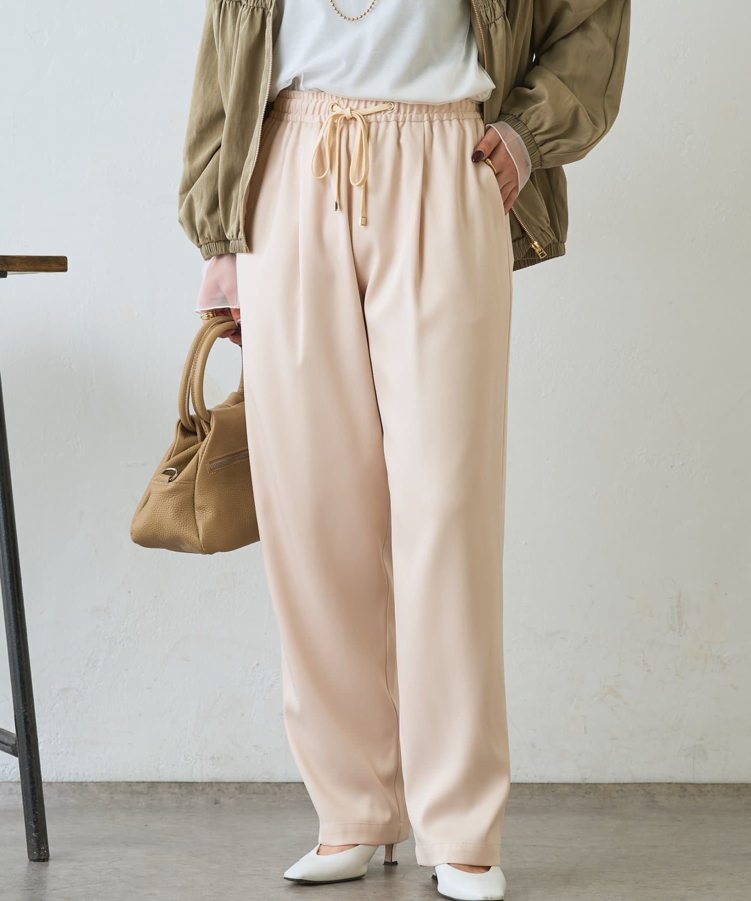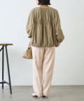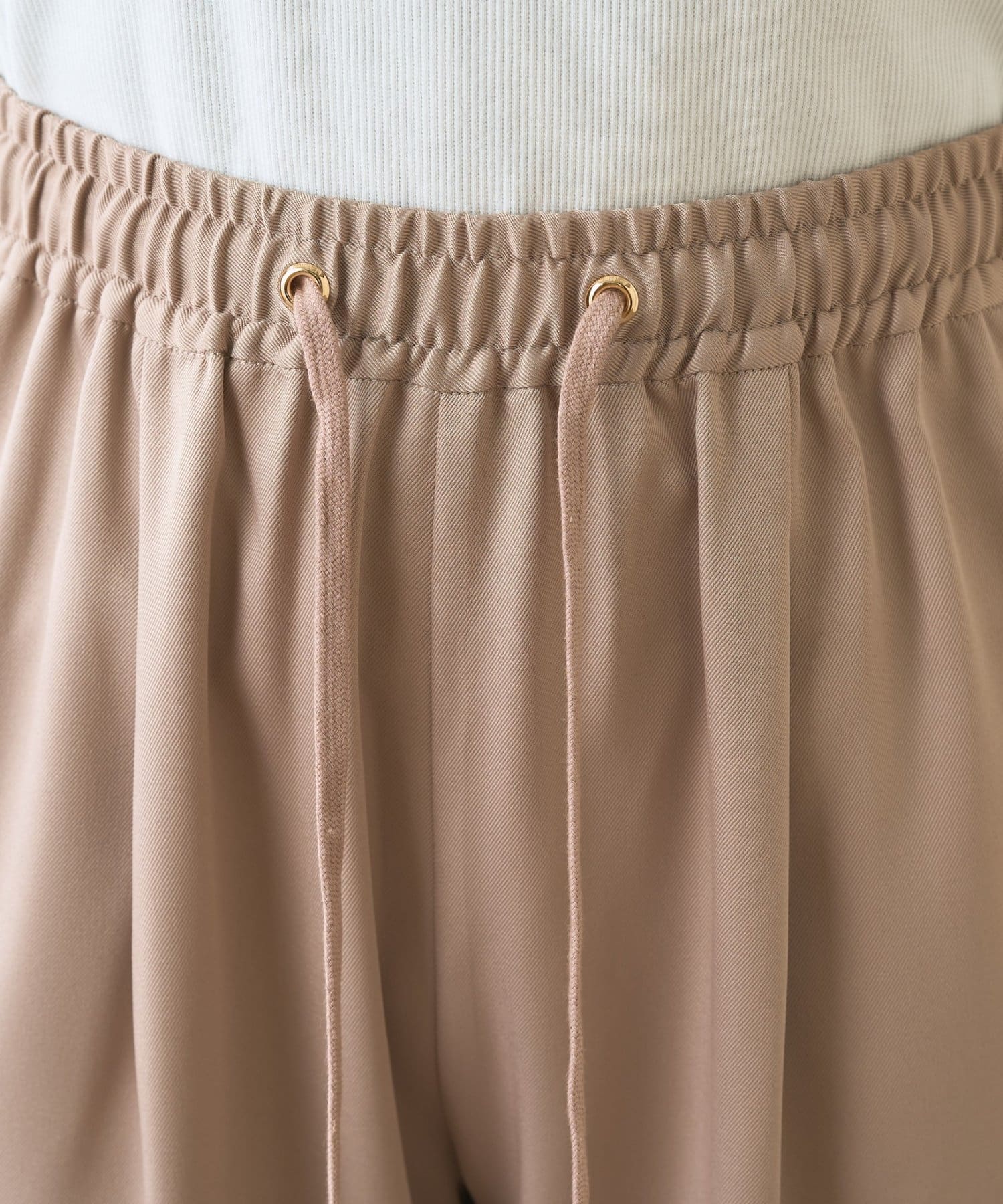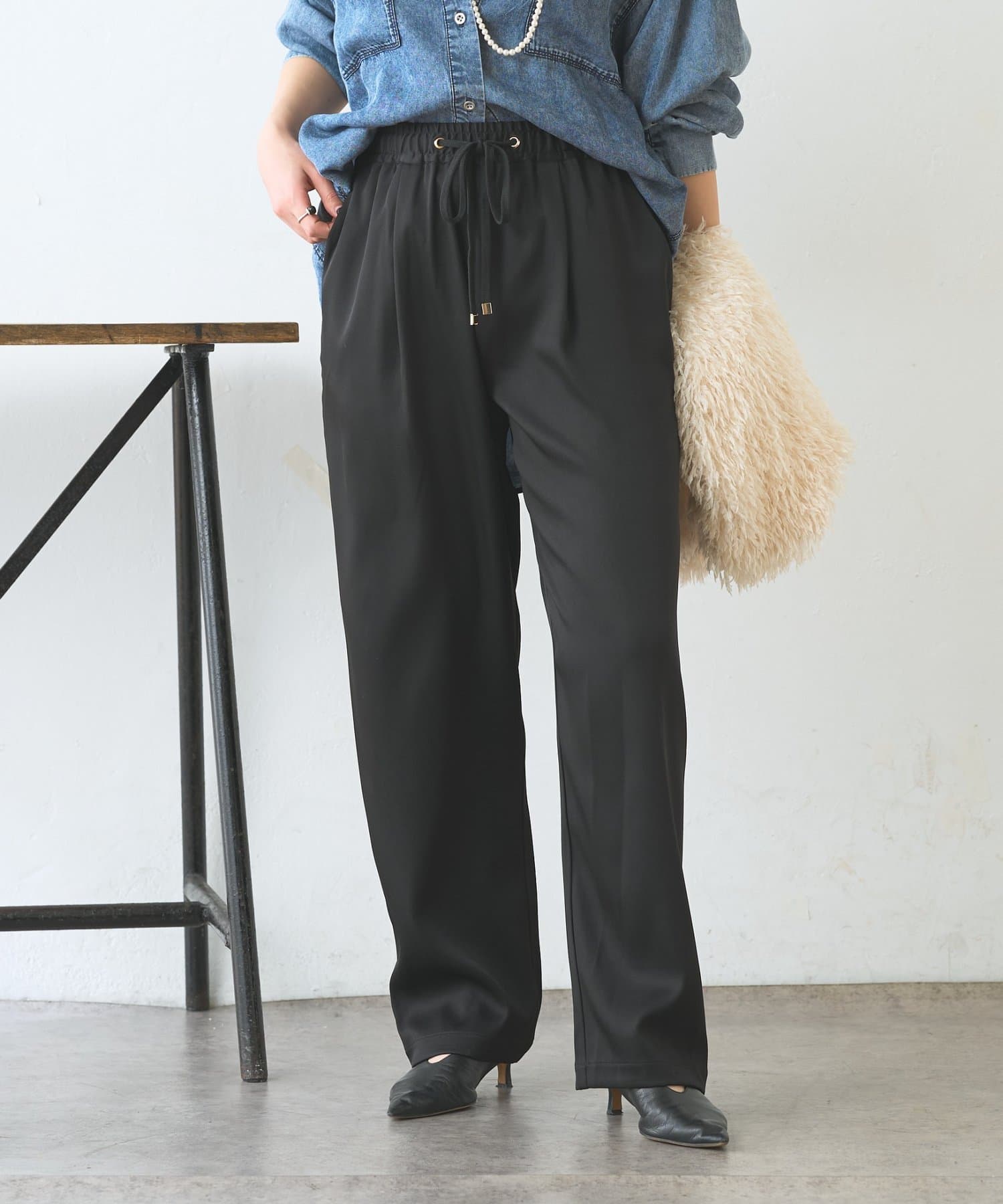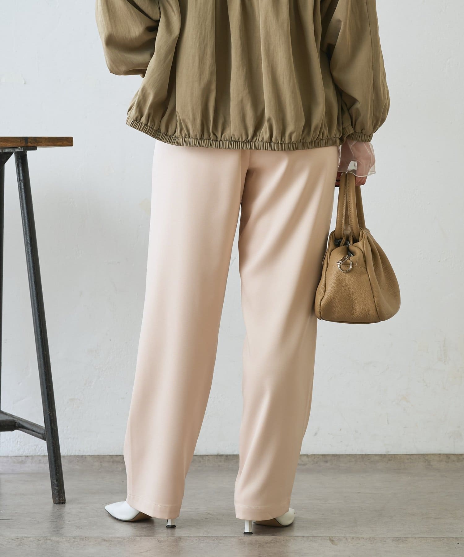 ・サテンライクな艶感が上品で、イージーパンツでもきれい見えします。