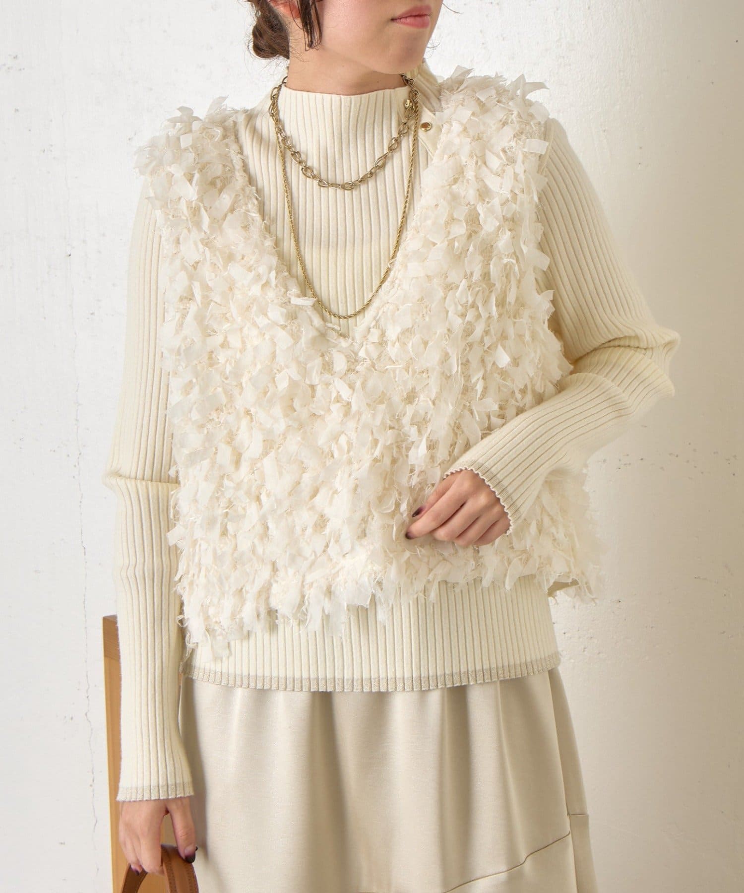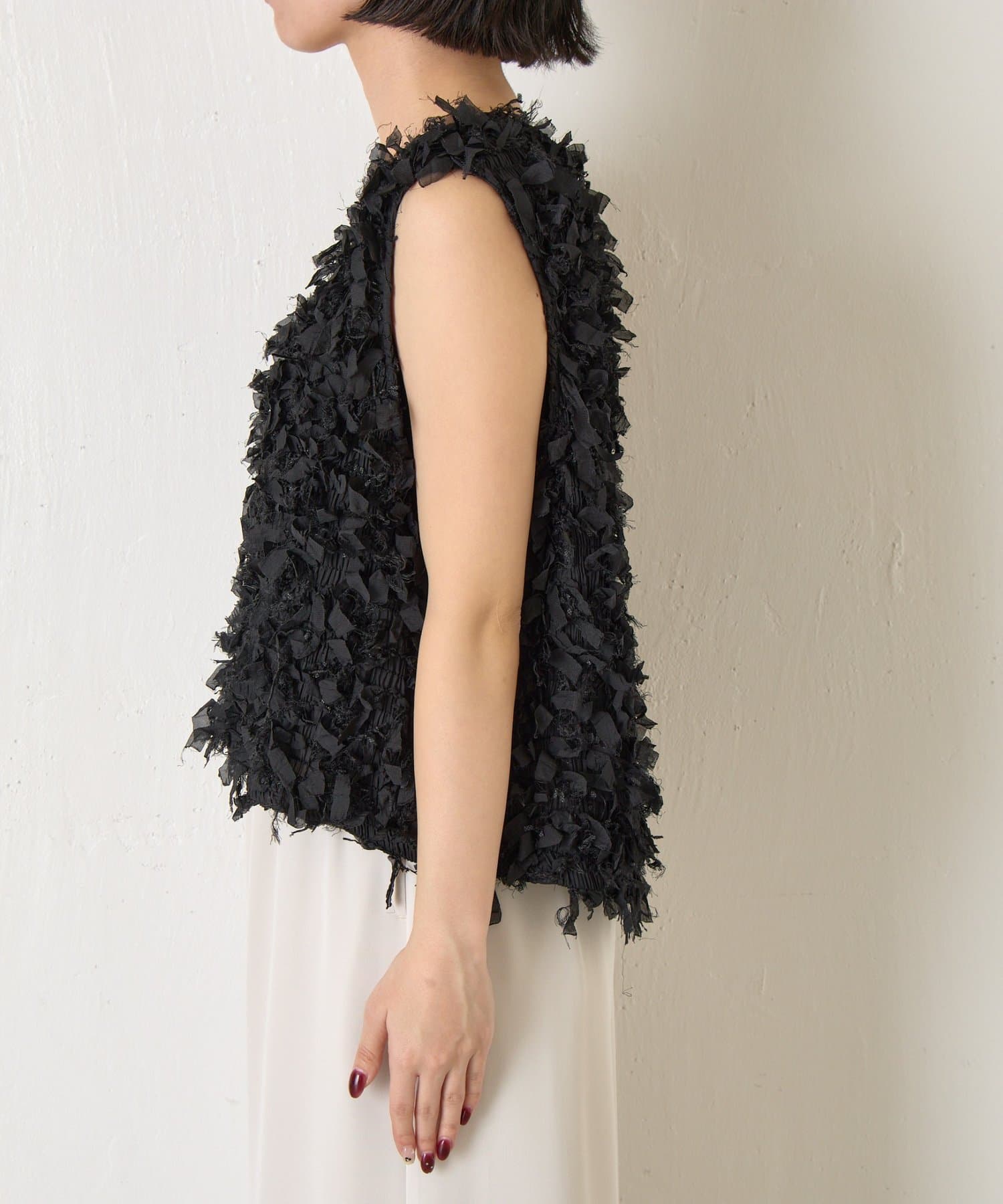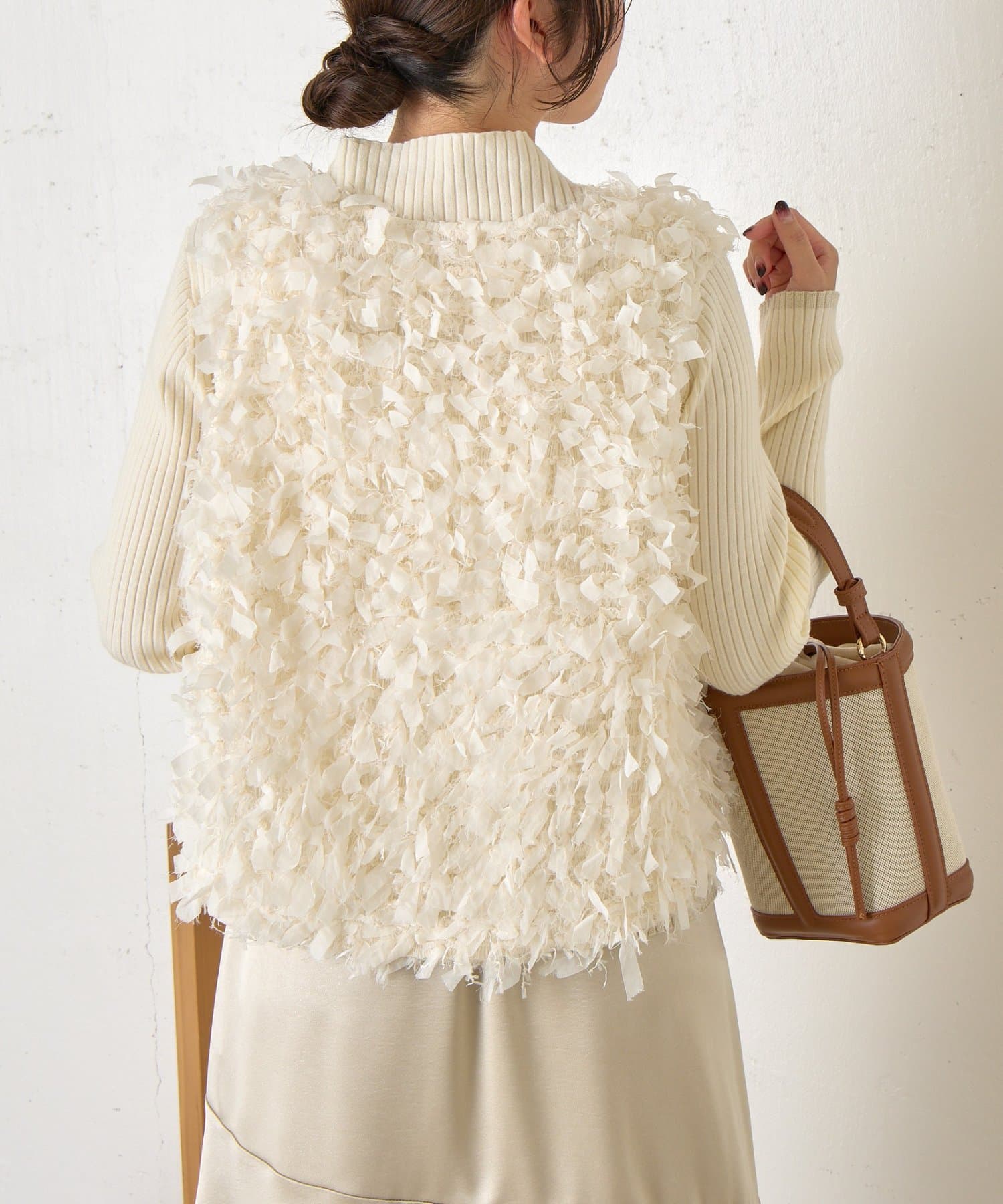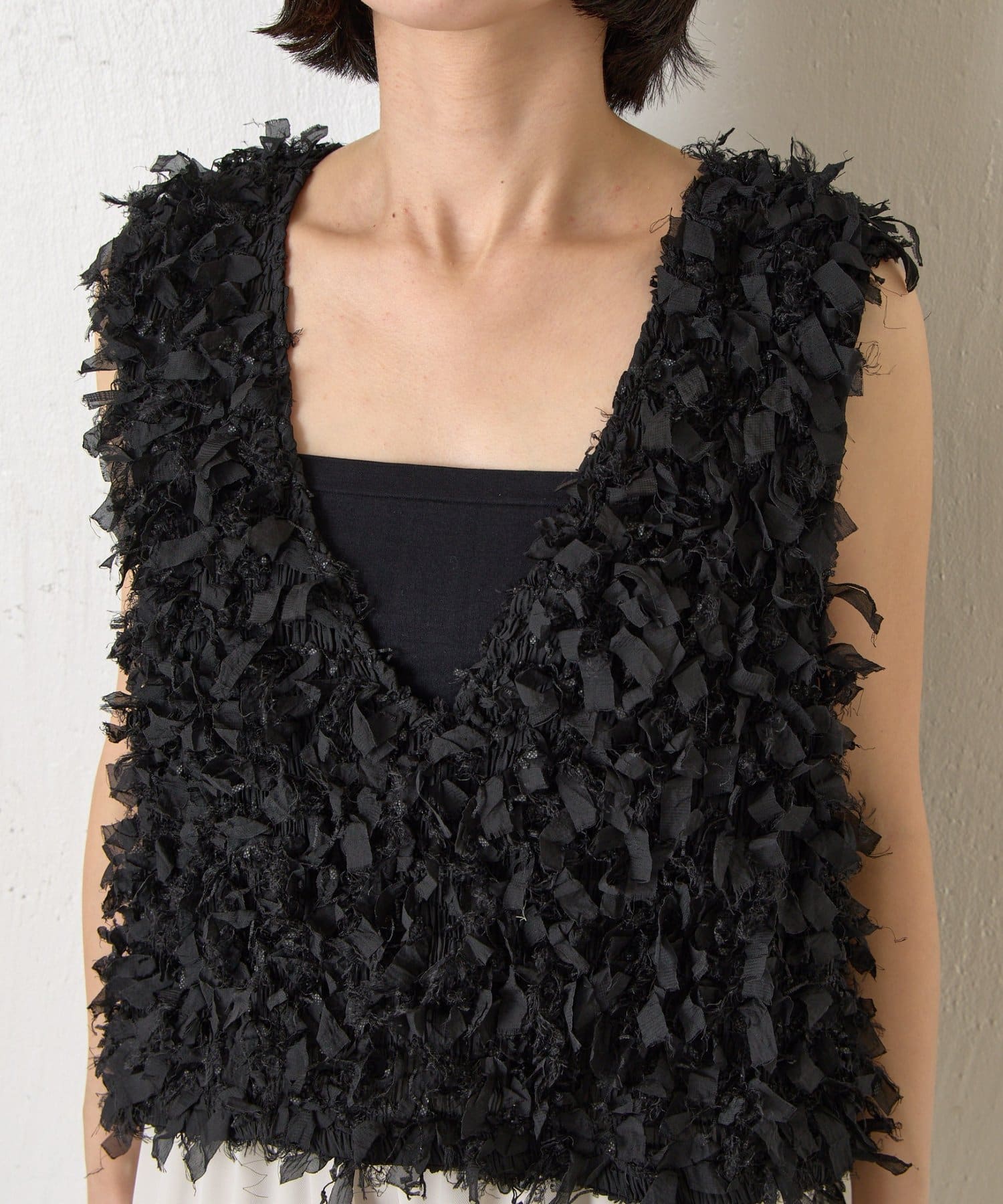 ・トレンド感のある大人のためのリボンフリンジベスト。