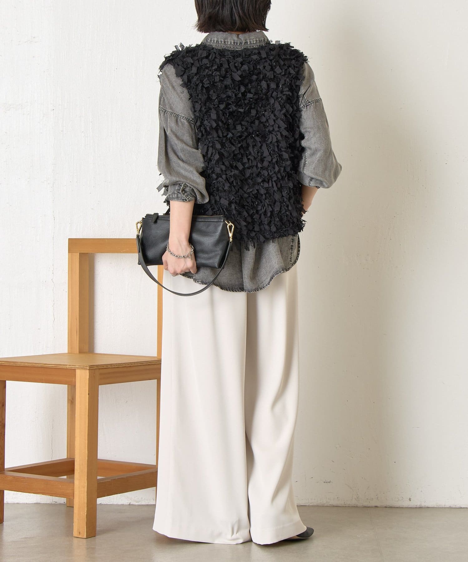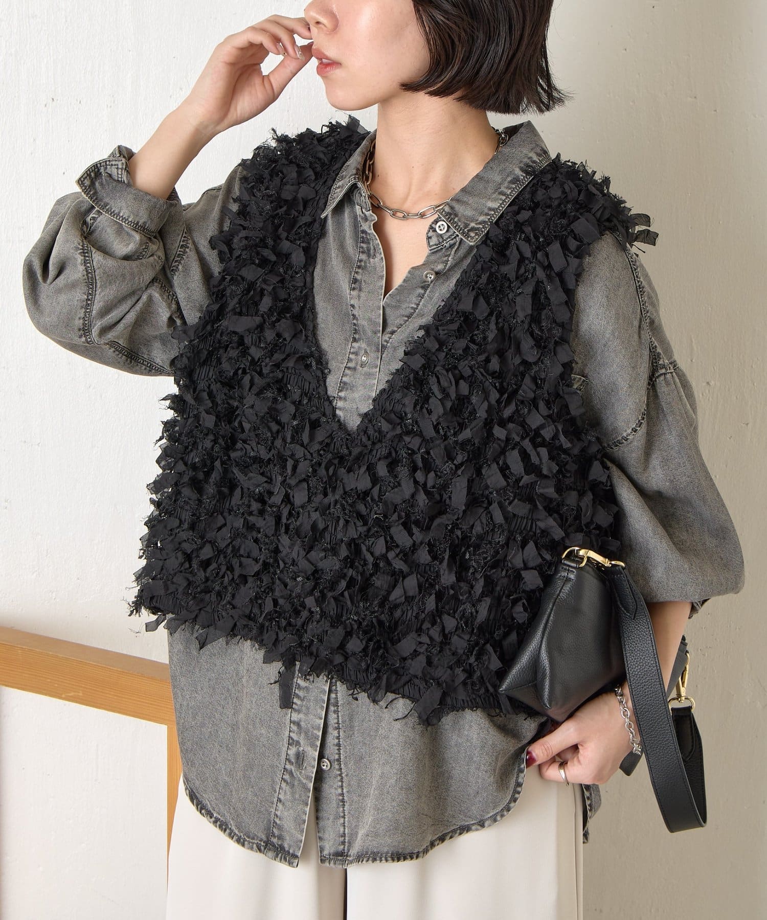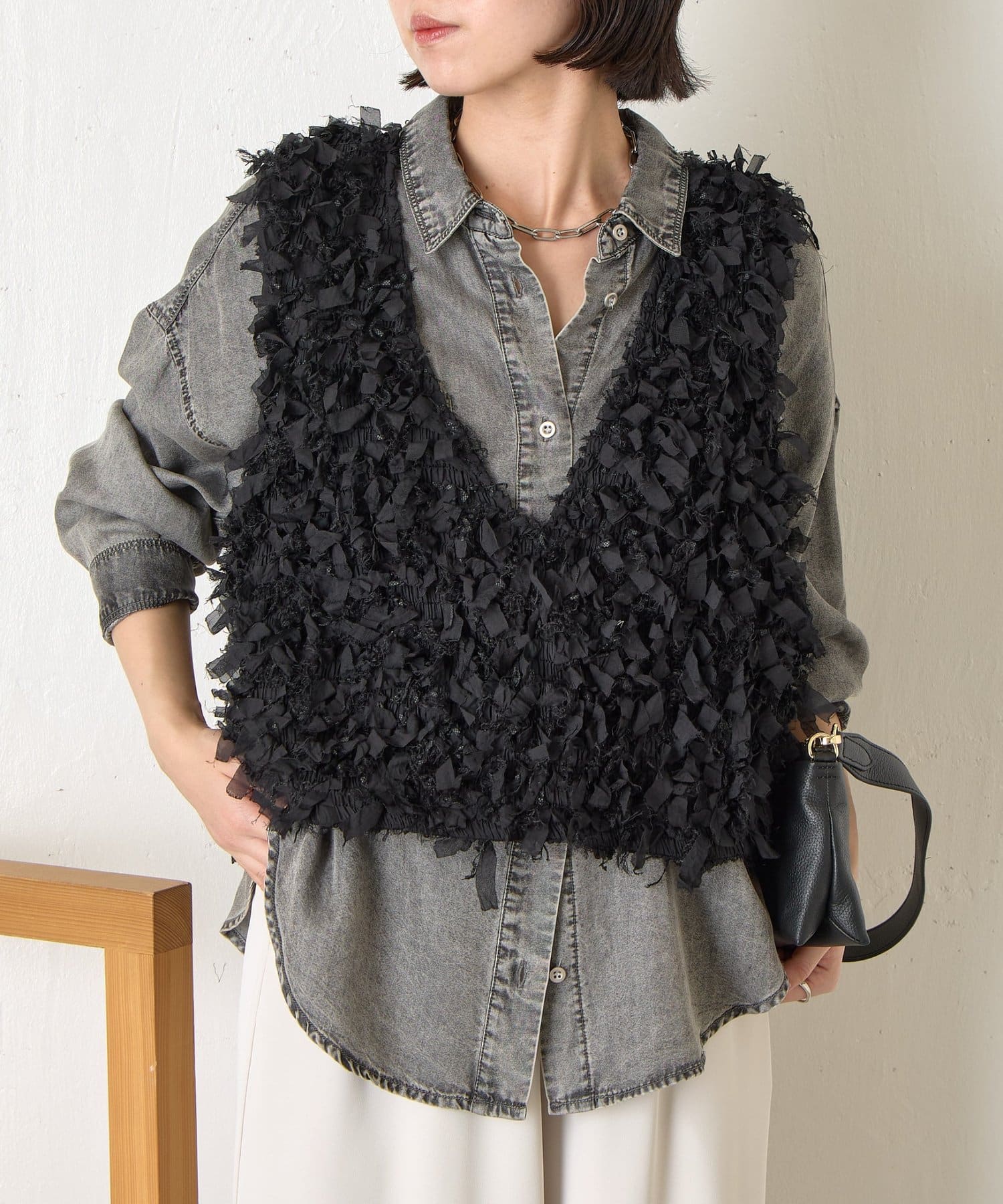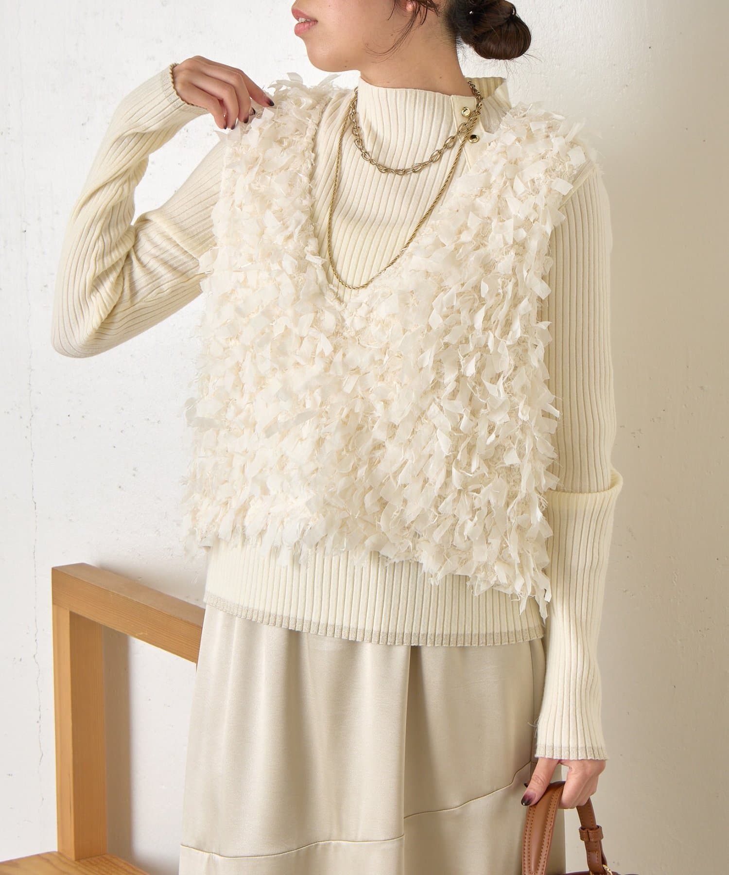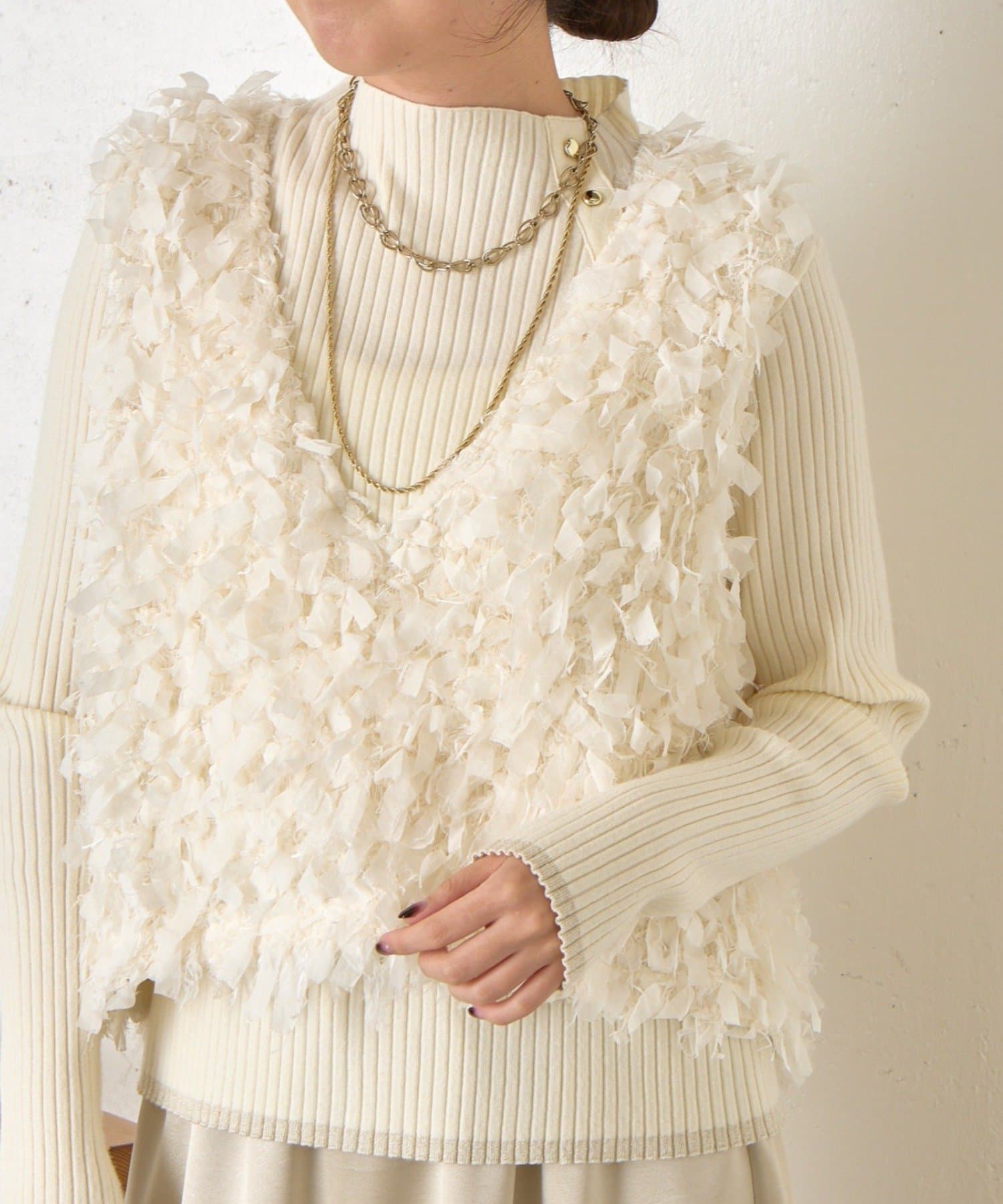 ・トレンド感のある大人のためのリボンフリンジベスト。