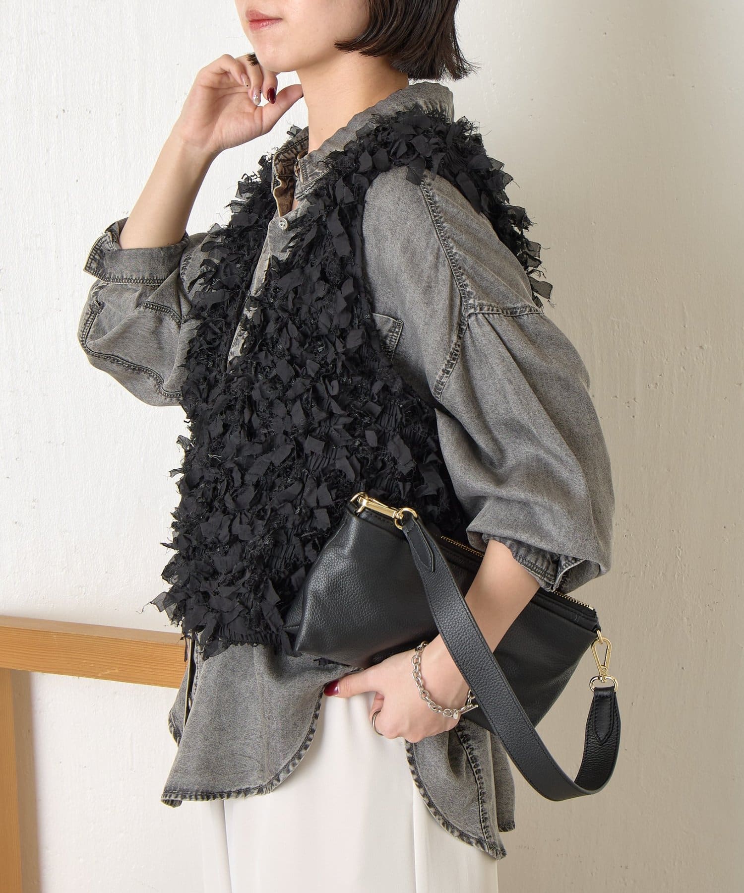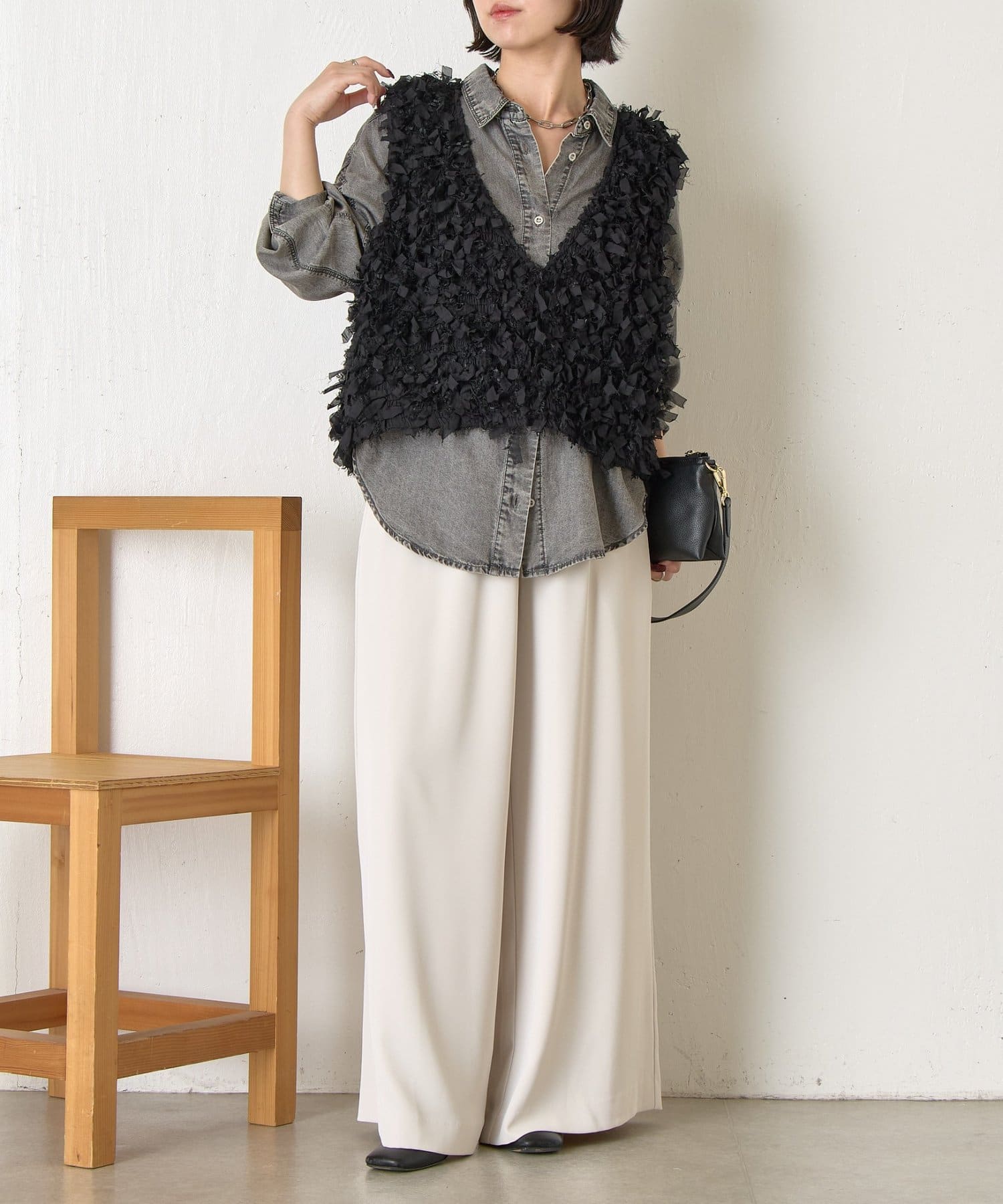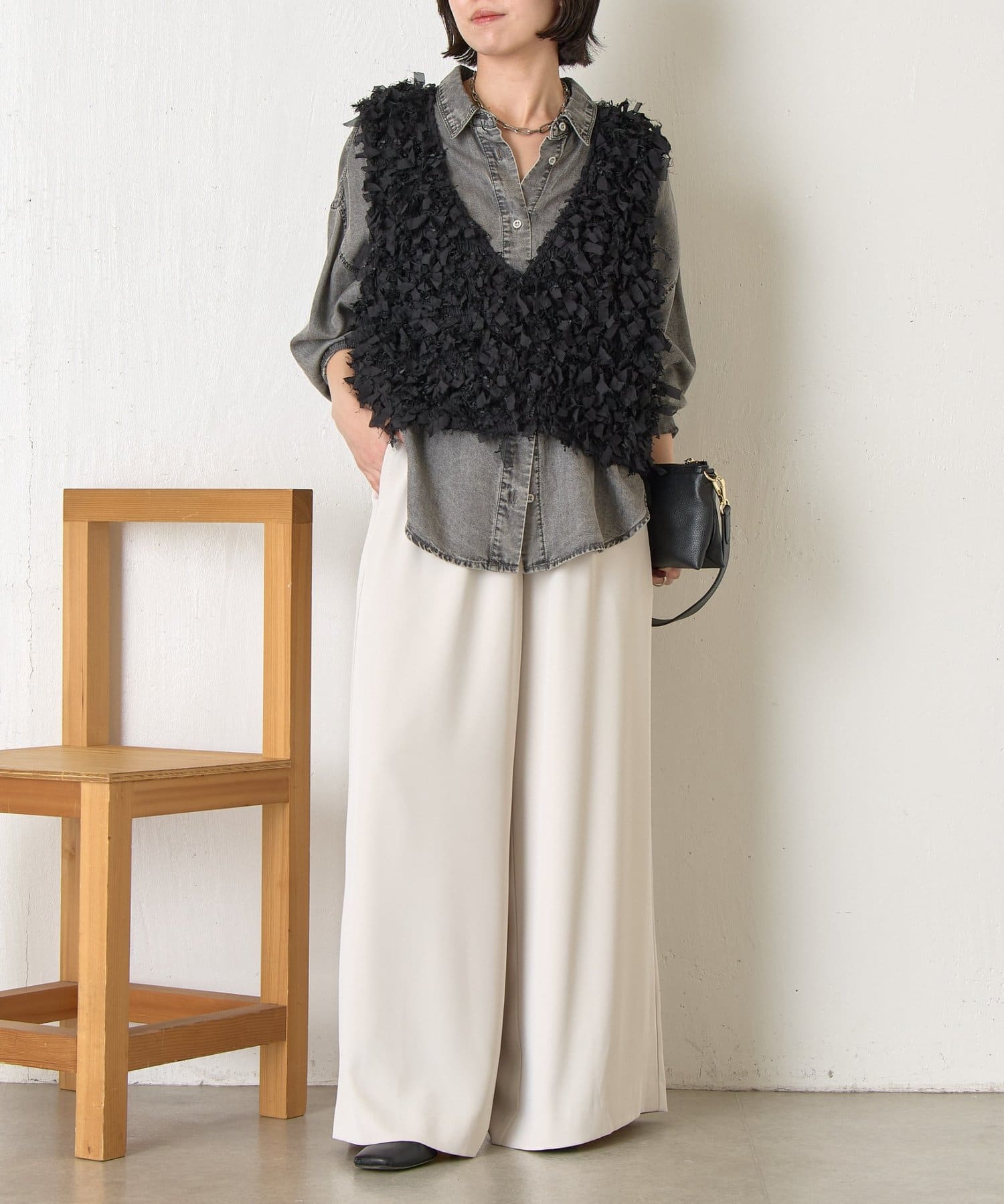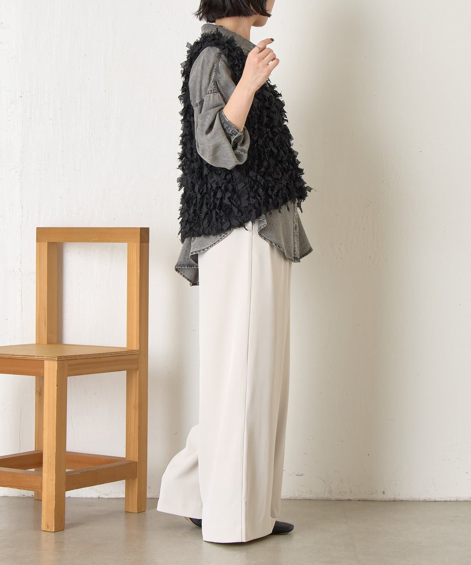 ・トレンド感のある大人のためのリボンフリンジベスト。