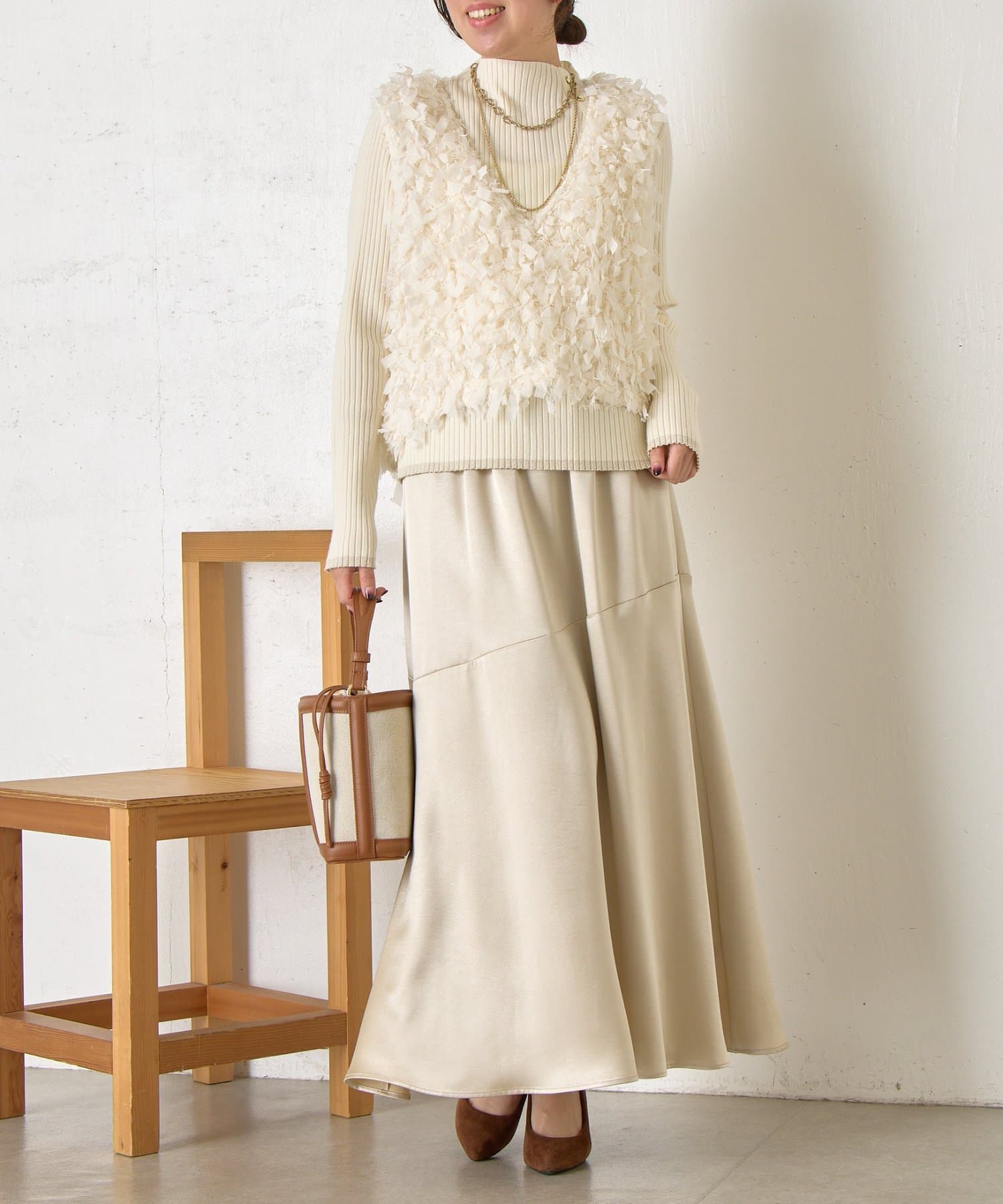 ・ふんわりとした動きのあるデザインと華やかさが視線を惹きつける主役級の一枚。