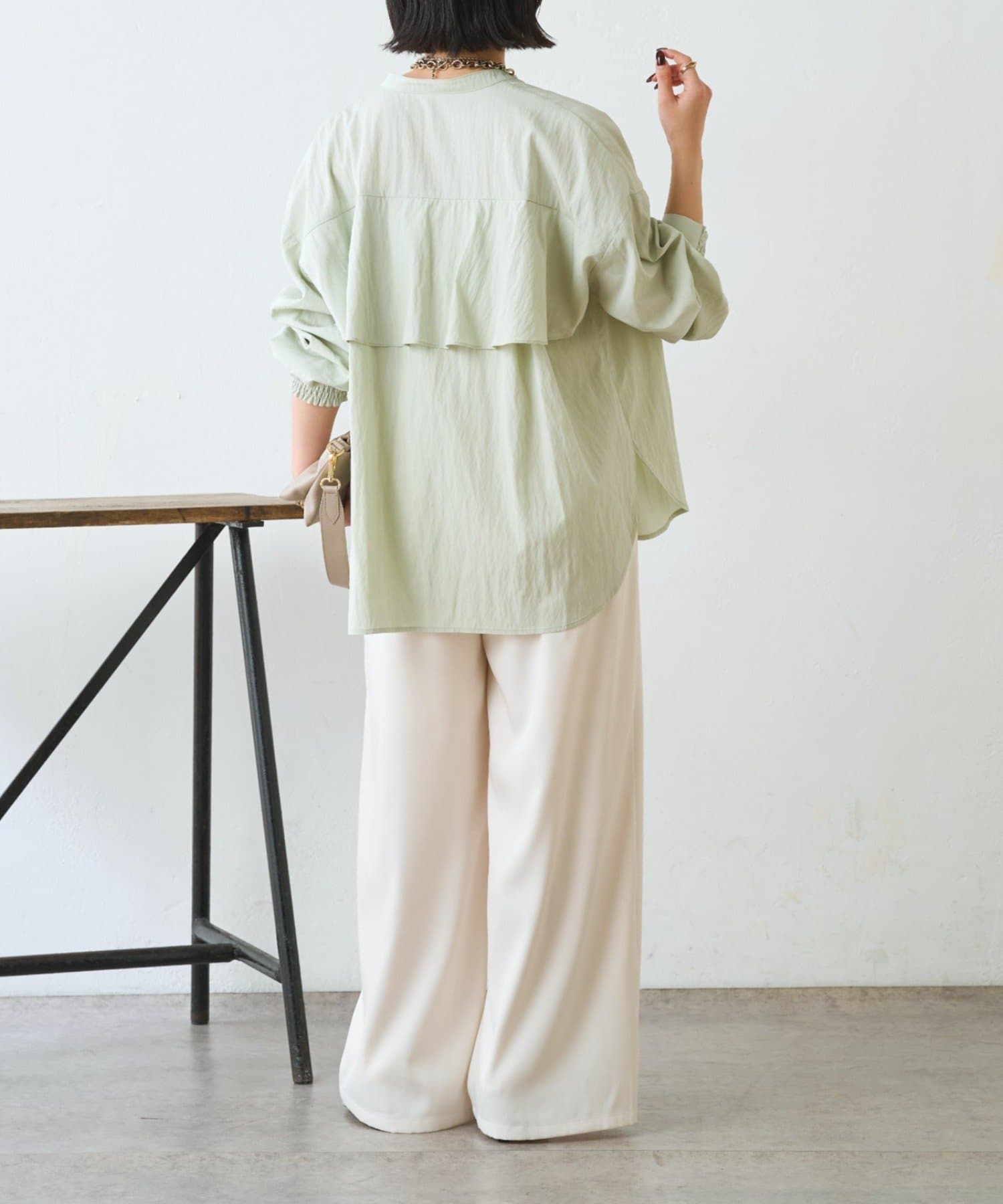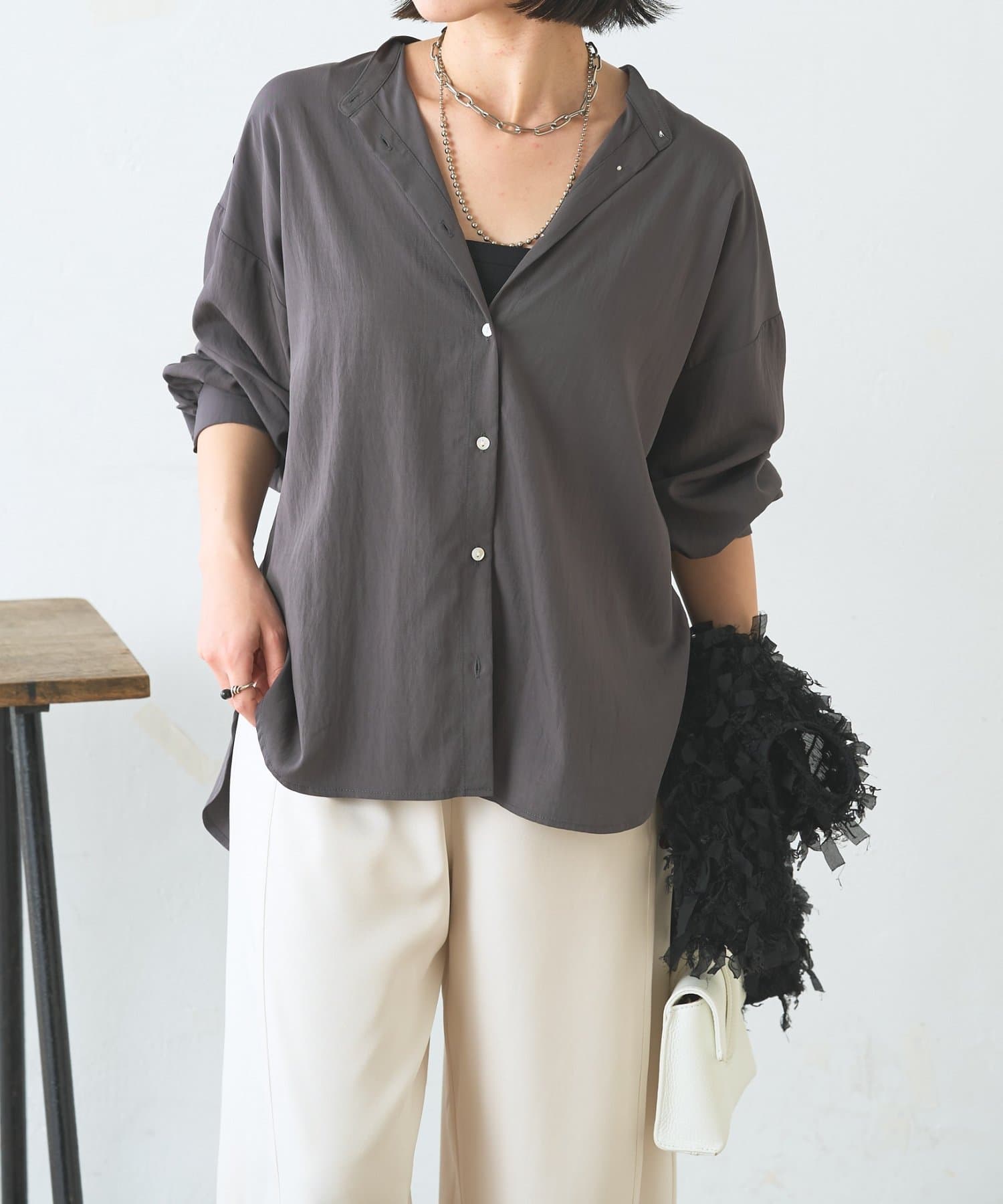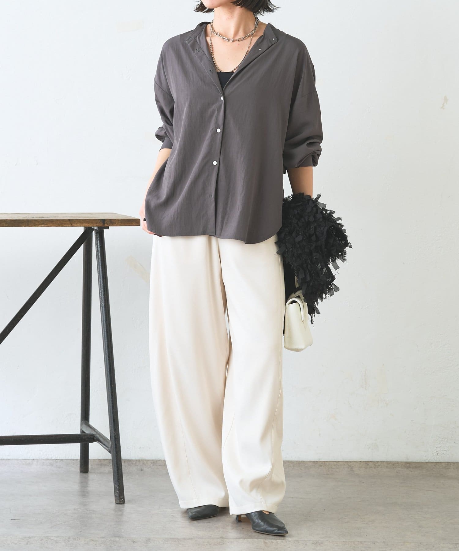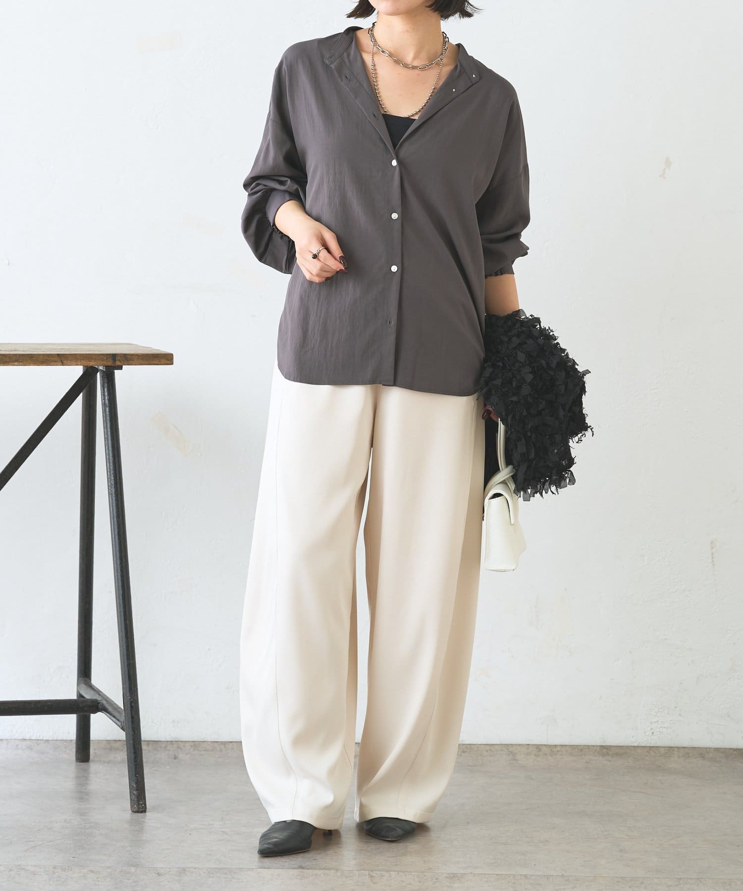 ・程よくとろみのある素材なので、一枚で着映えするアイテムです。