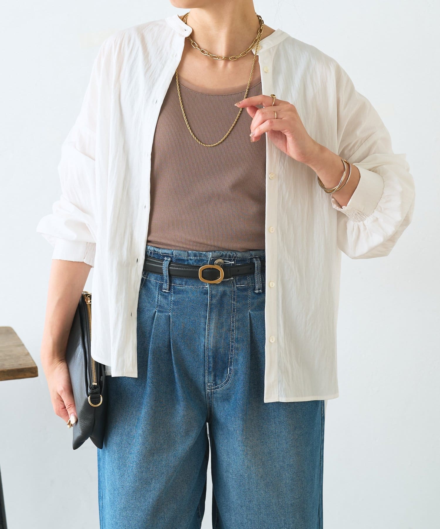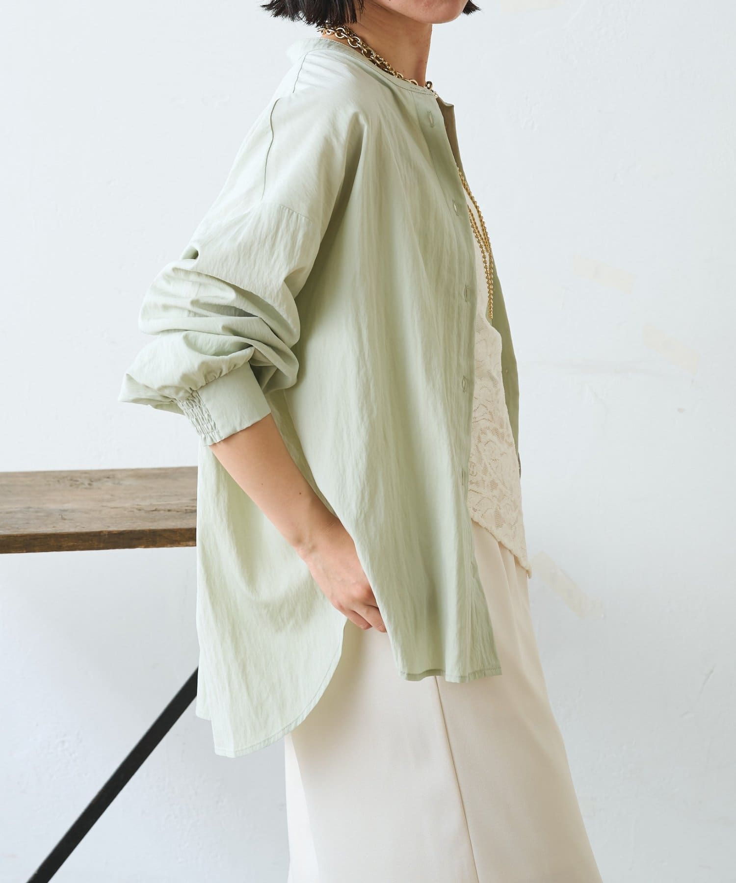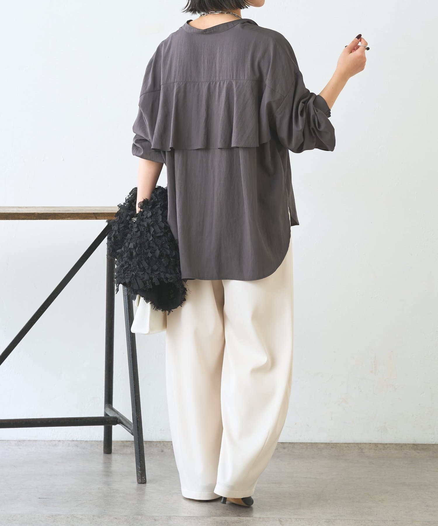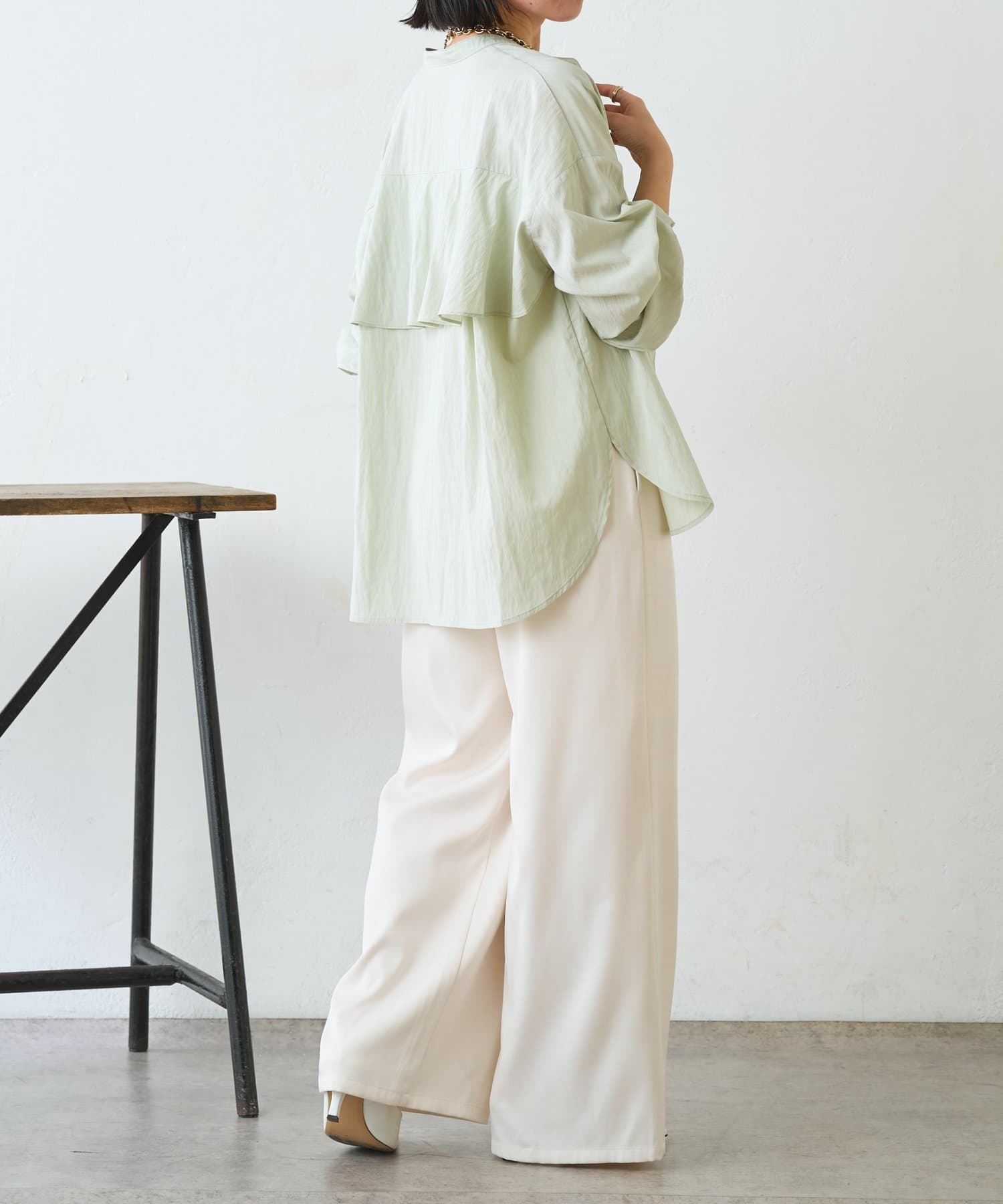 ・程よくとろみのある素材なので、一枚で着映えするアイテムです。