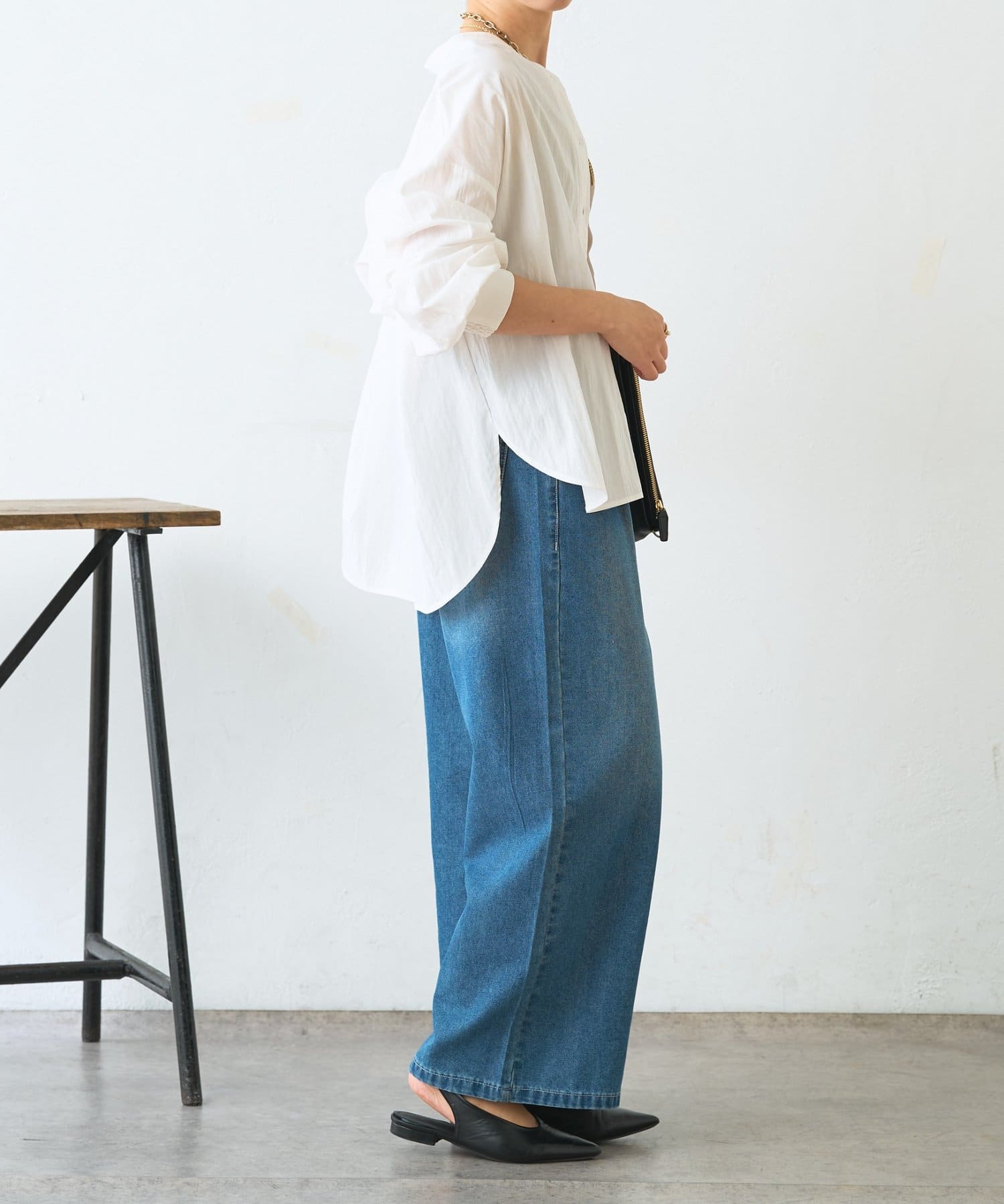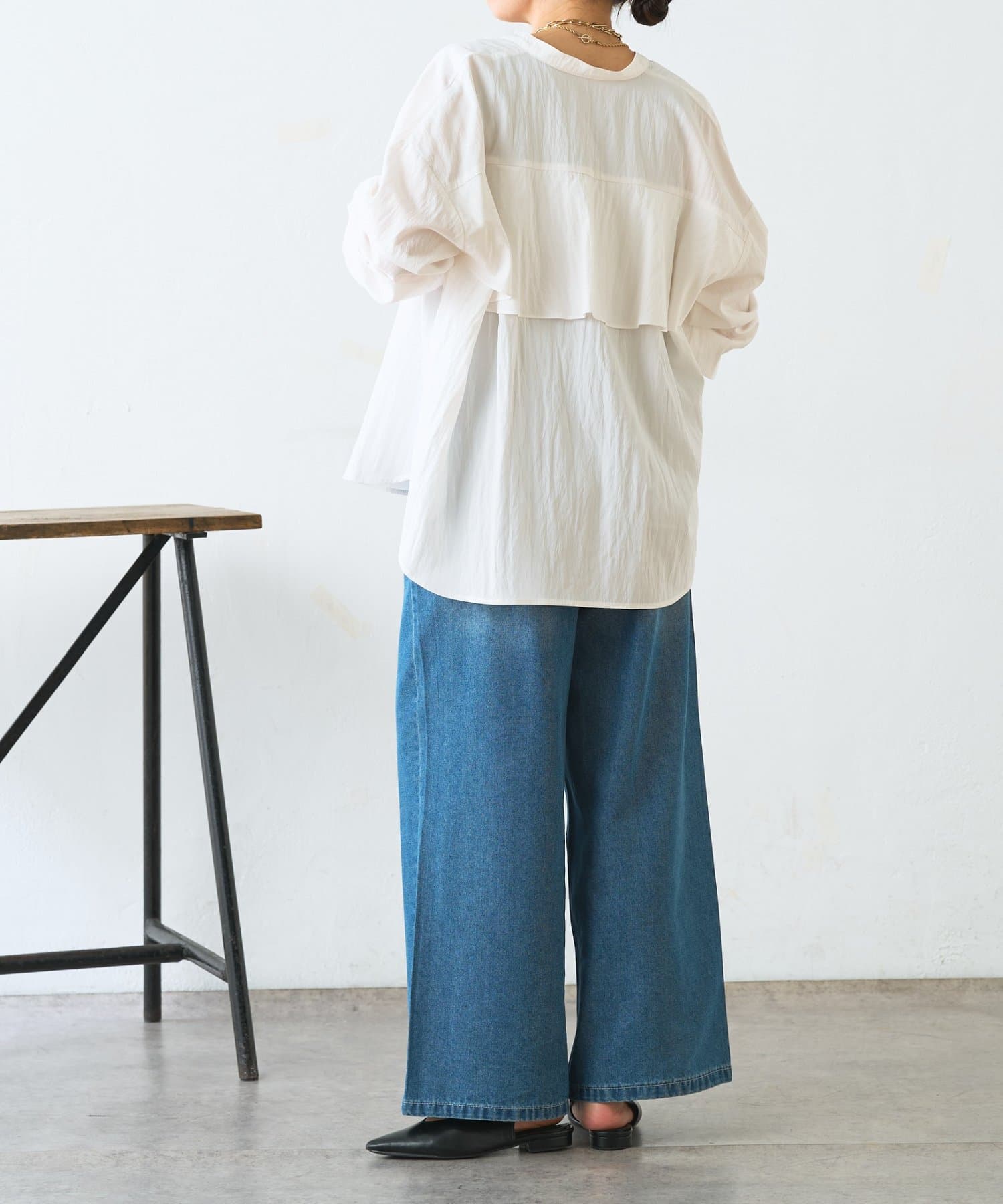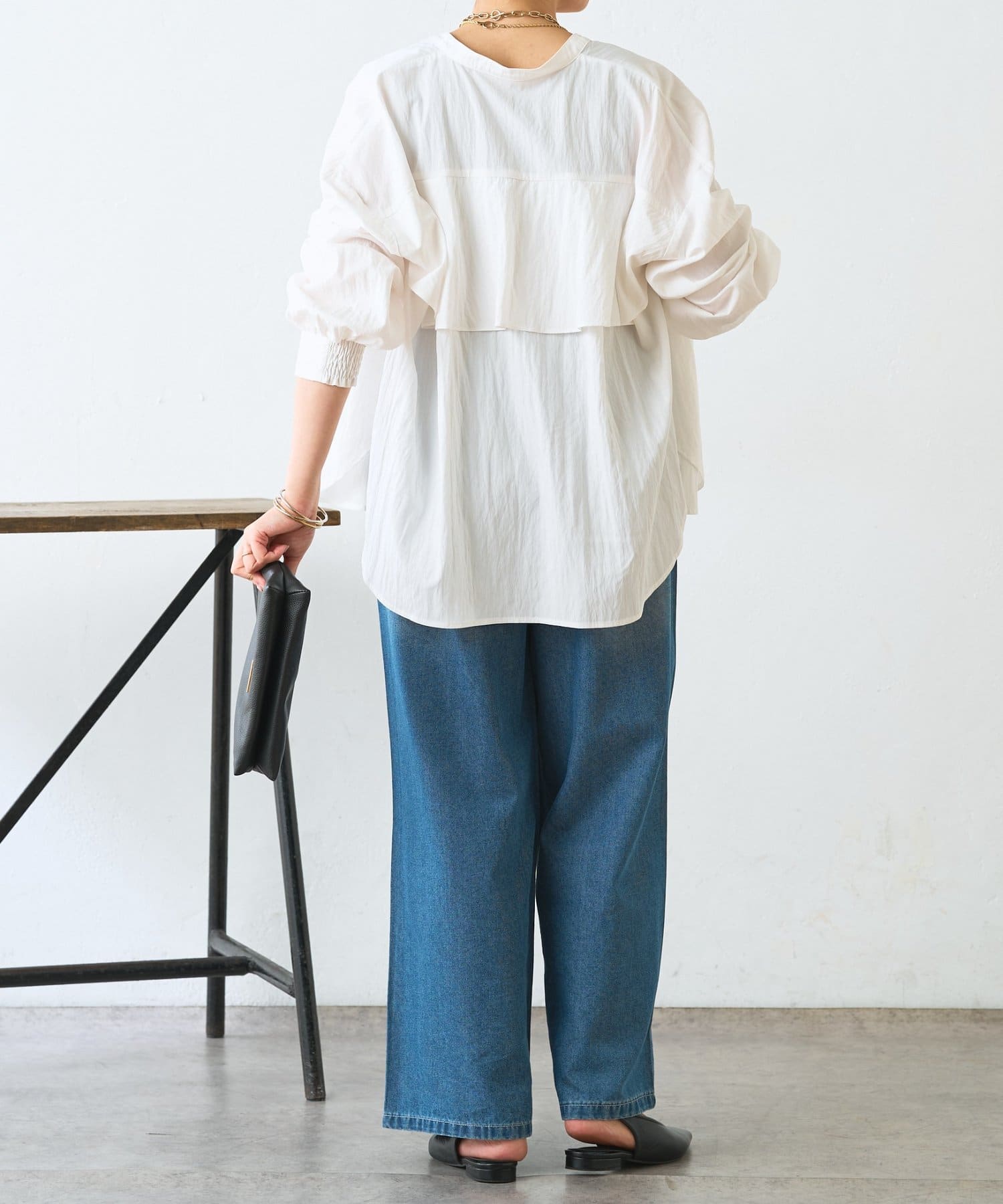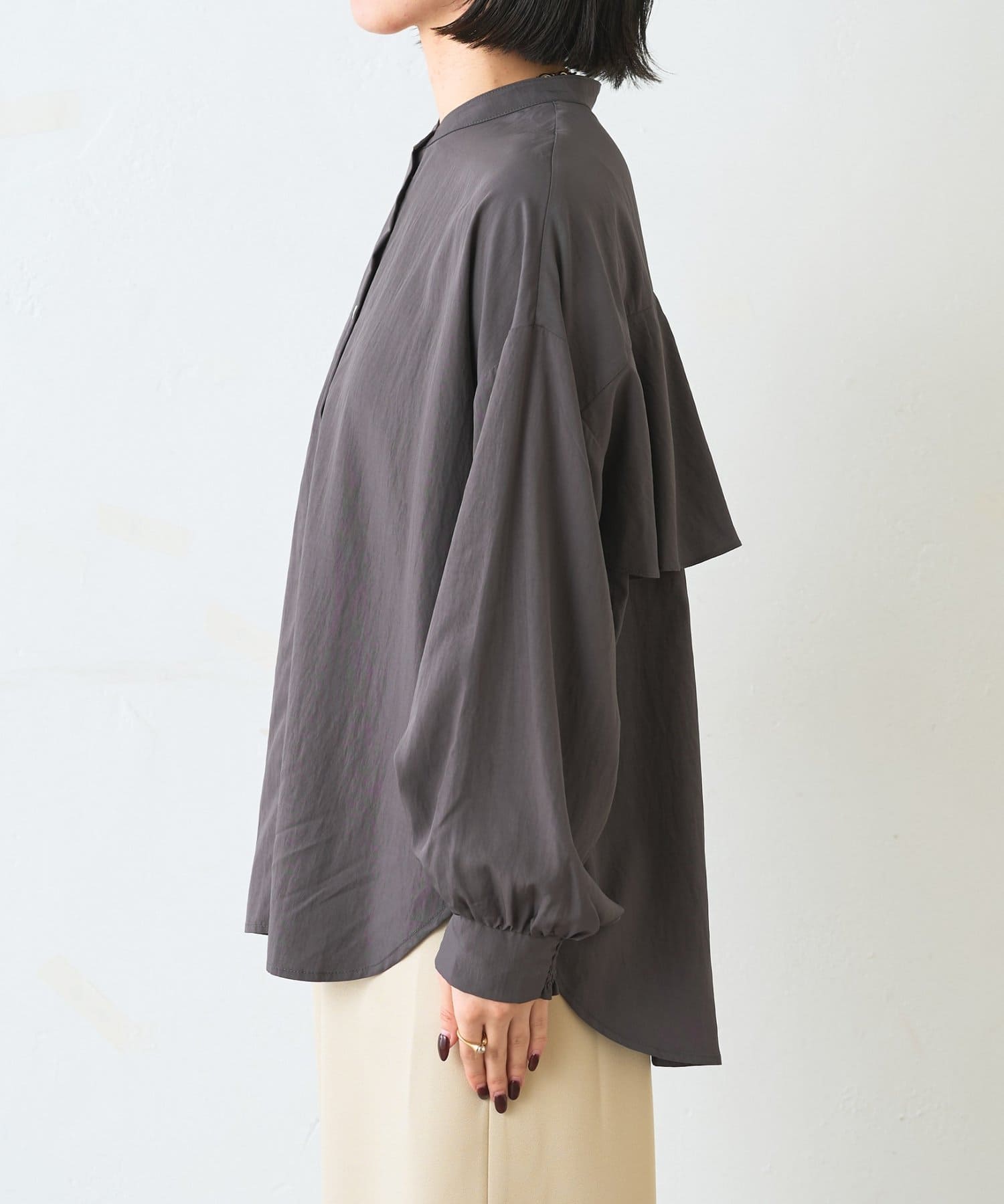 ・程よくとろみのある素材なので、一枚で着映えするアイテムです。
