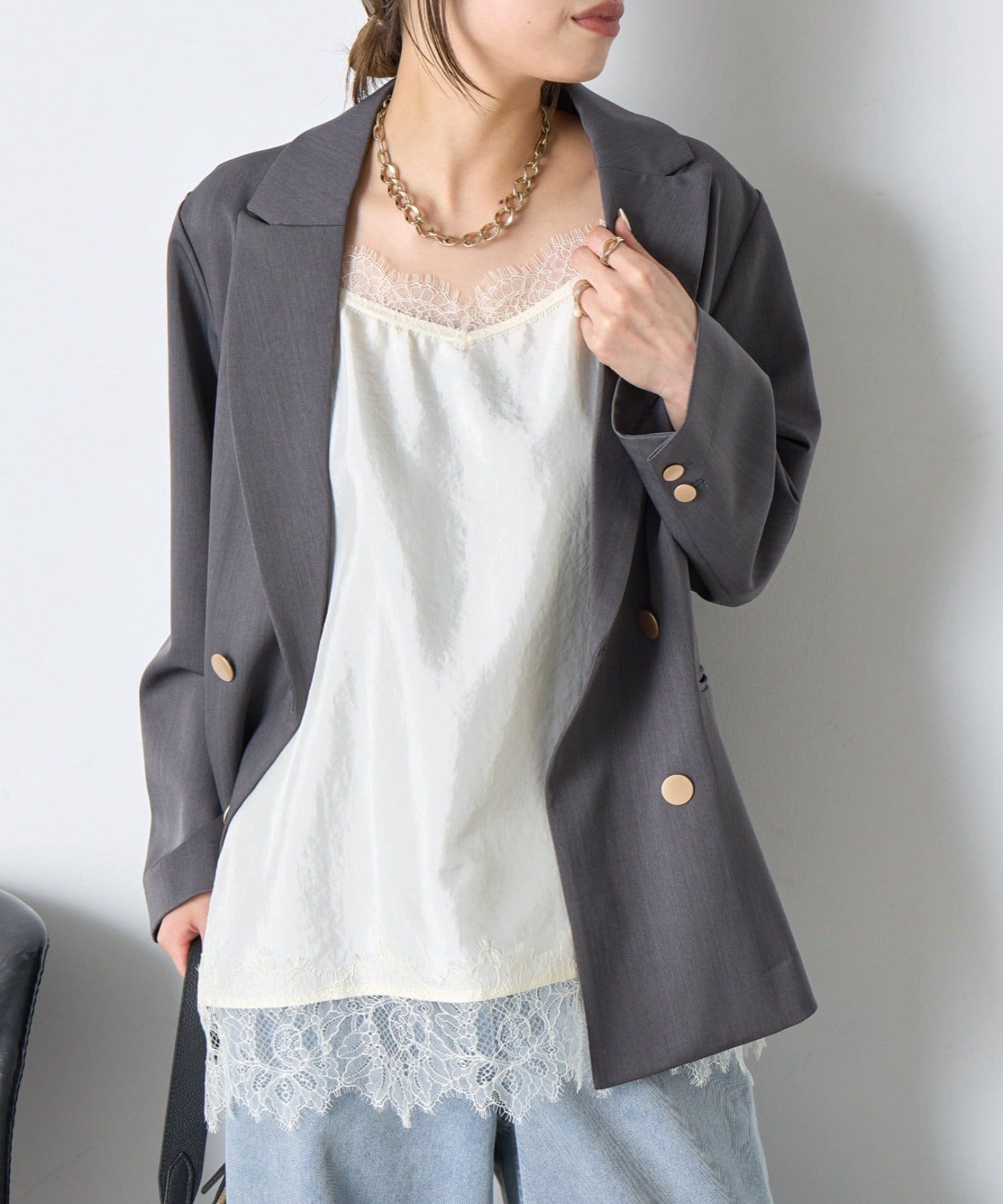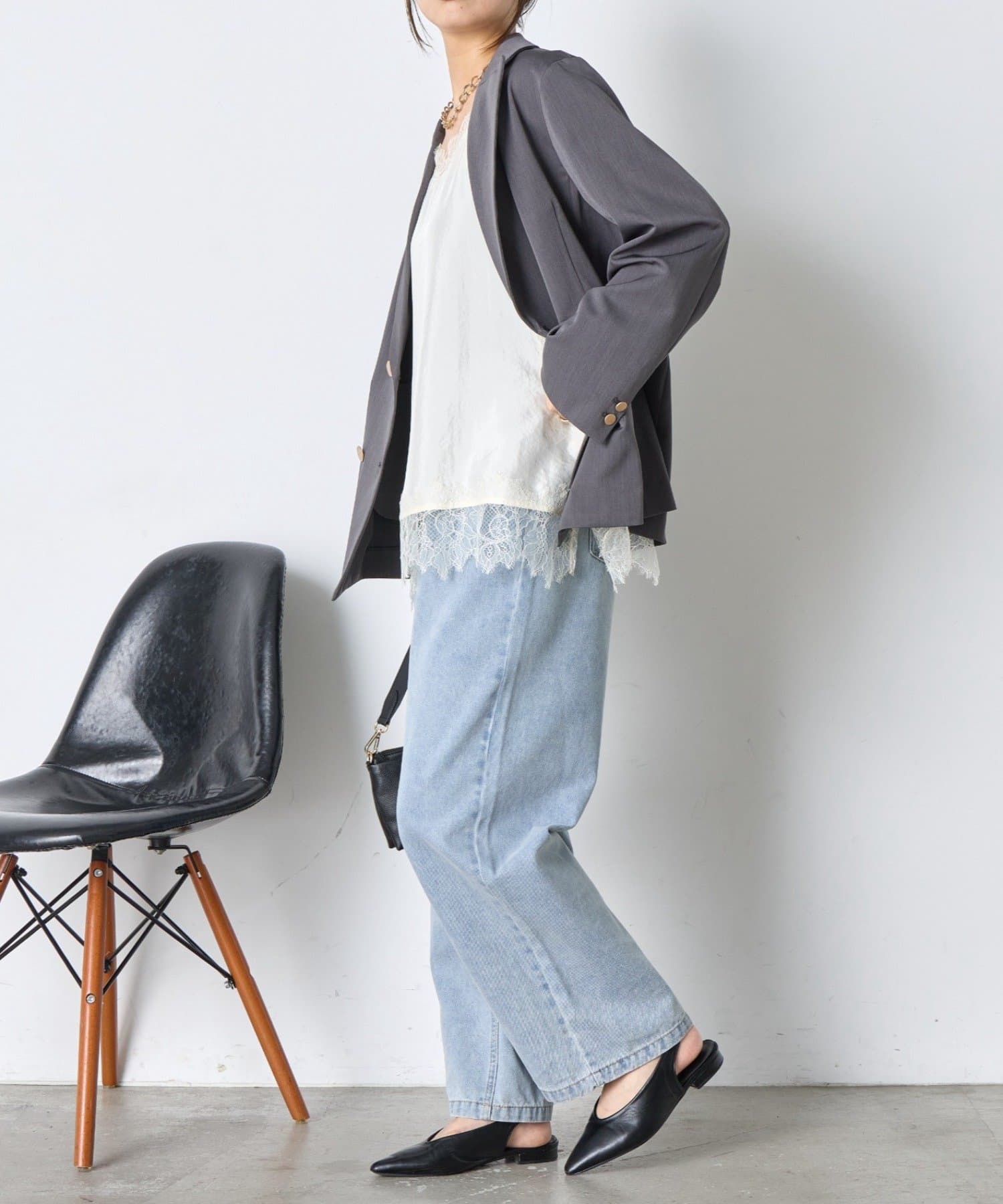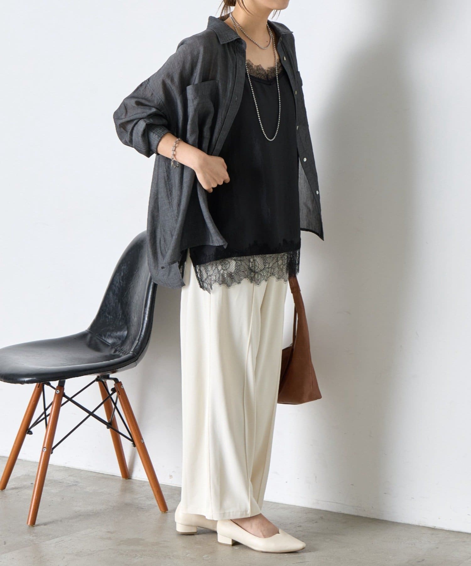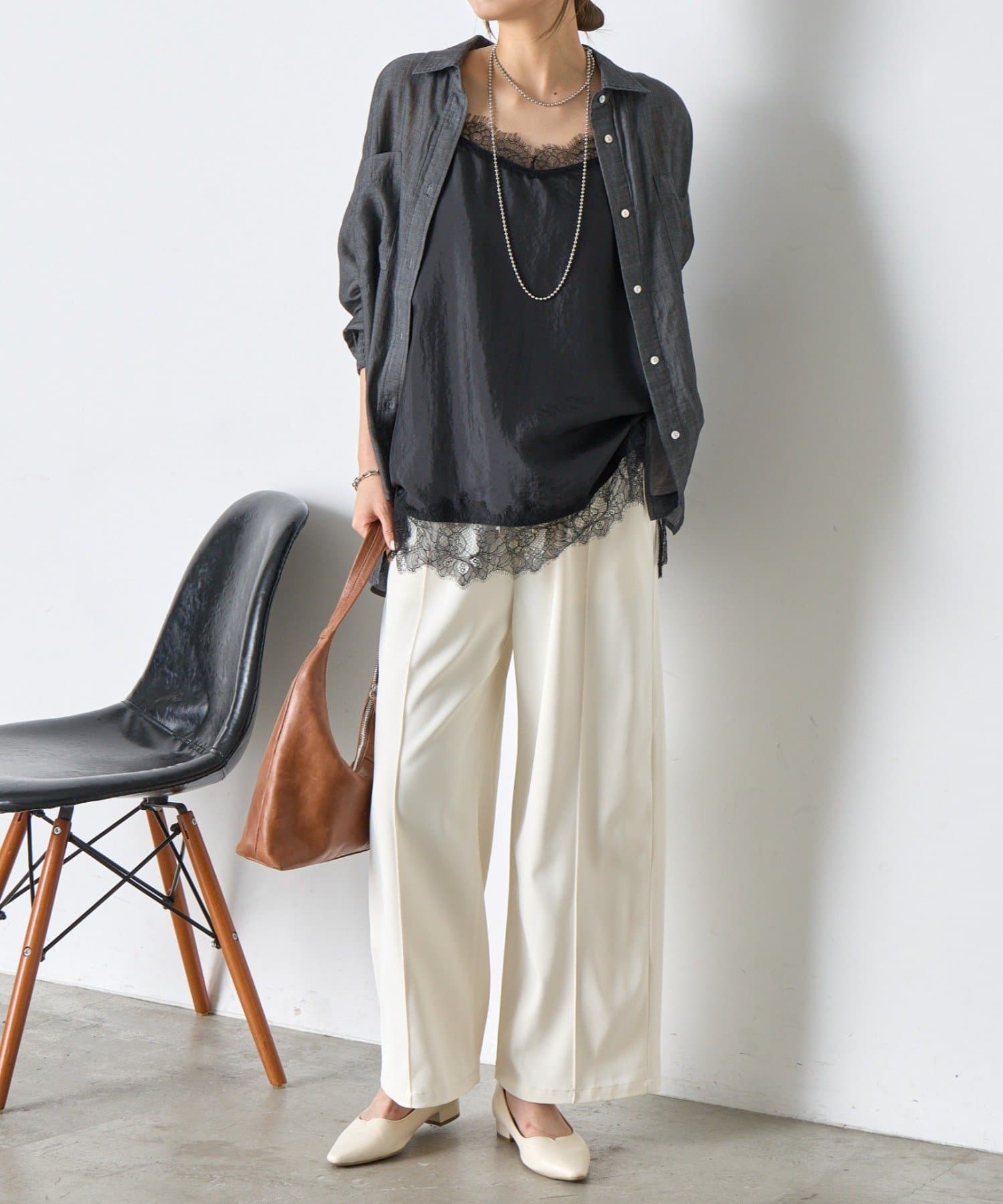 ・デコルテと裾のレースがコーデに抜け感をプラス。