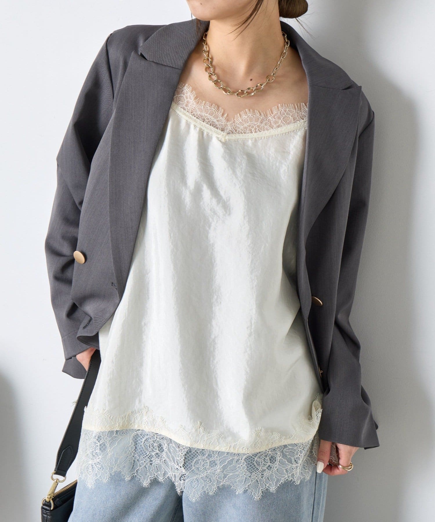 TOP > Jena espace merveilleux > レディース > トップス > シャツ/ブラウス(ボタン) > 【シンプルコーデを格上げ】レースキャミソール
