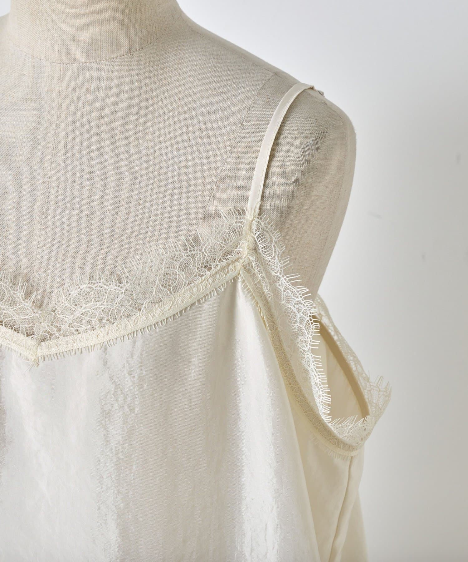・繊細なレースをあしらった、女性らしさ引きたつキャミソール。