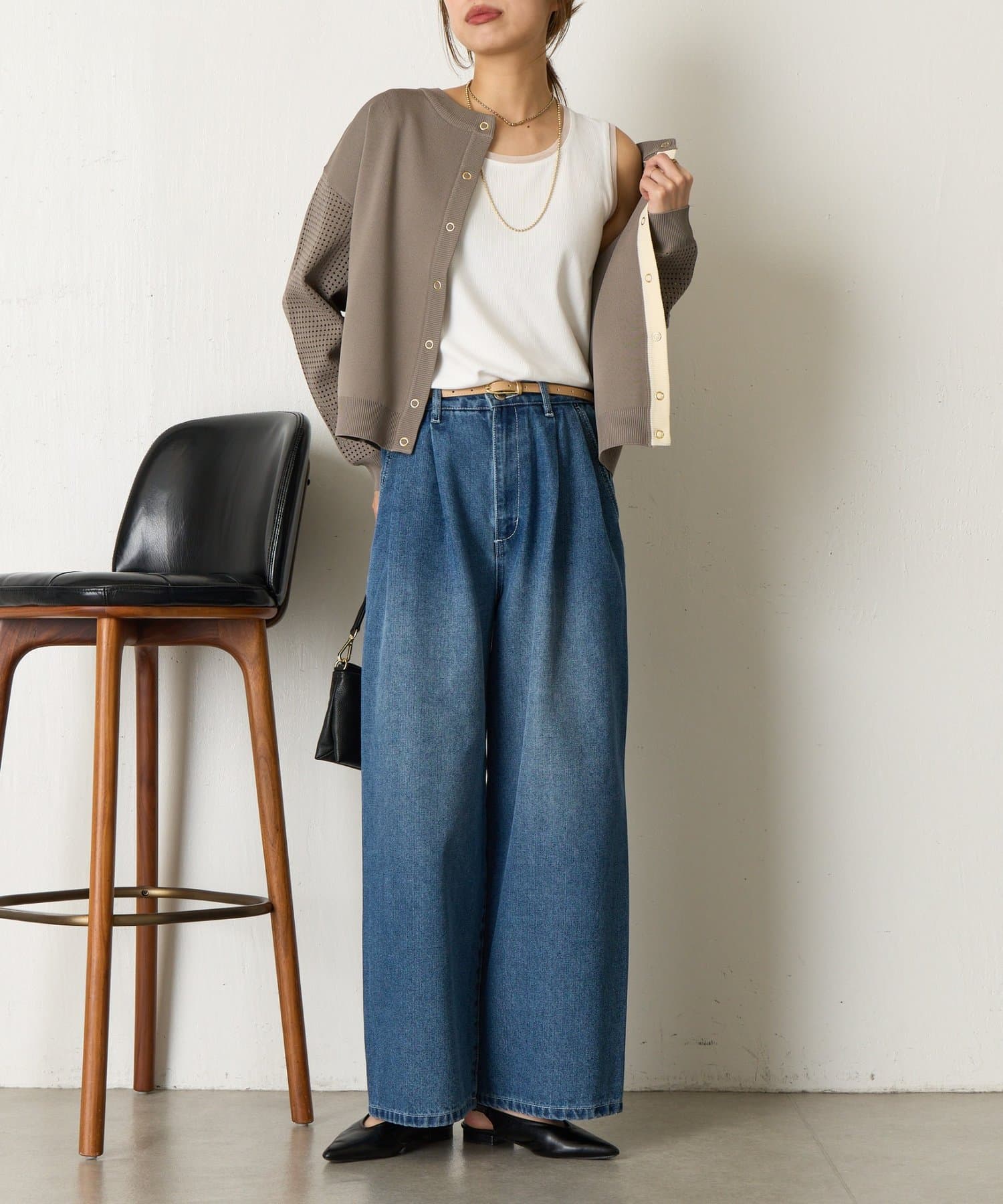 ・生地端のさり気ないチュール生地が可愛らしさを演出するタンクトップ。