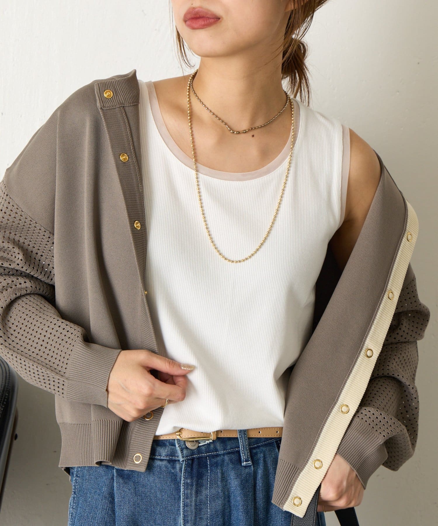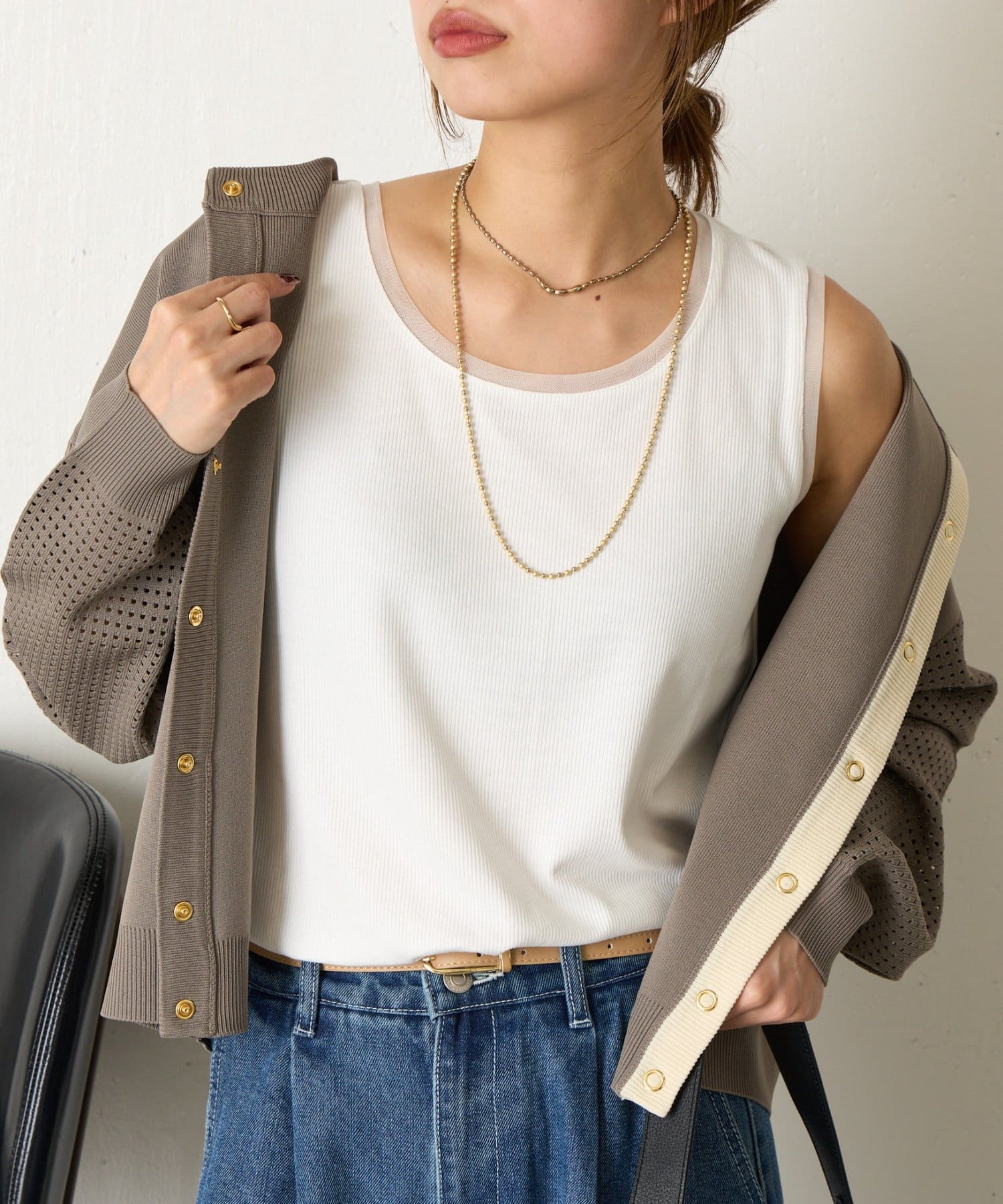 • Jena espace merveilleux(ジェナ エスパスメルヴェイユ) 【ほんのり透けニュアンス】チュール付リブタンク