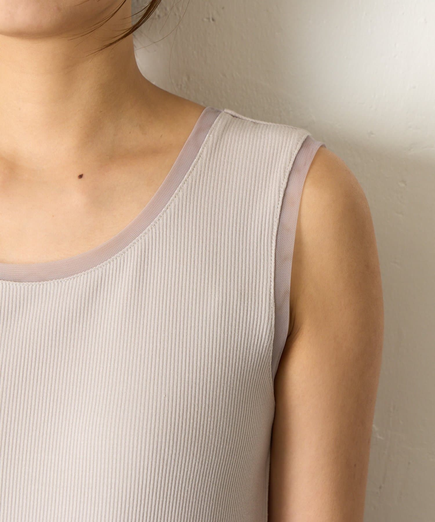 Jena espace merveilleux(ジェナ エスパスメルヴェイユ) 【ほんのり透けニュアンス】チュール付リブタンク