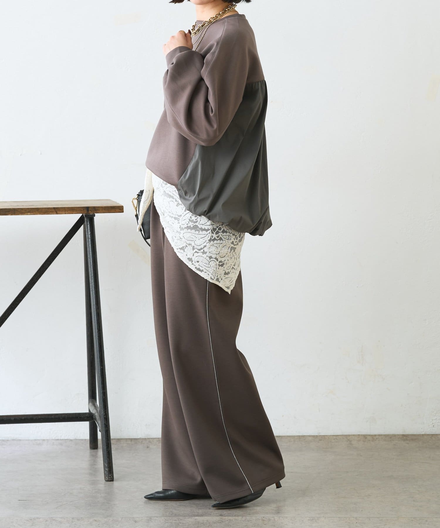 ・ふんわりとしたシルエットが女性らしい印象に。