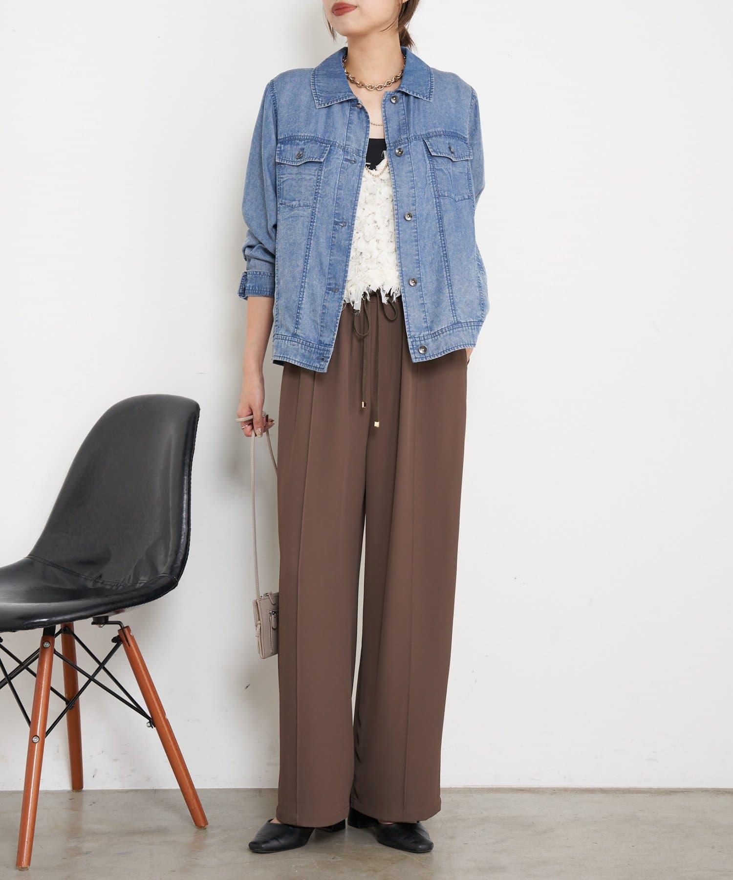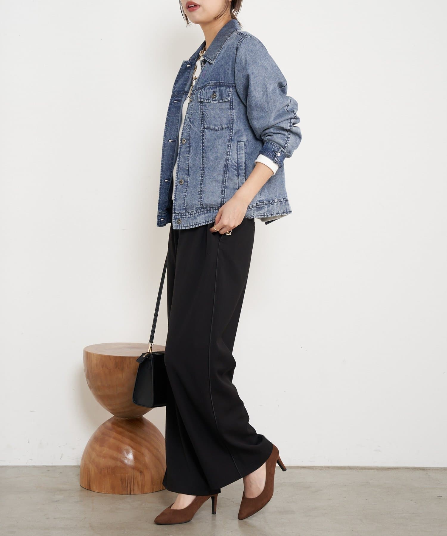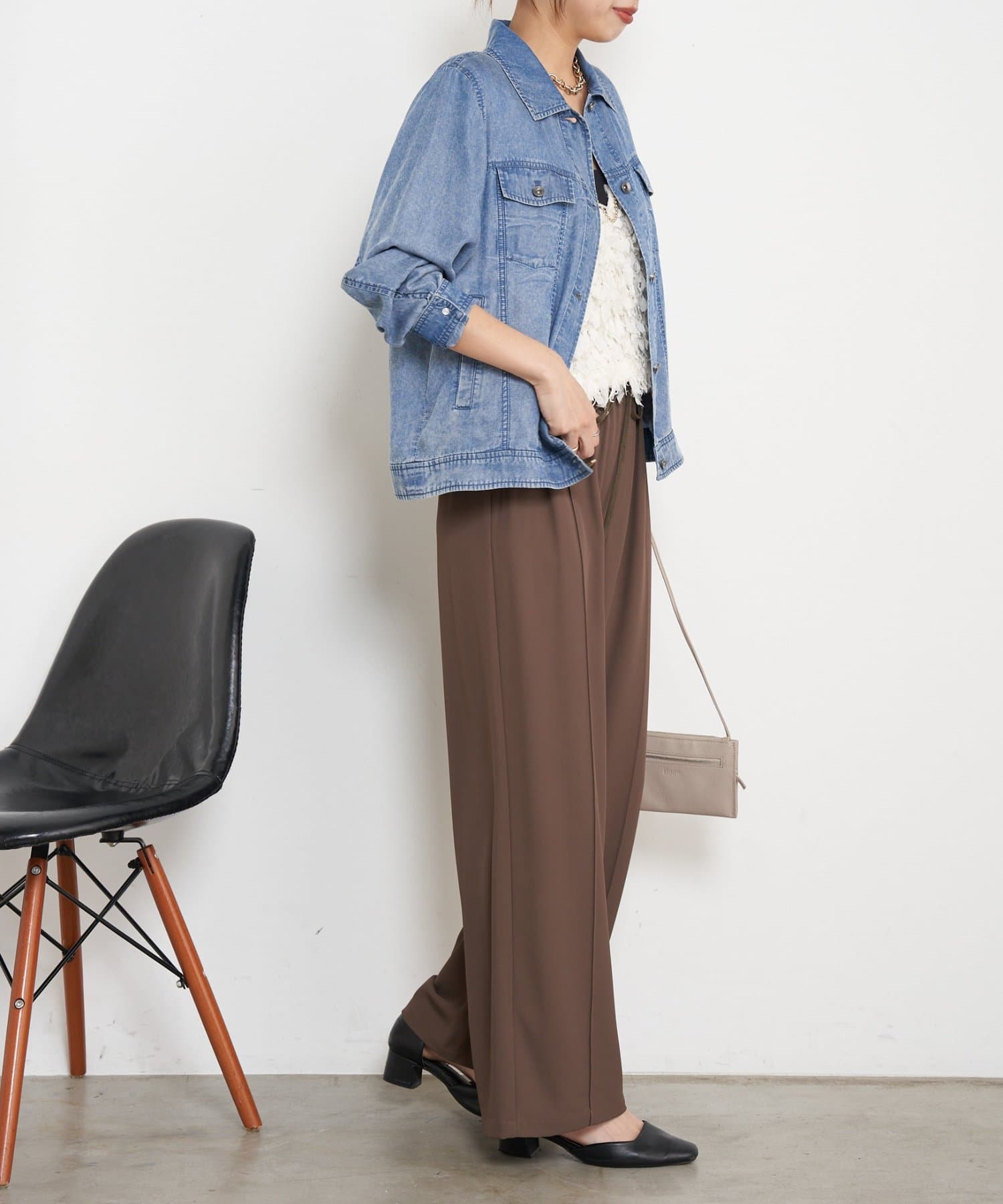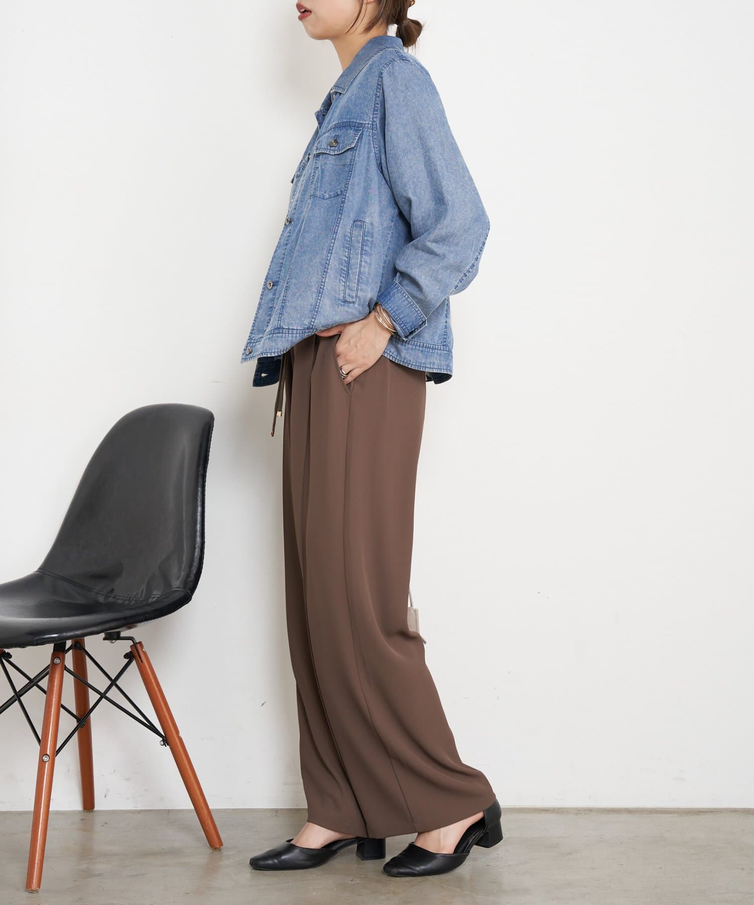 ・程よい光沢感と落ち感がカジュアル過ぎず、大人の抜け感を演出。