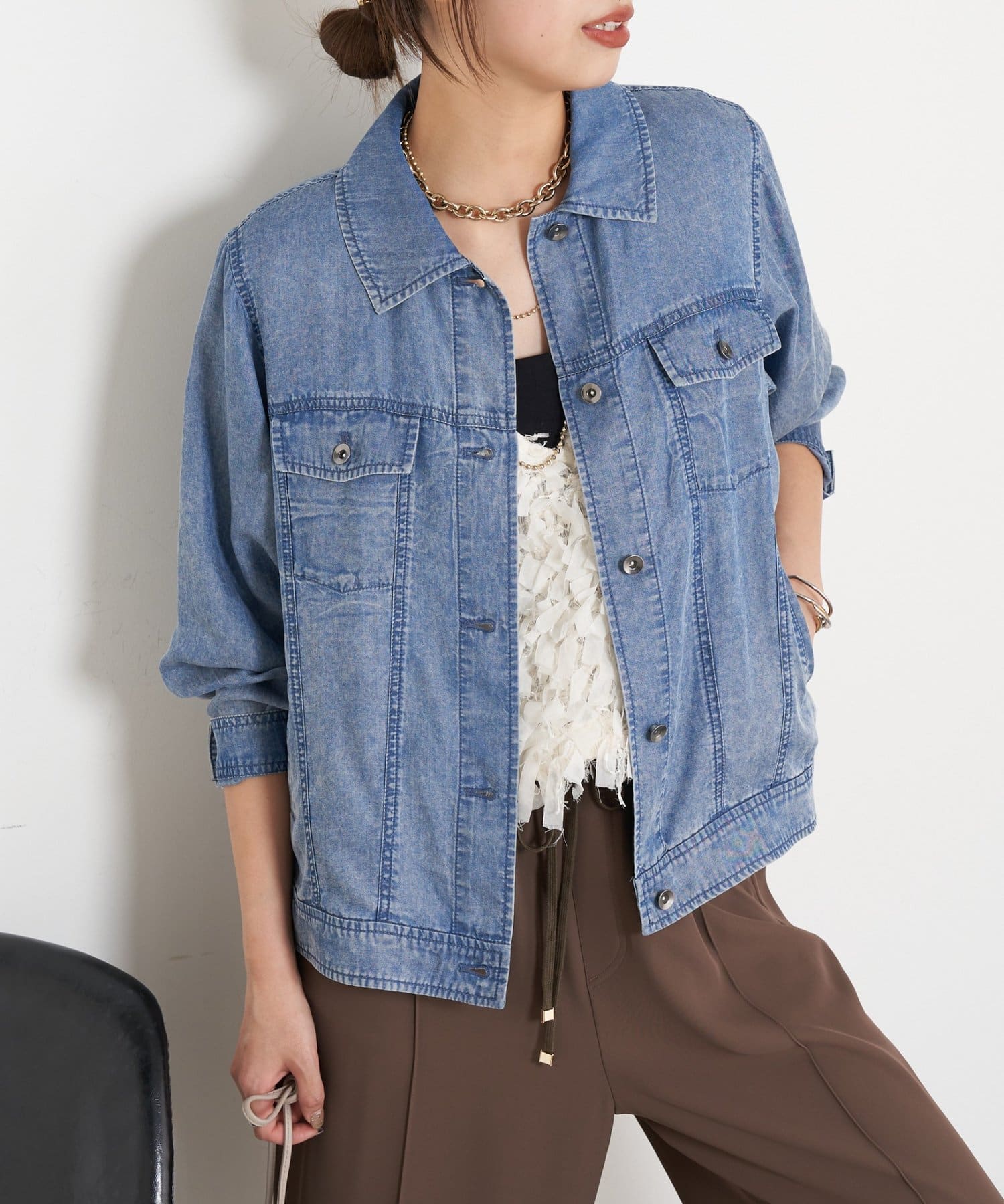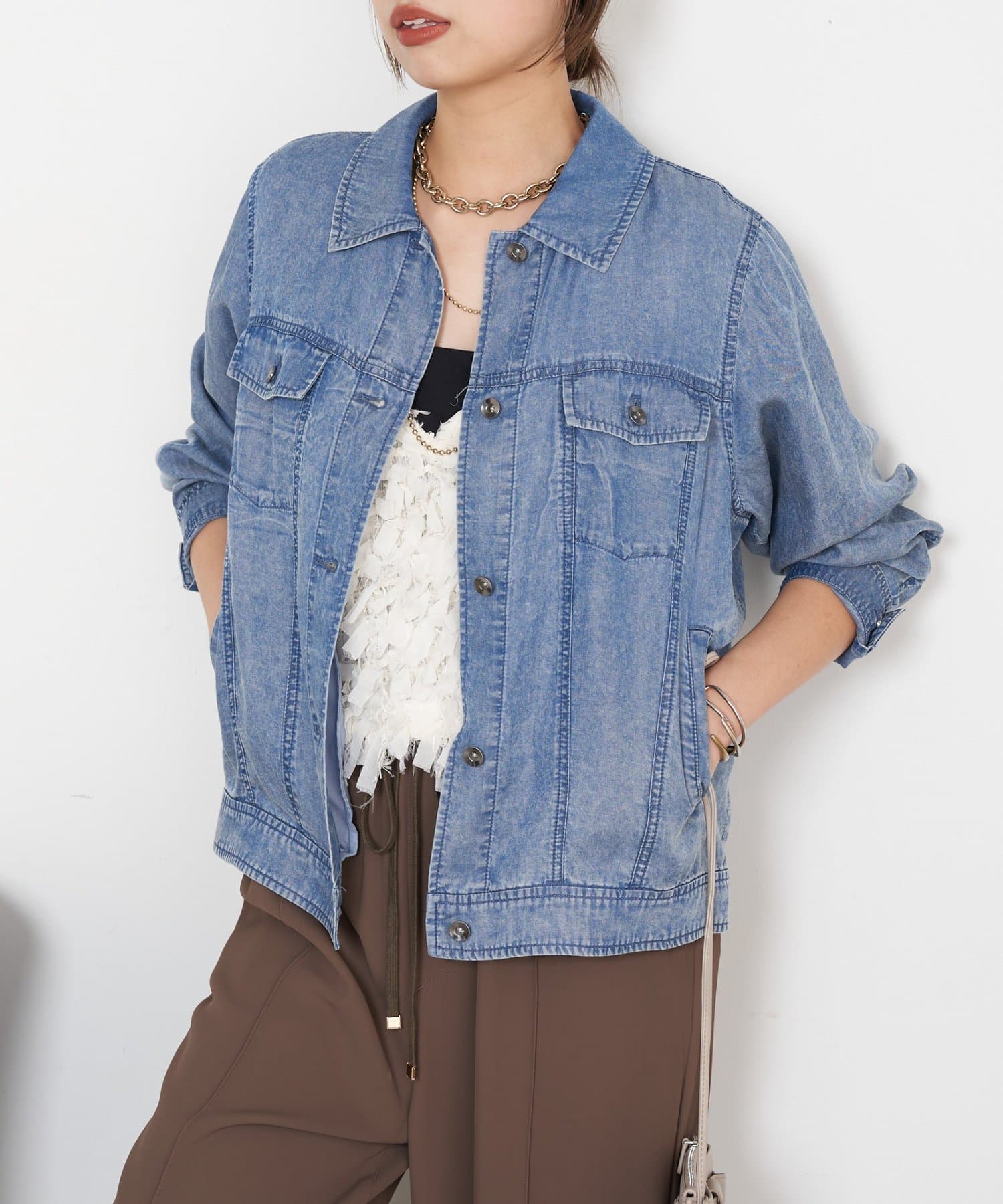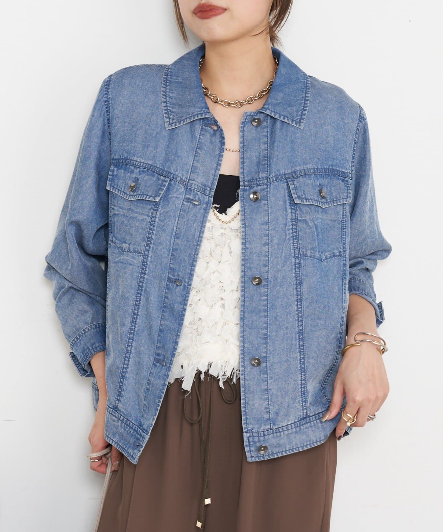 • Jena espace merveilleux(ジェナ エスパスメルヴェイユ) 【やわらかく羽織るデニム】テンセルデニムステンジャケット