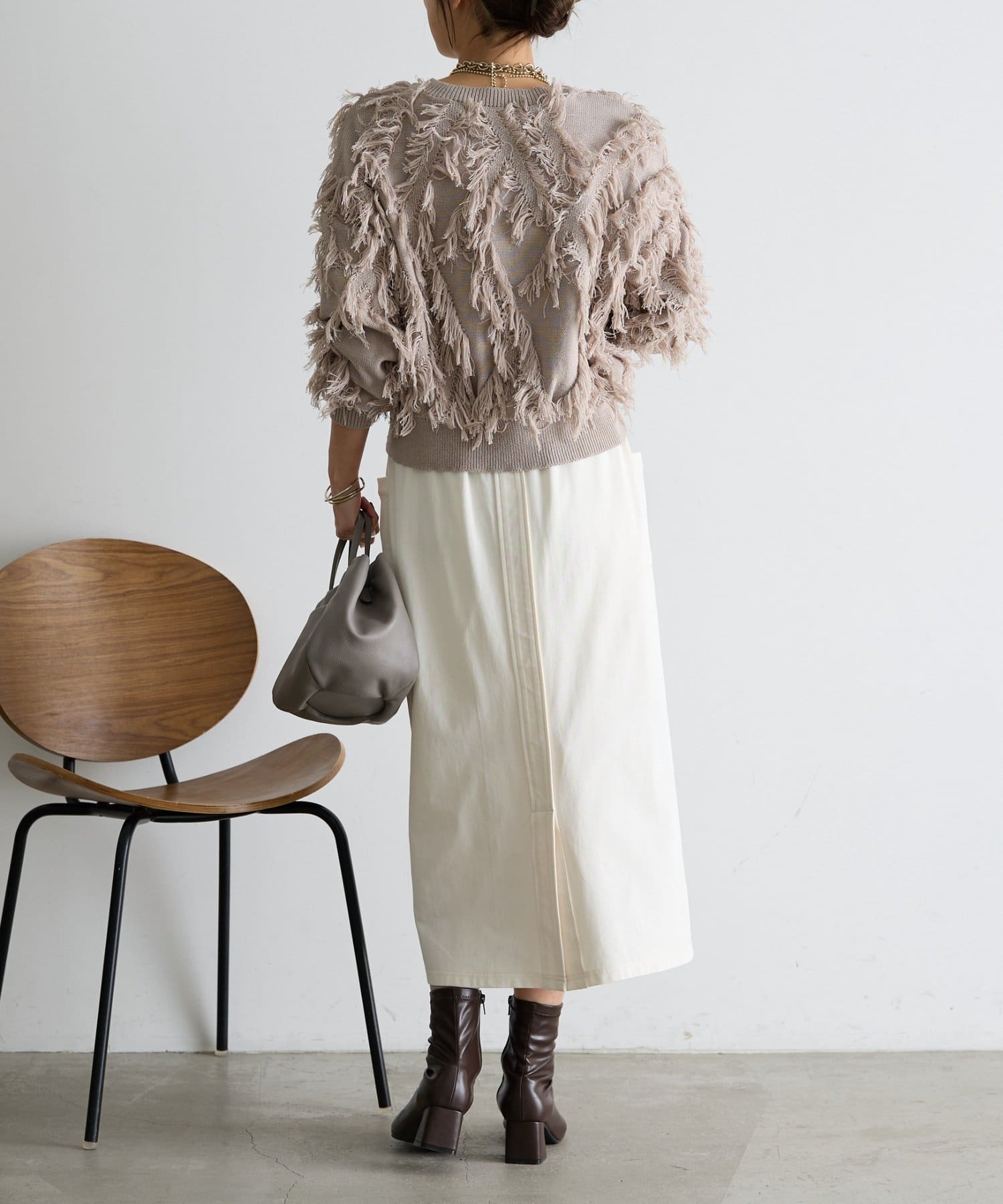 ・縦のラインを強調してスタイルアップが叶うナロースカート。