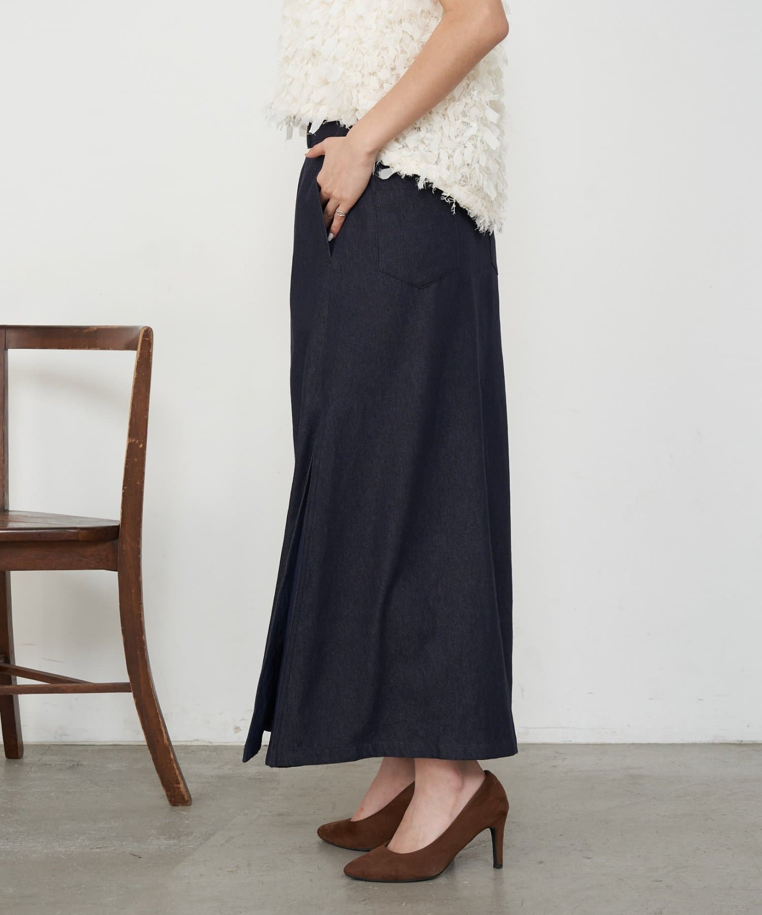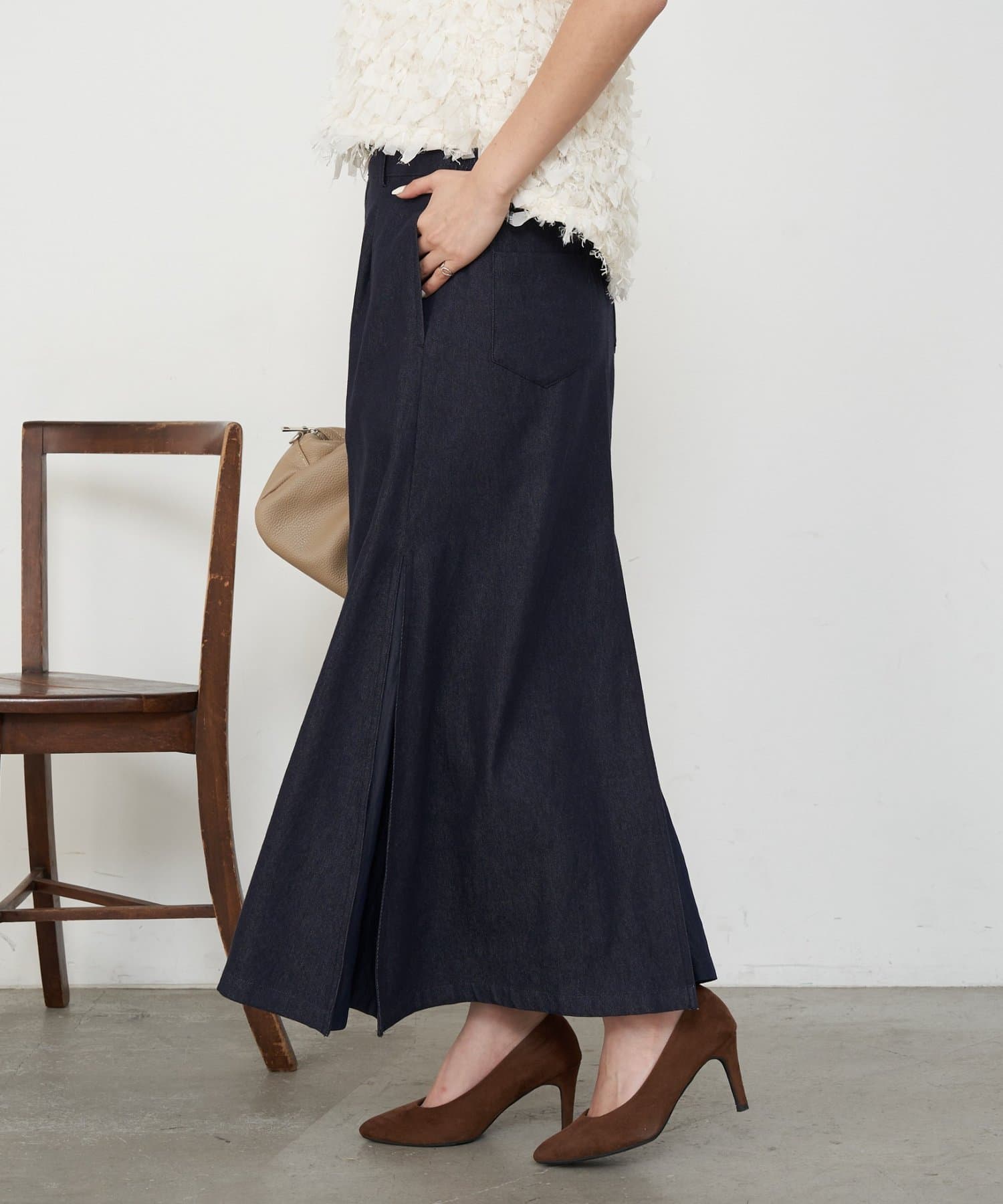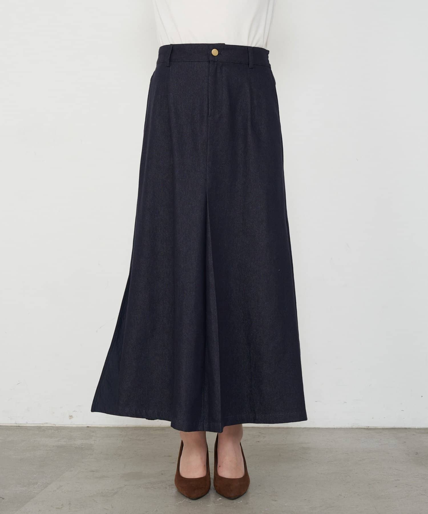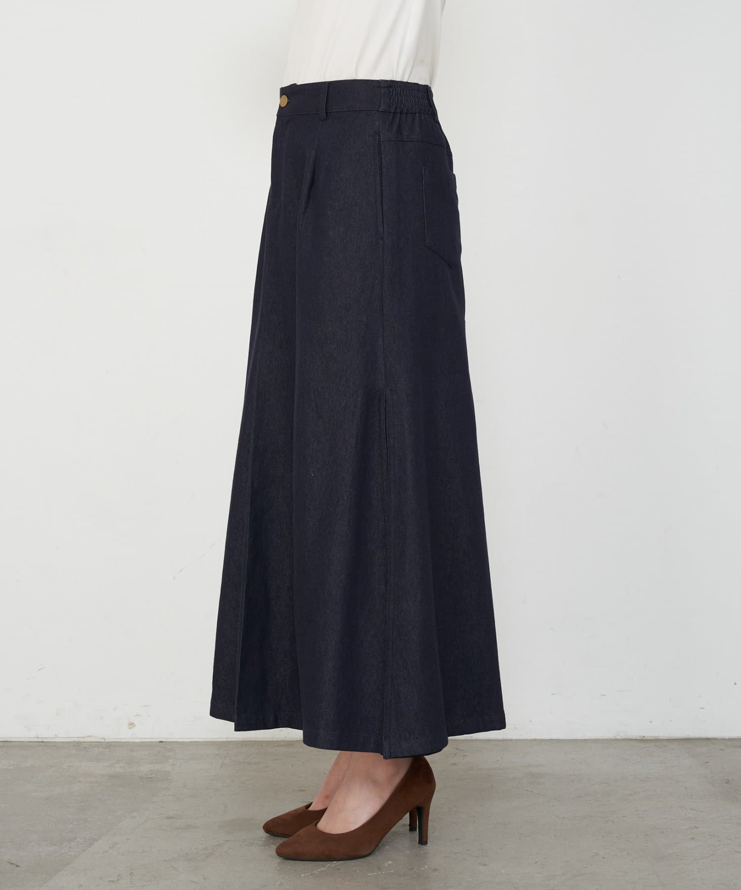 ・カジュアルなイメージの強いデニム素材を、上品なフレアシルエットで女性らしく昇華させたロングスカート。