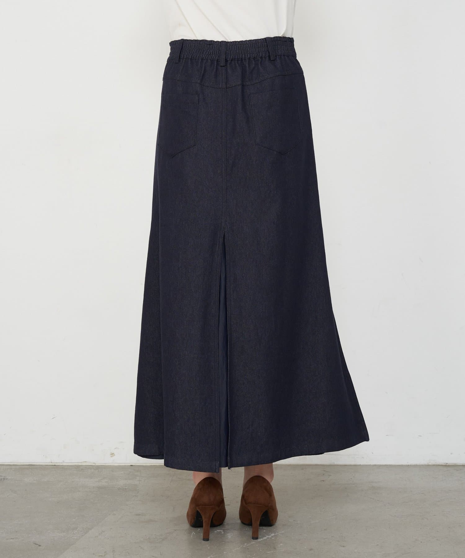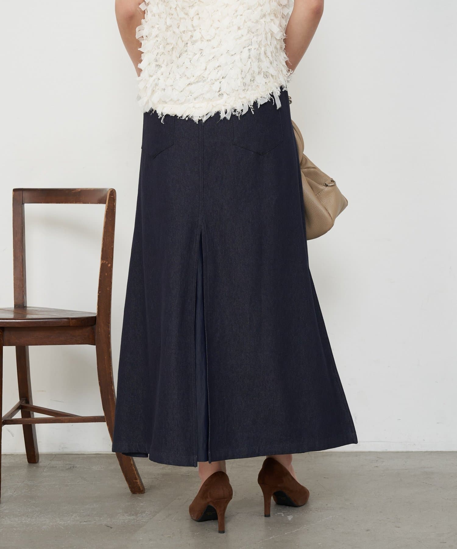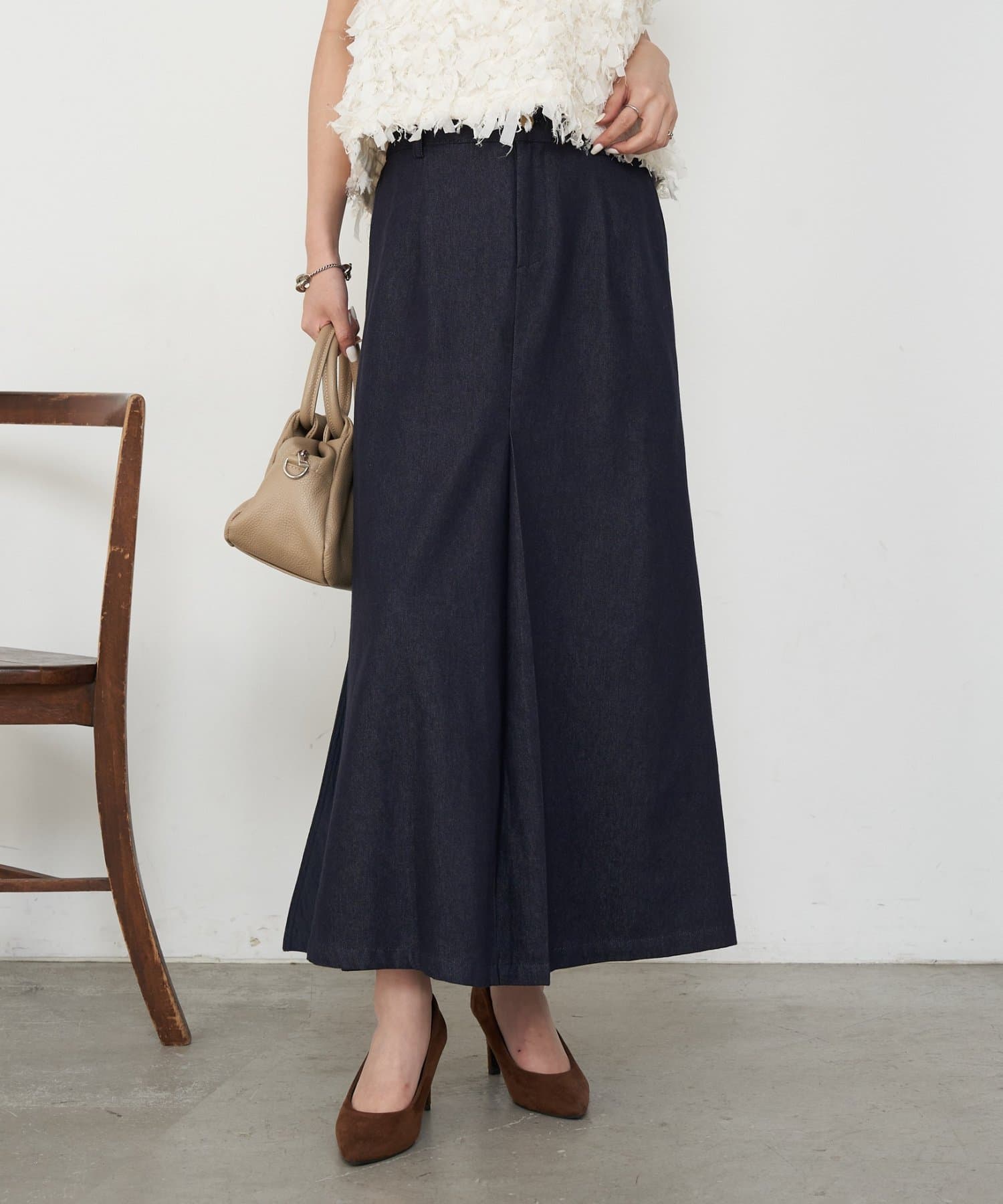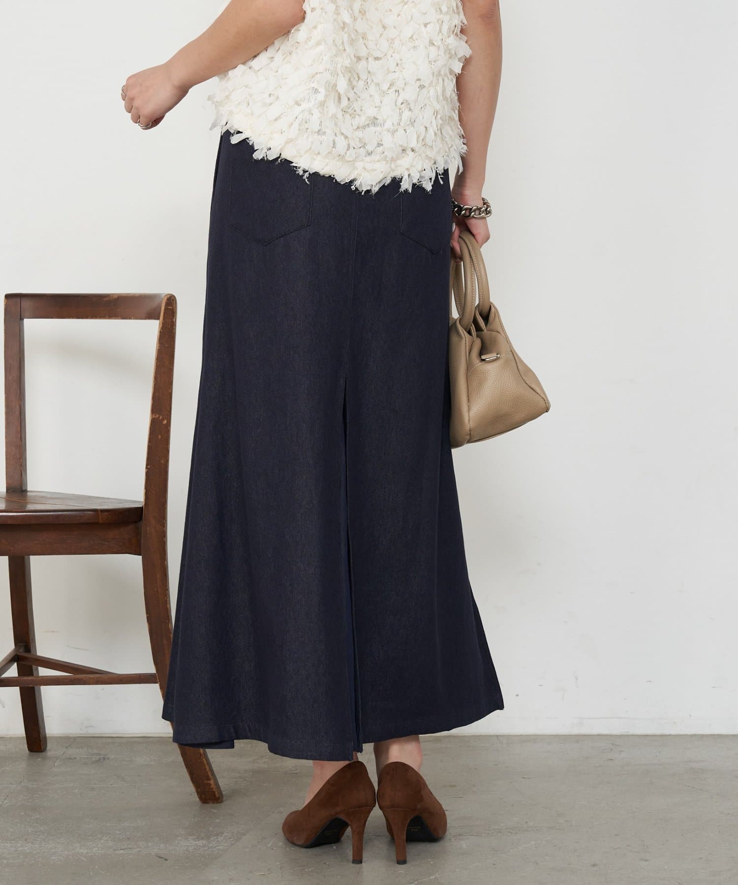 ・カジュアルなイメージの強いデニム素材を、上品なフレアシルエットで女性らしく昇華させたロングスカート。