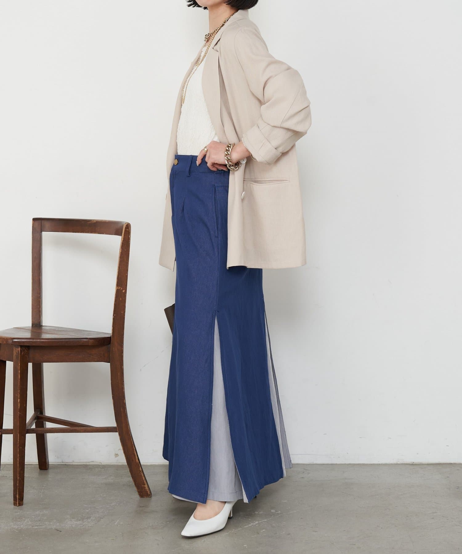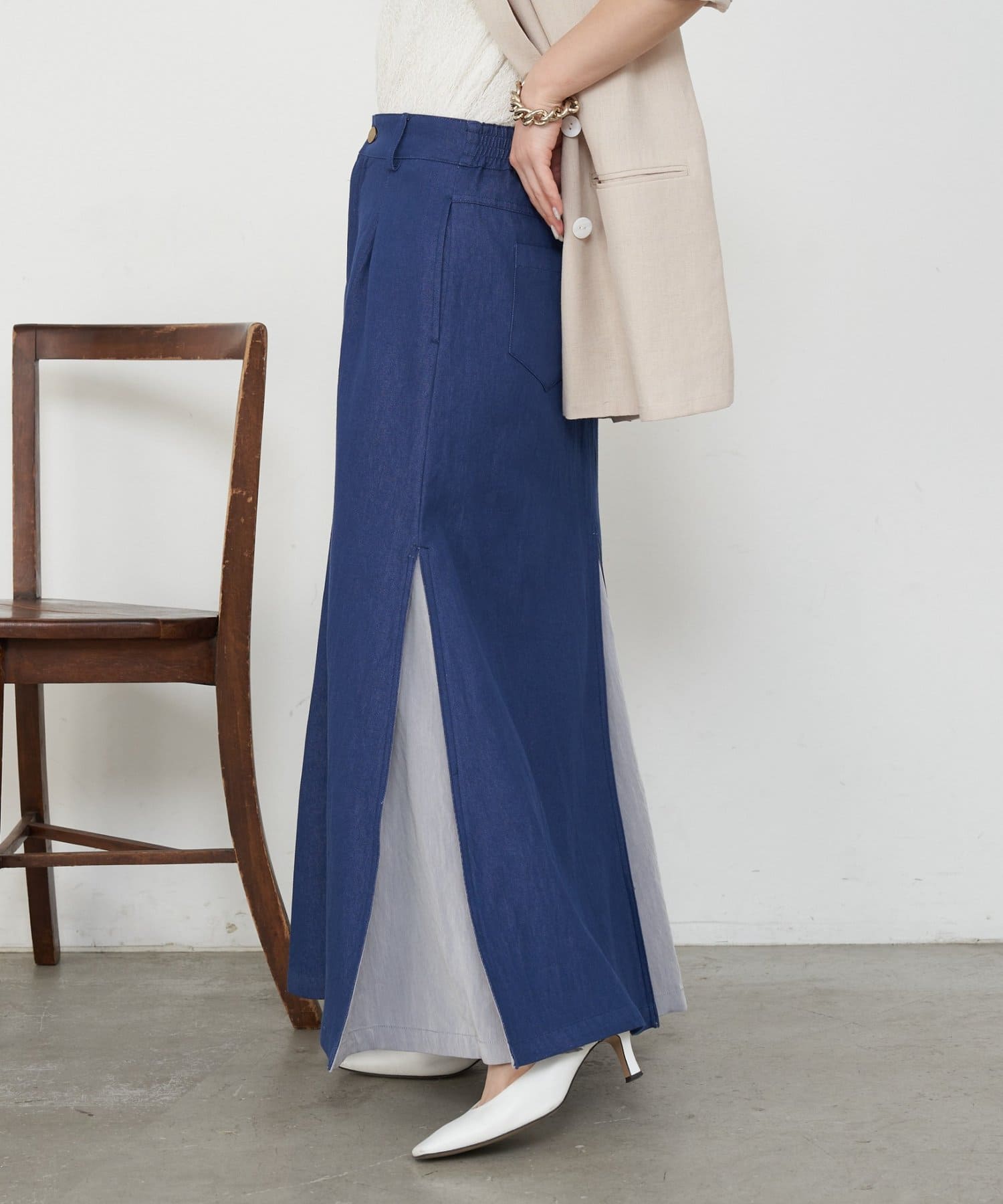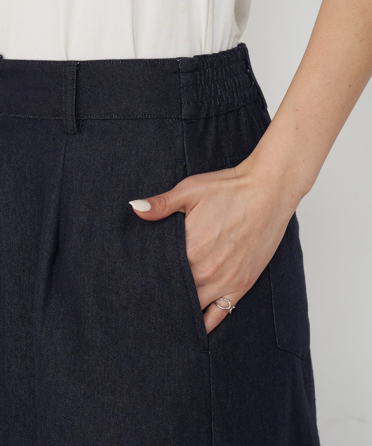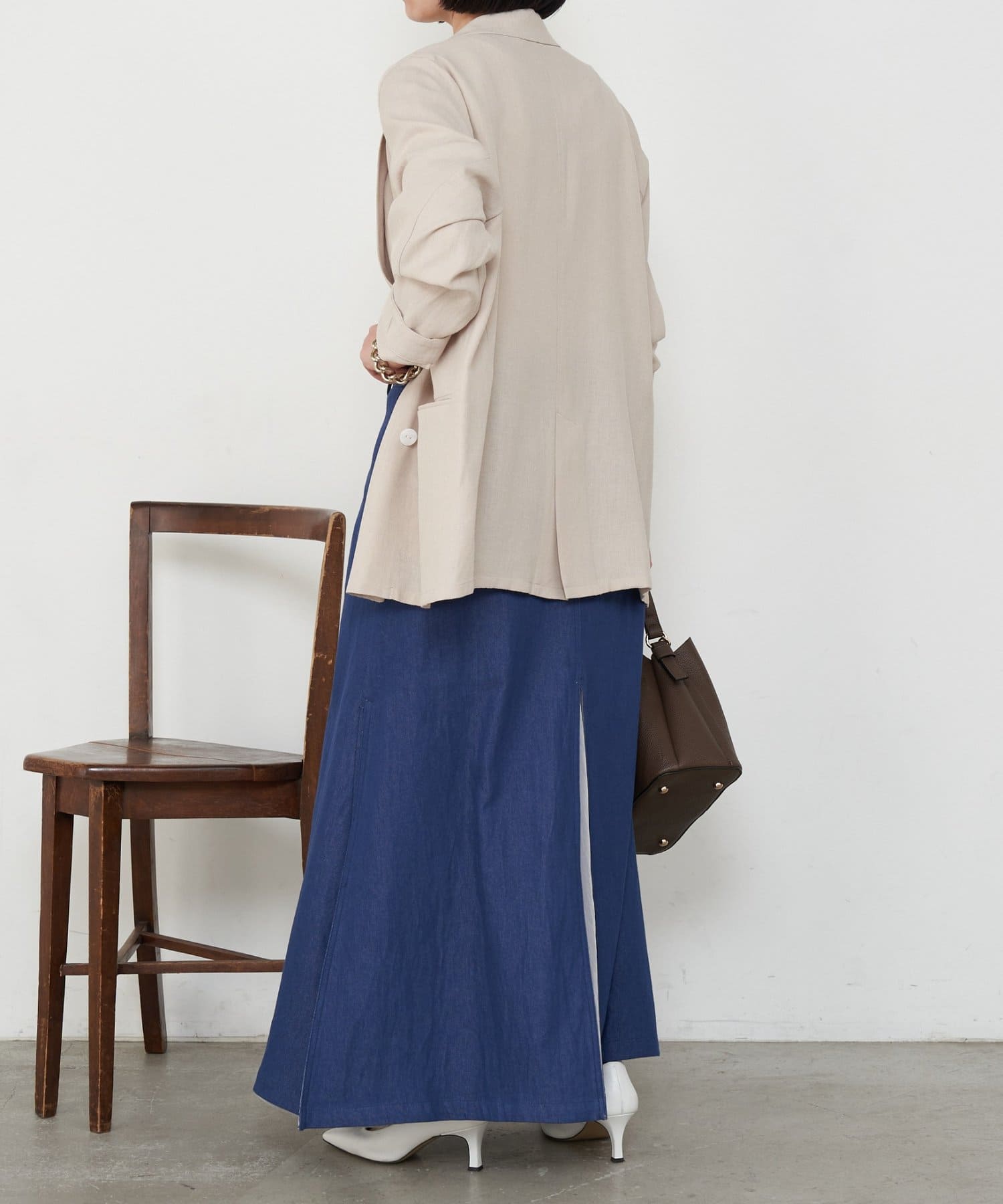 ・カジュアルなイメージの強いデニム素材を、上品なフレアシルエットで女性らしく昇華させたロングスカート。