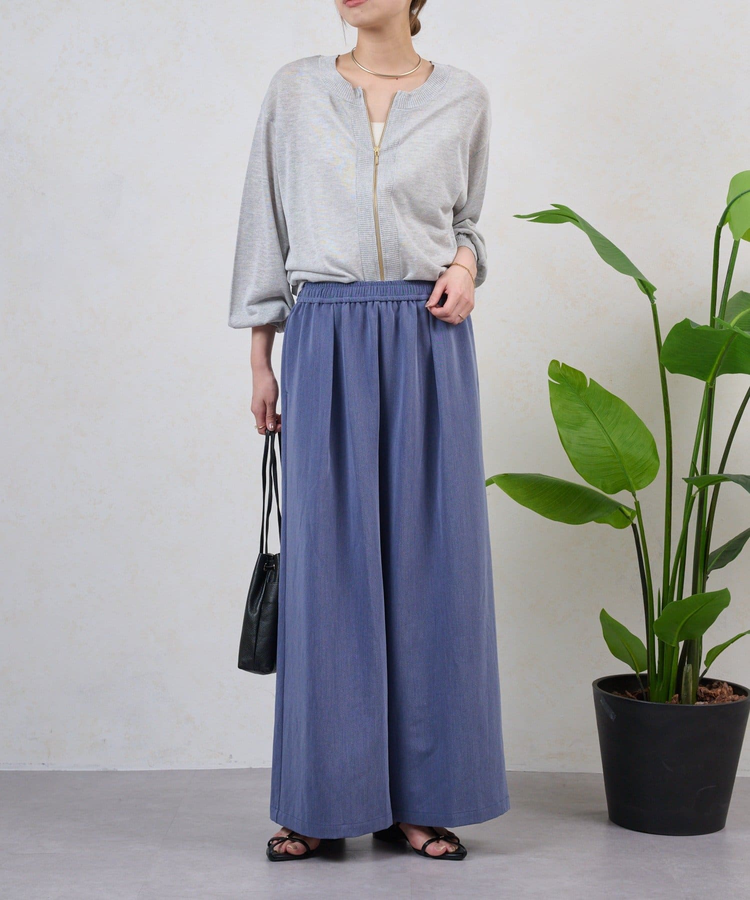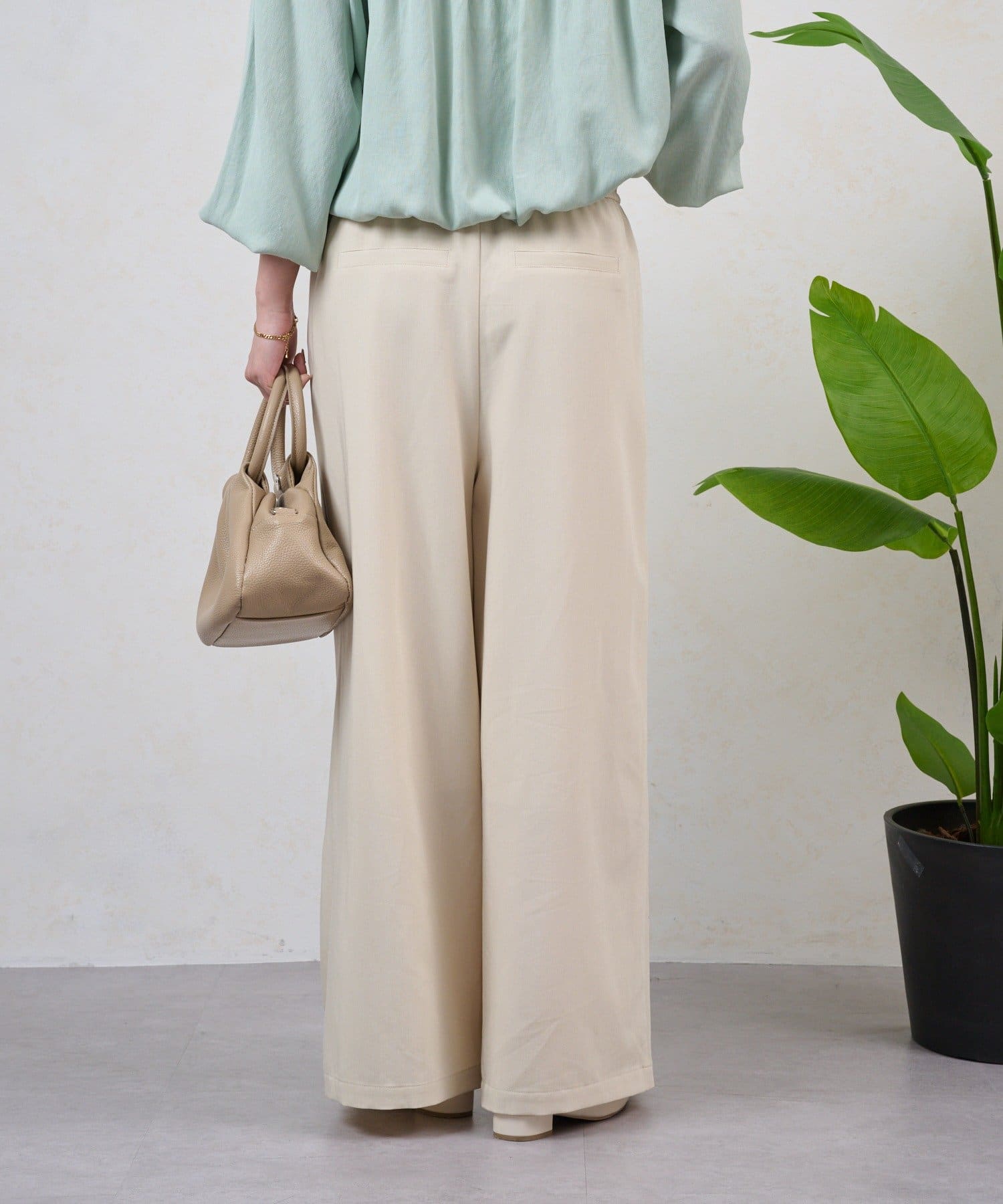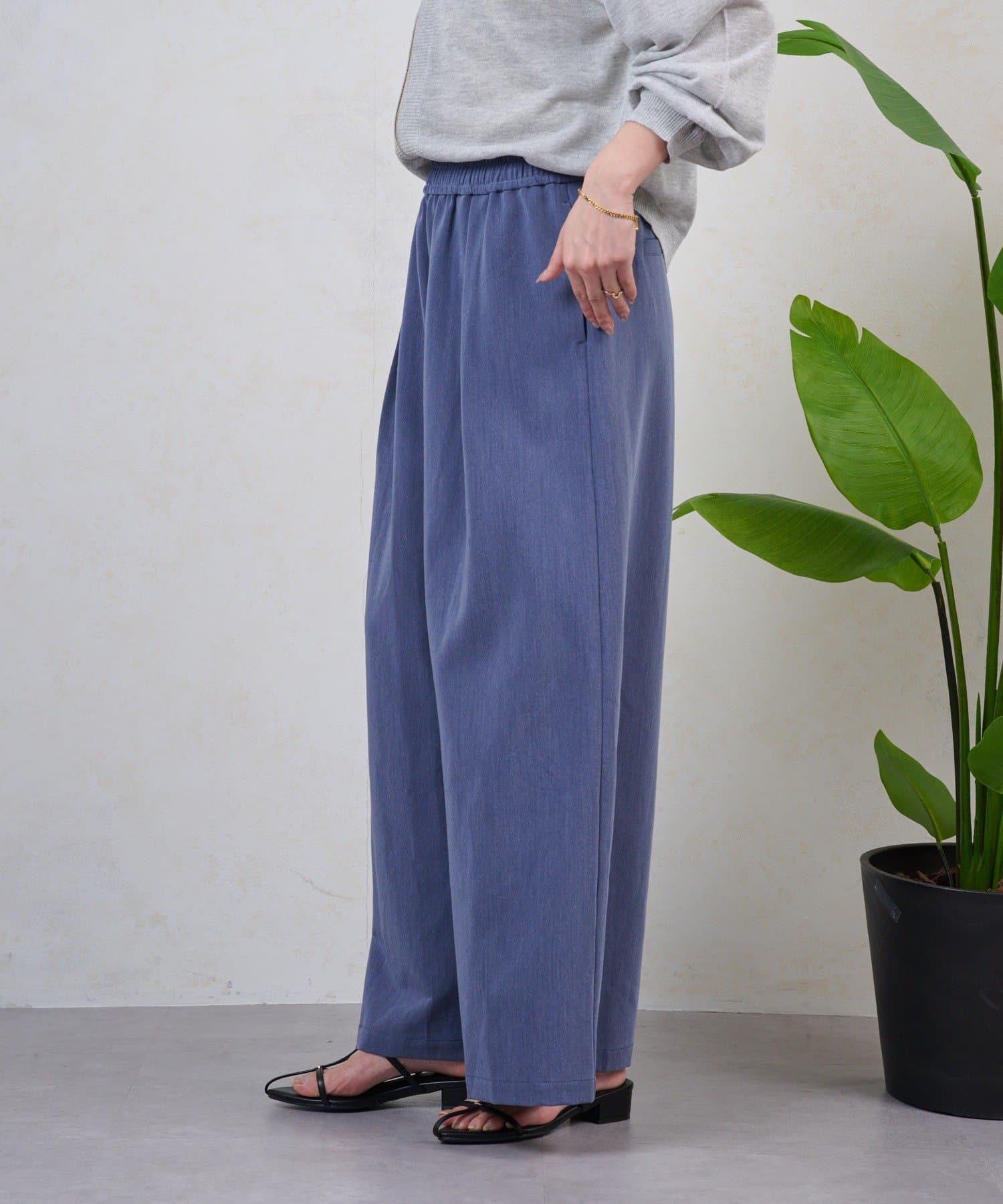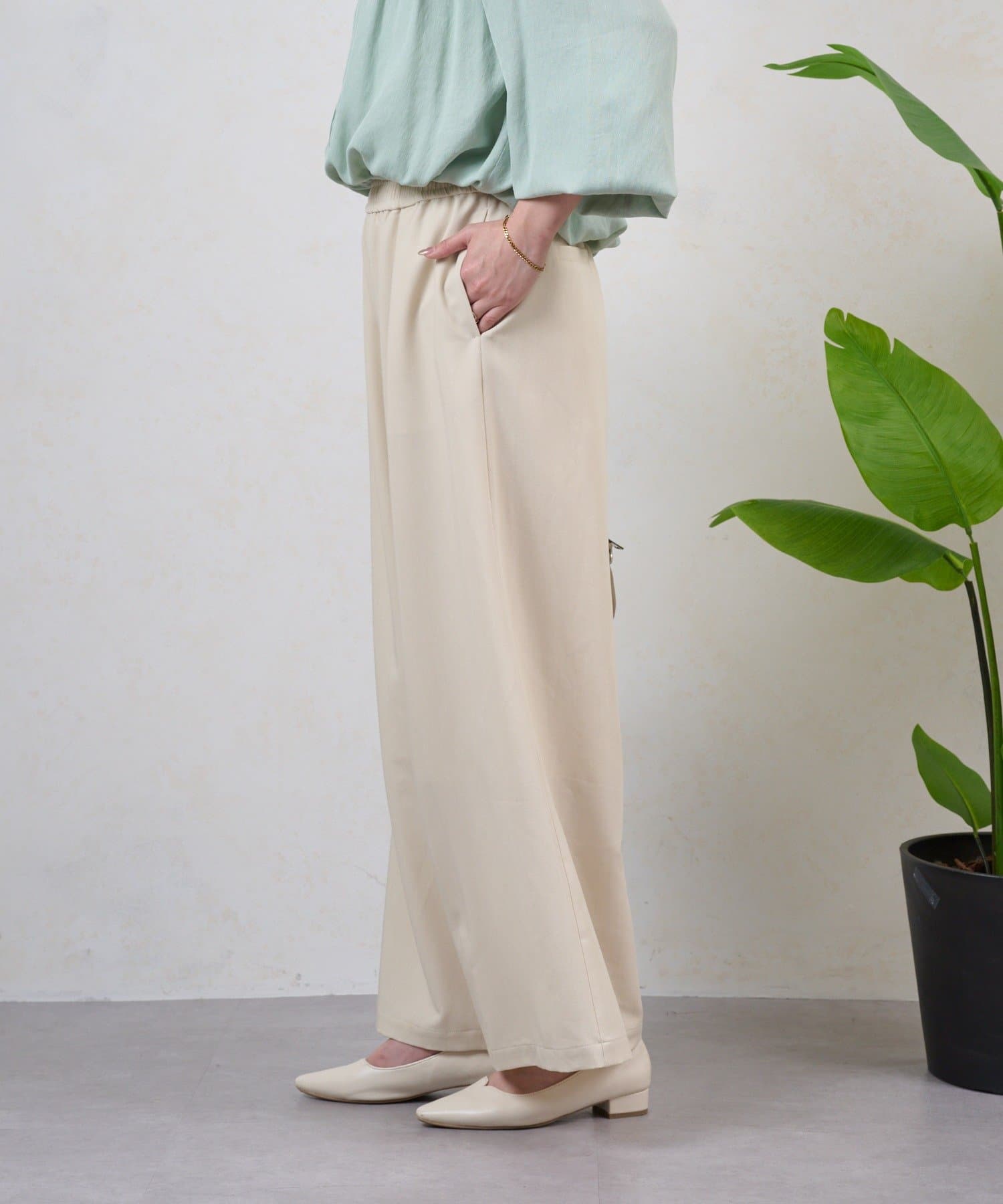 ・テンセル素材で肌触りよく、ラフで抜け感のある印象になる、上品なイージーパンツ。