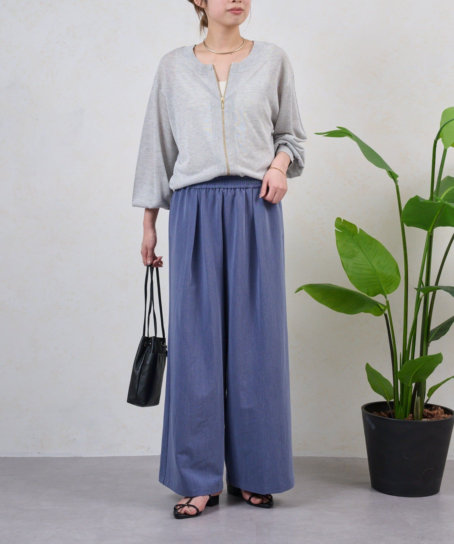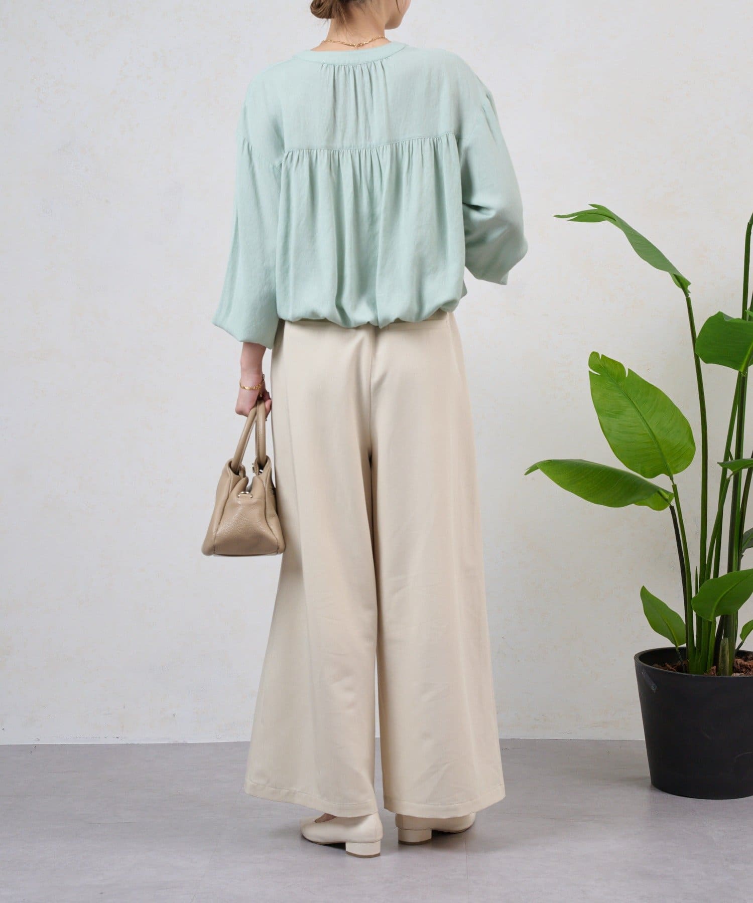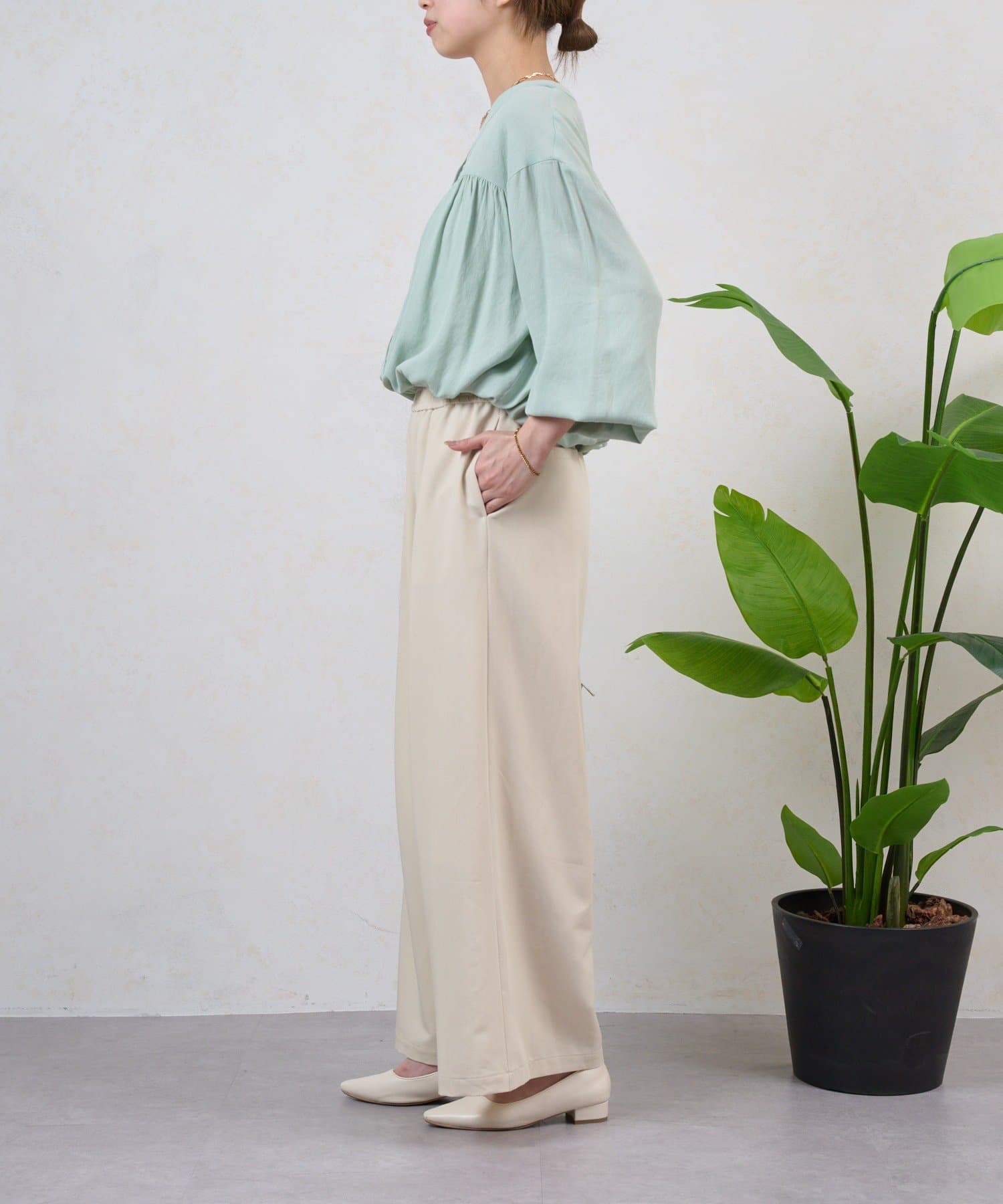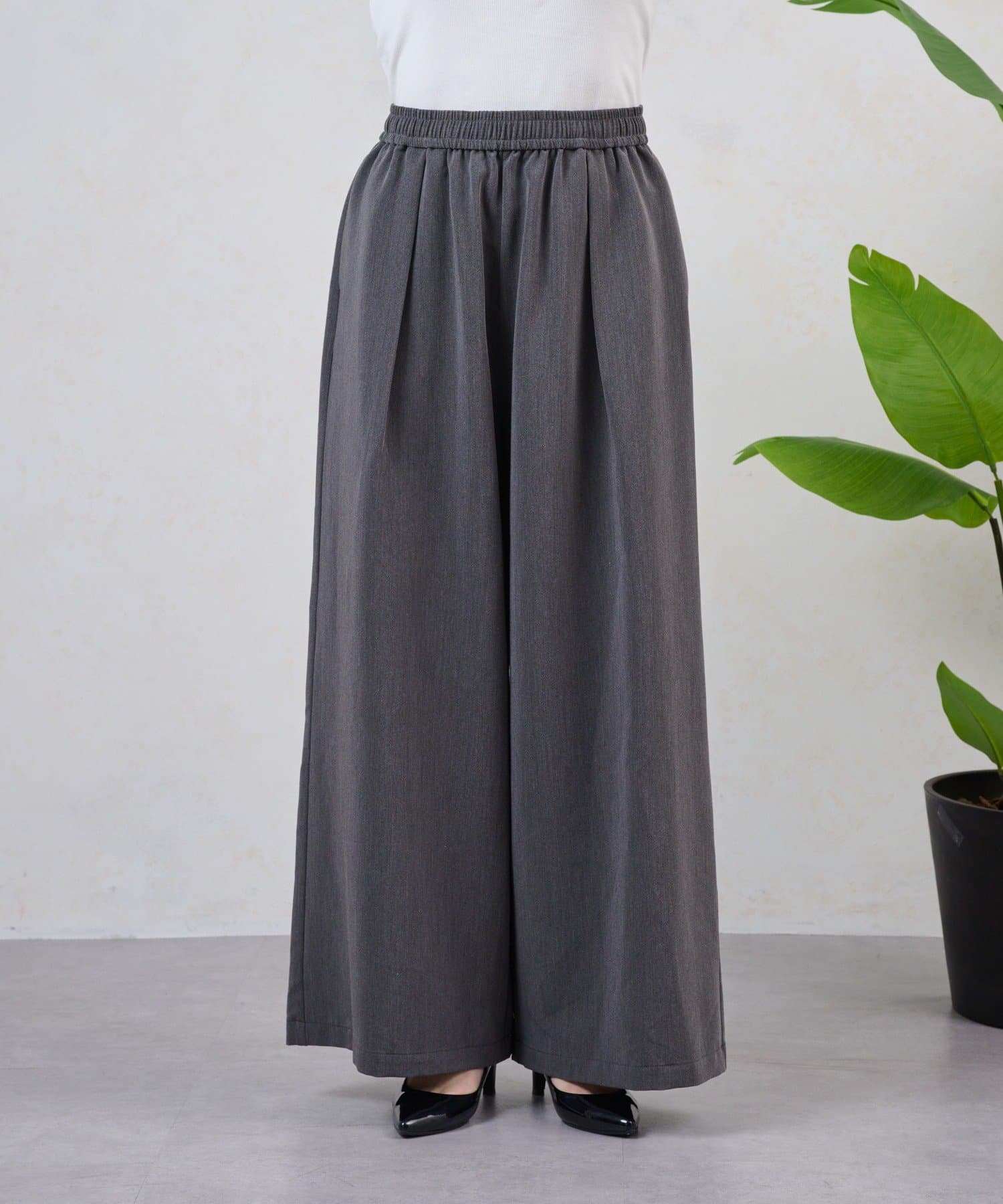 ・テンセル素材で肌触りよく、ラフで抜け感のある印象になる、上品なイージーパンツ。