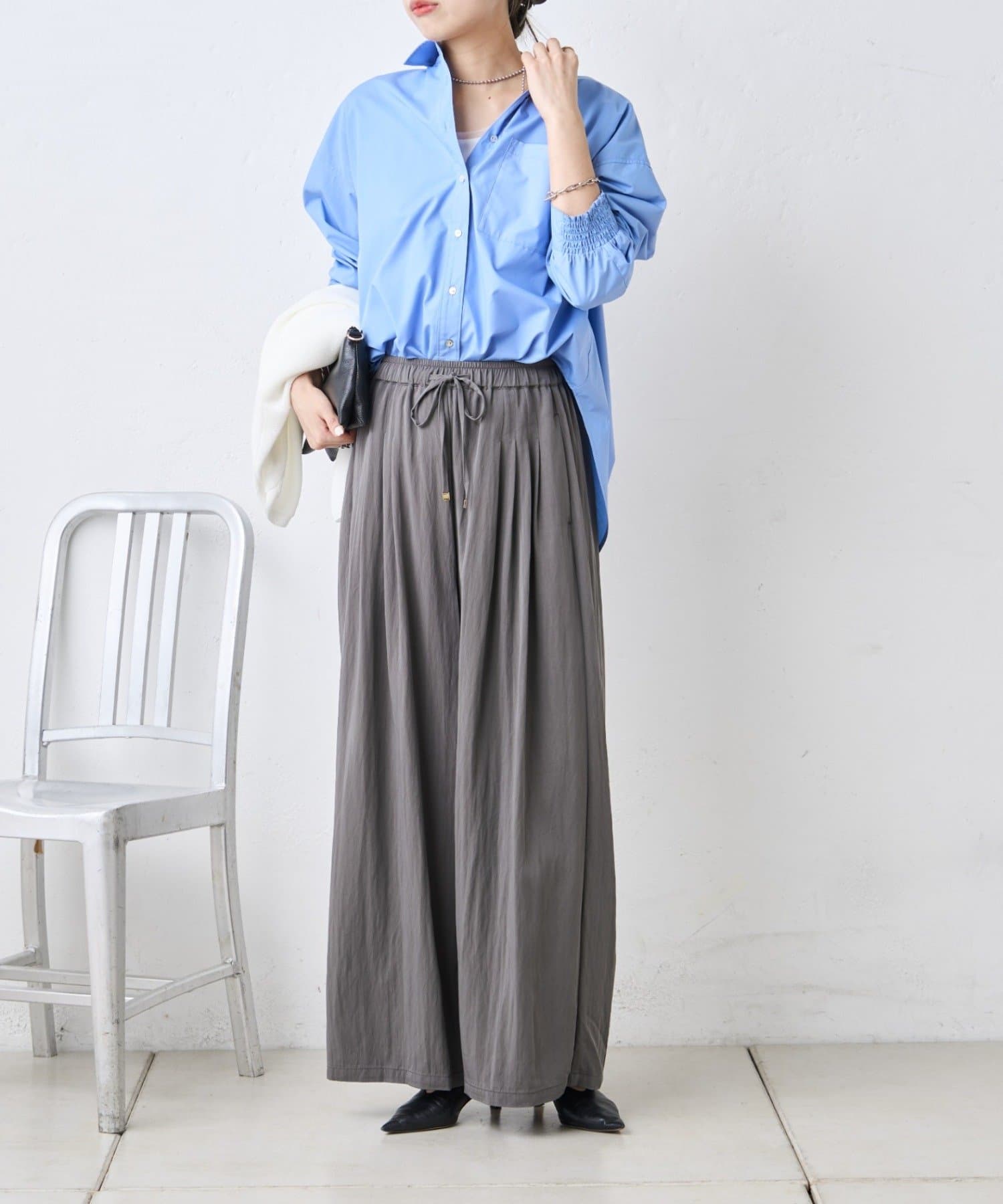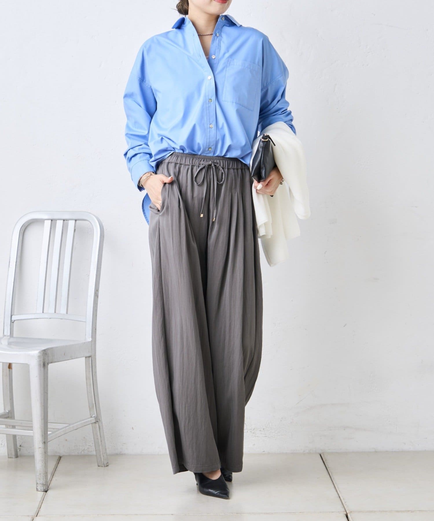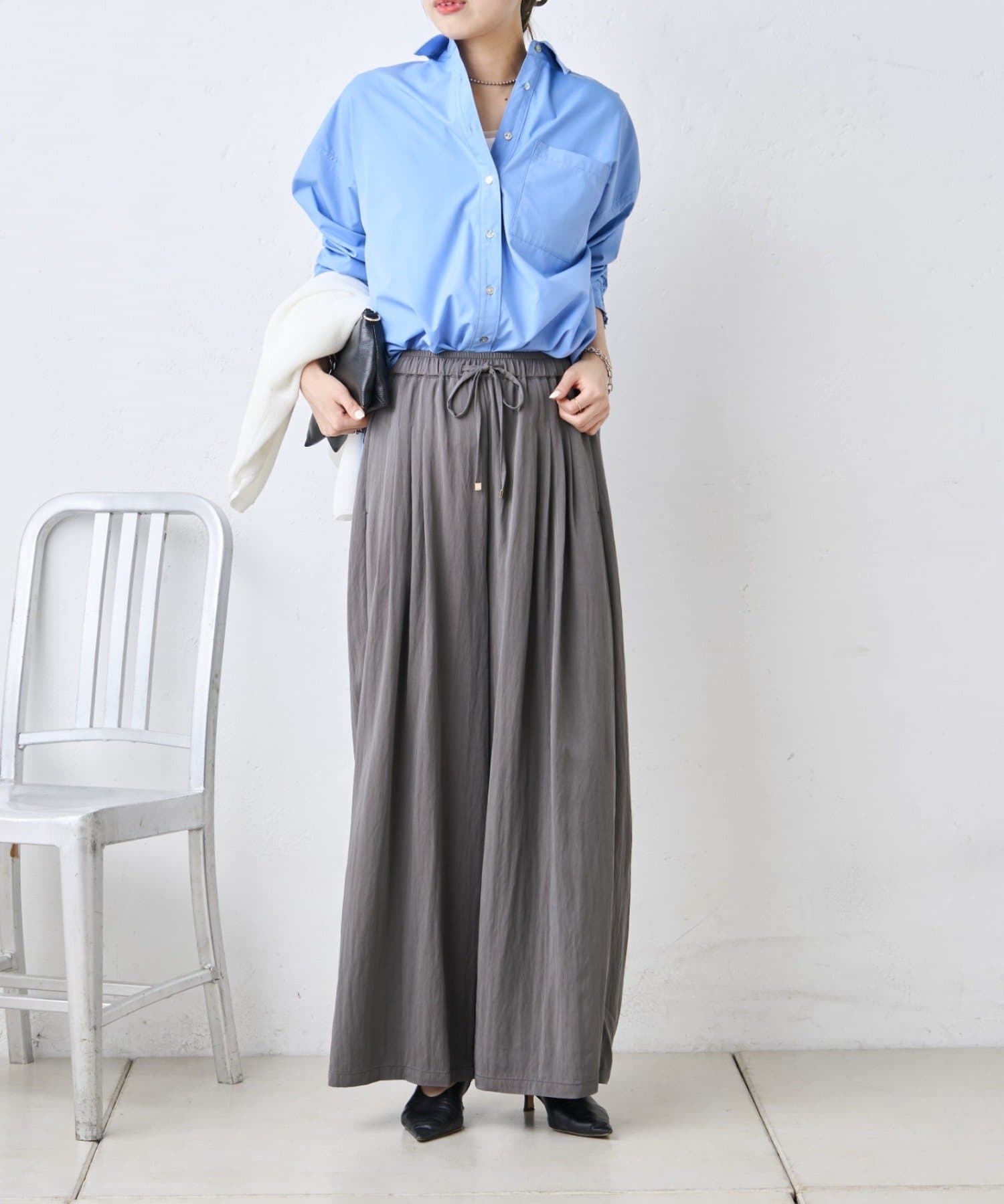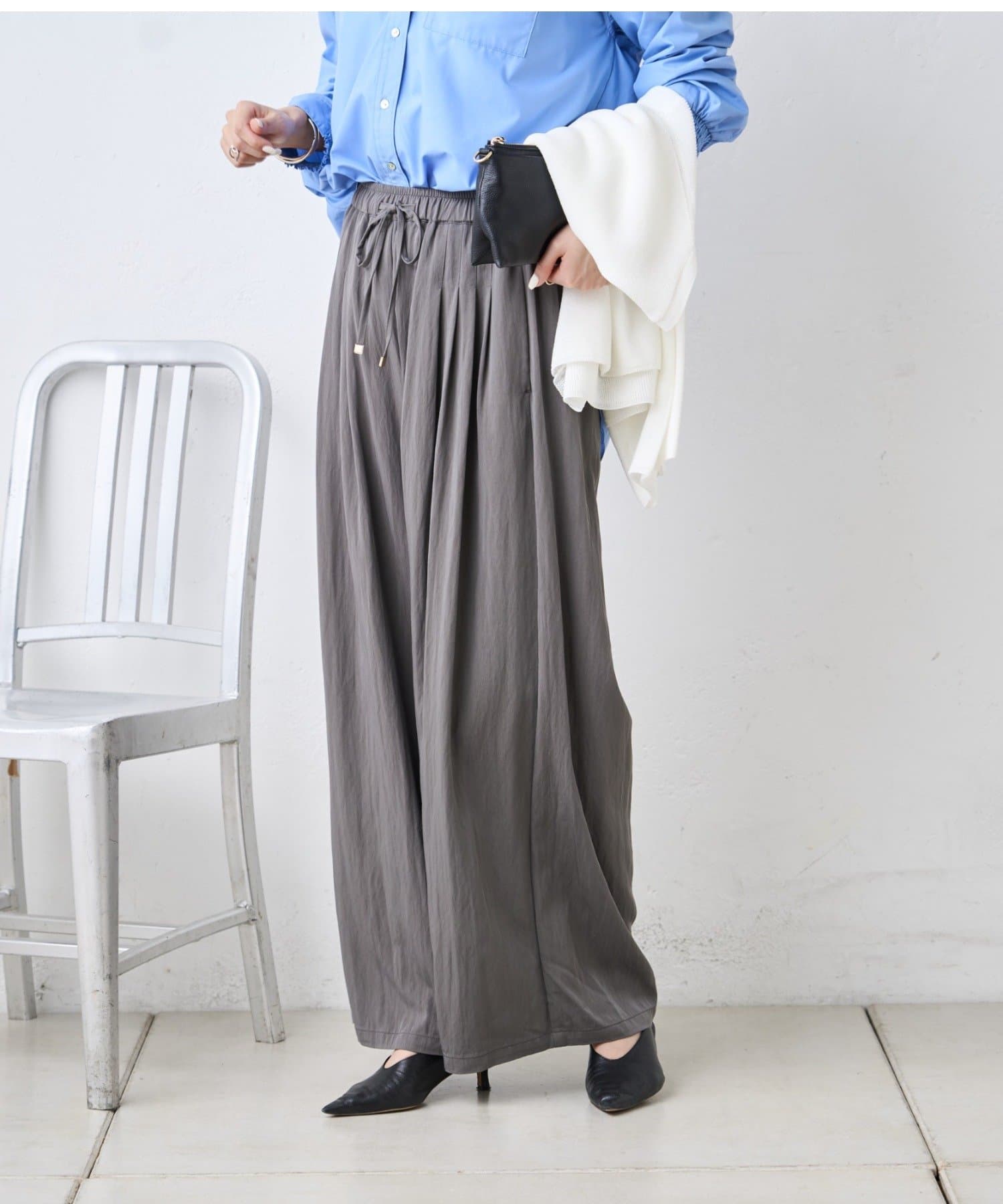 ・トレンドのワイドシルエットで、気になる体型もさりげなくカバー。