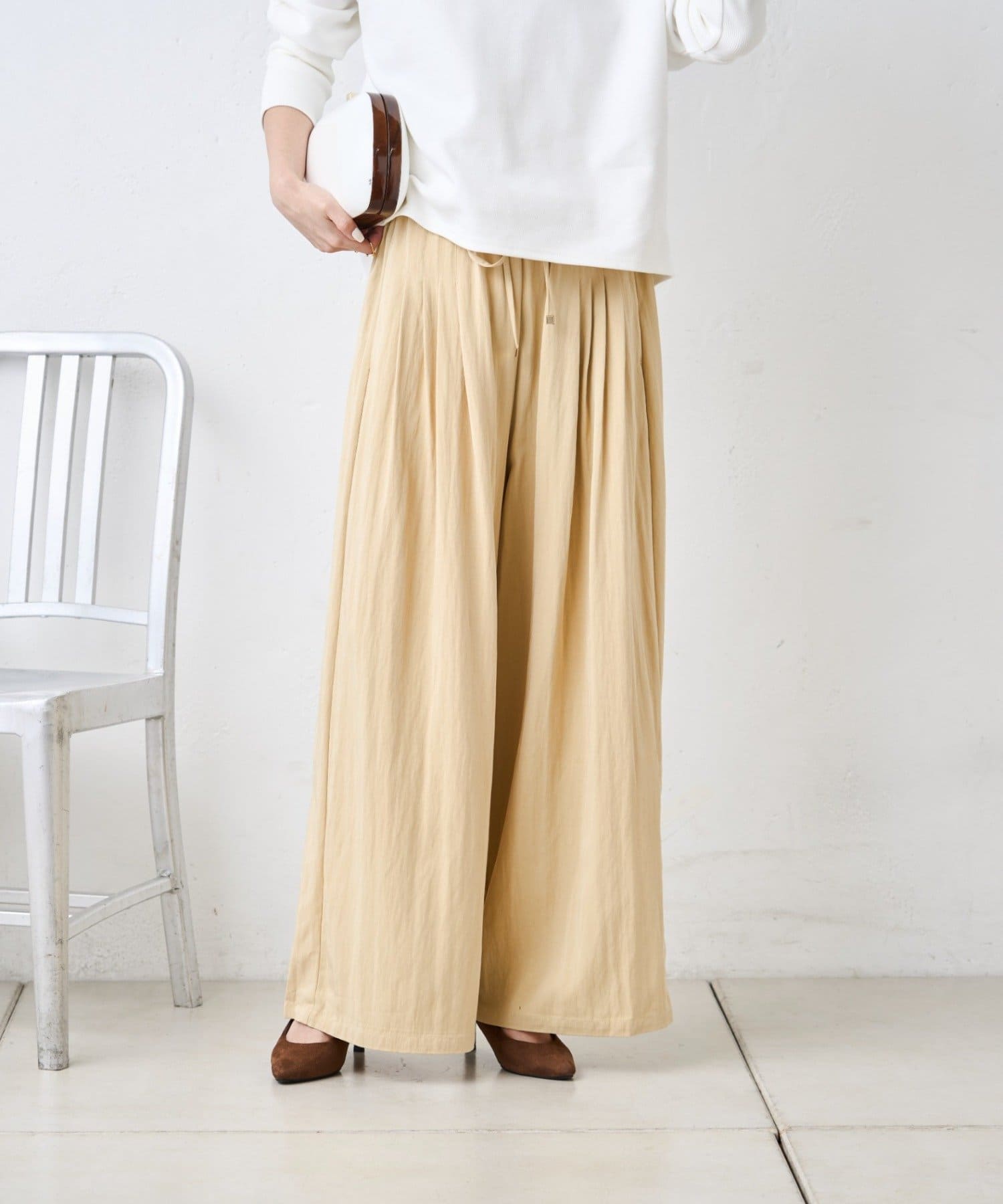 ・リラックス感と上品さを兼ね備えたパンツ。