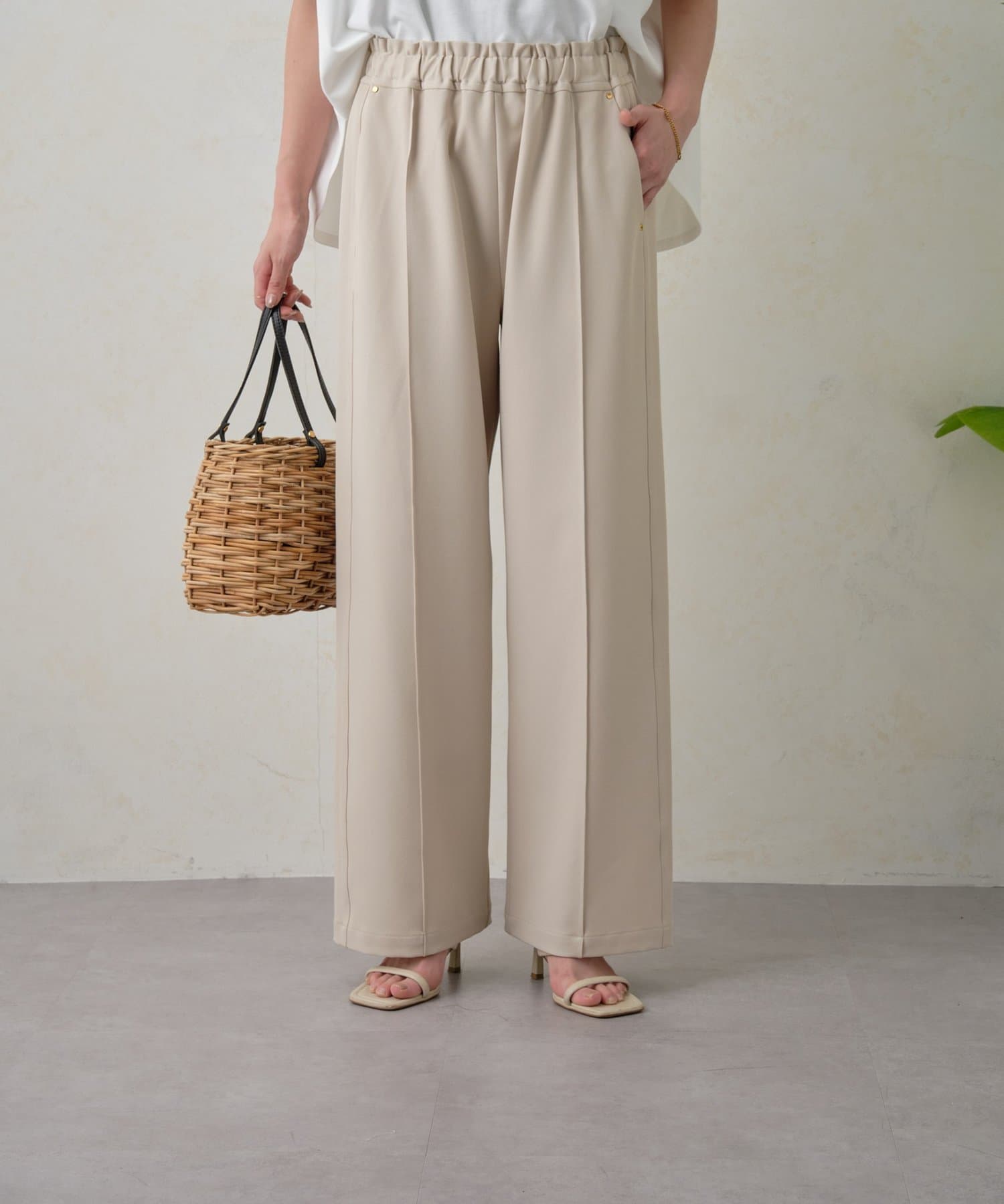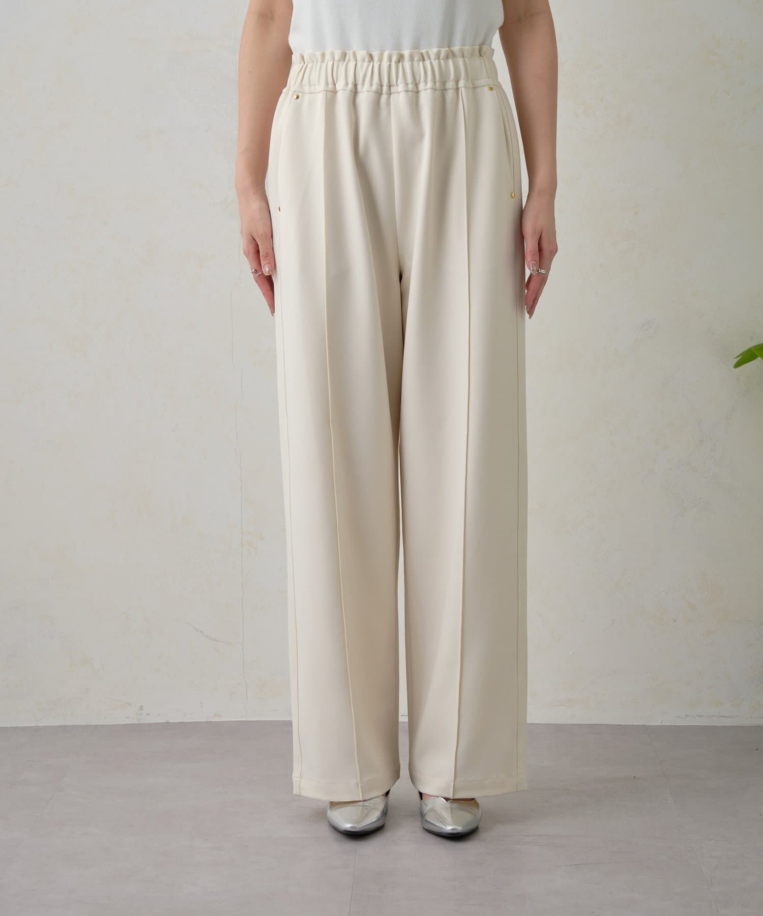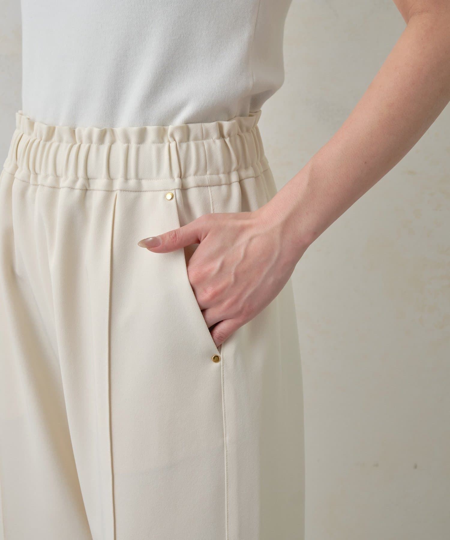 ・ウエスト部分にあしらわれたゴールドスタッズが、上品な印象をプラス。