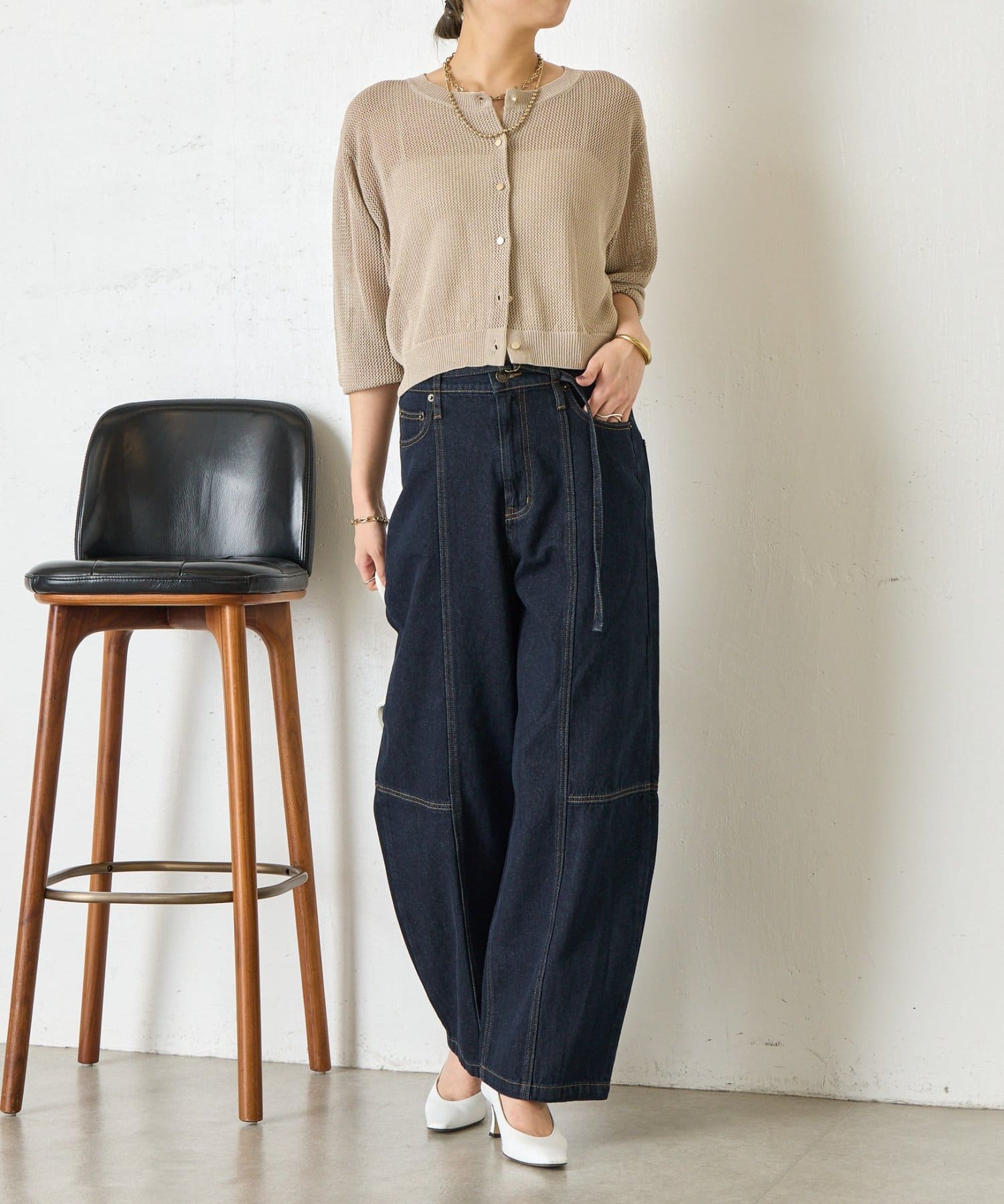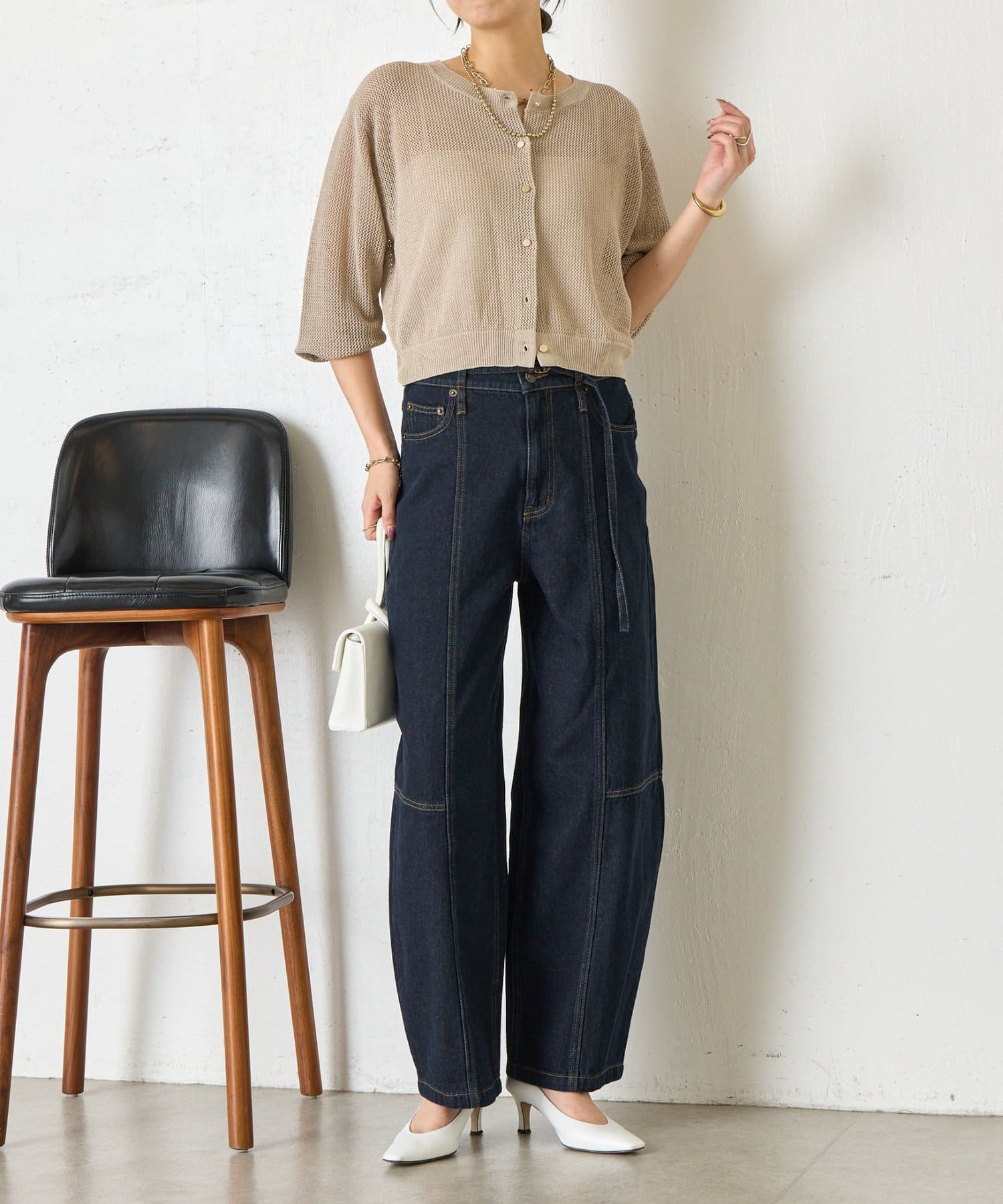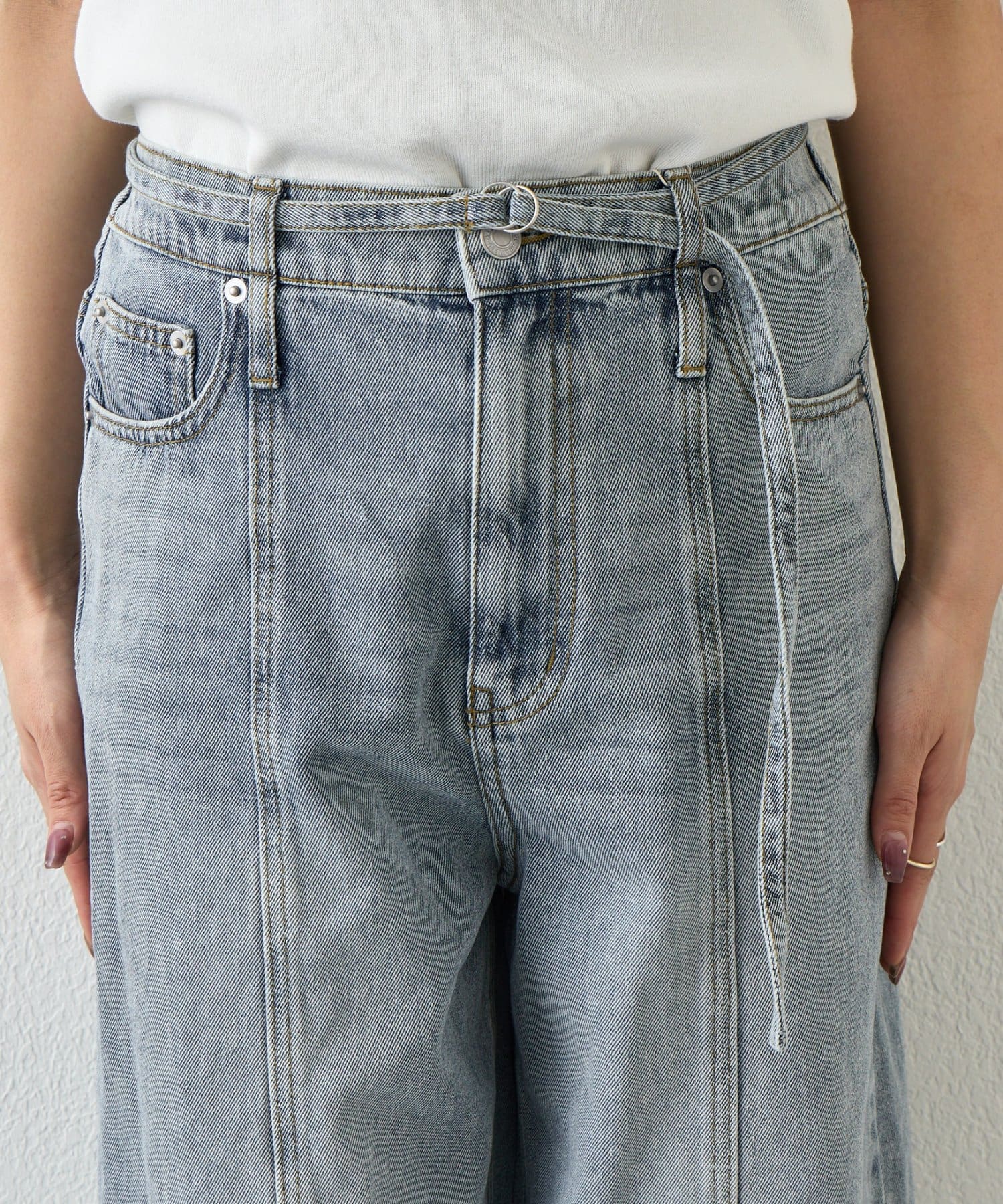 ・細ベルトがアクセントで旬なウエストが完成するデニム。