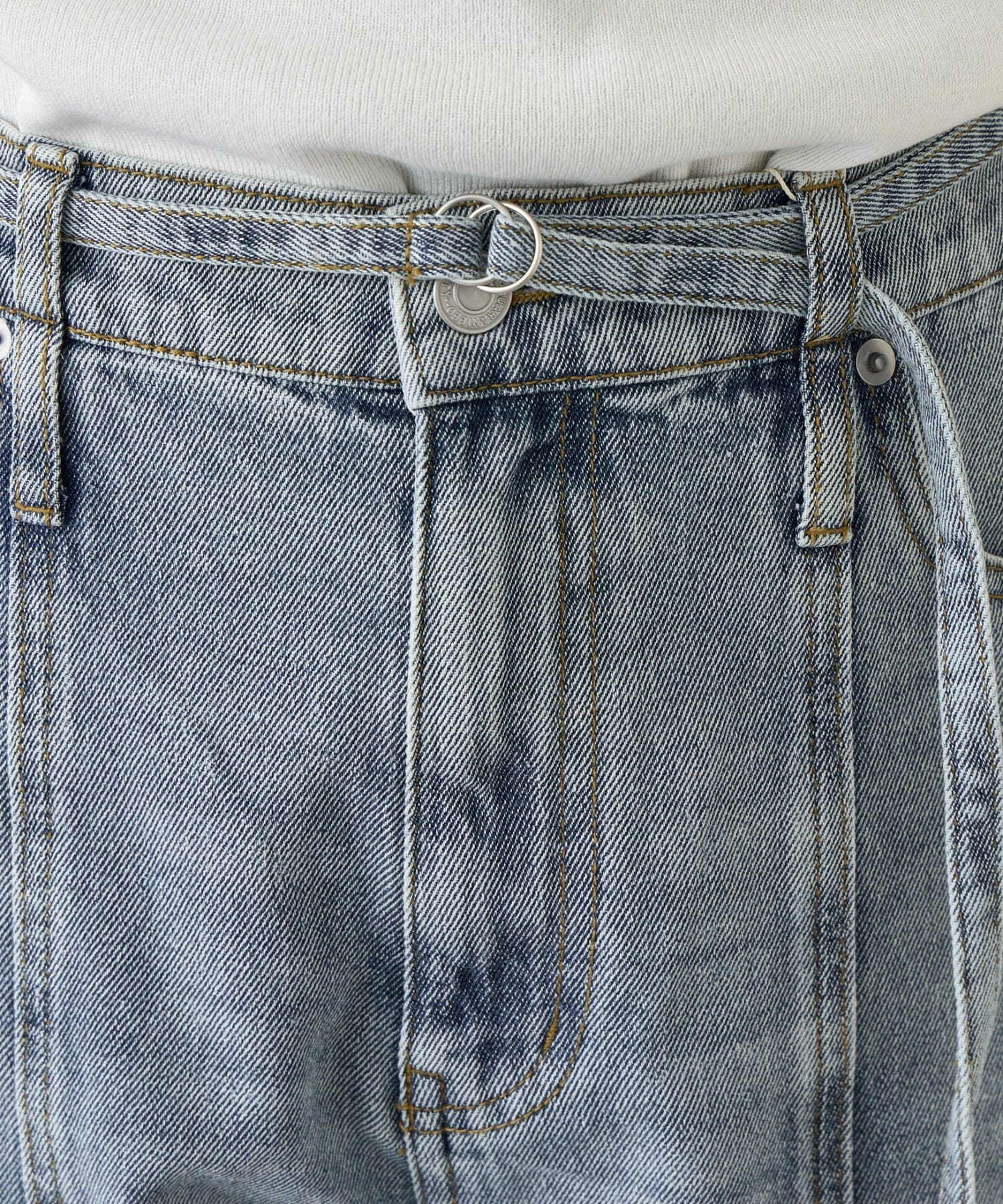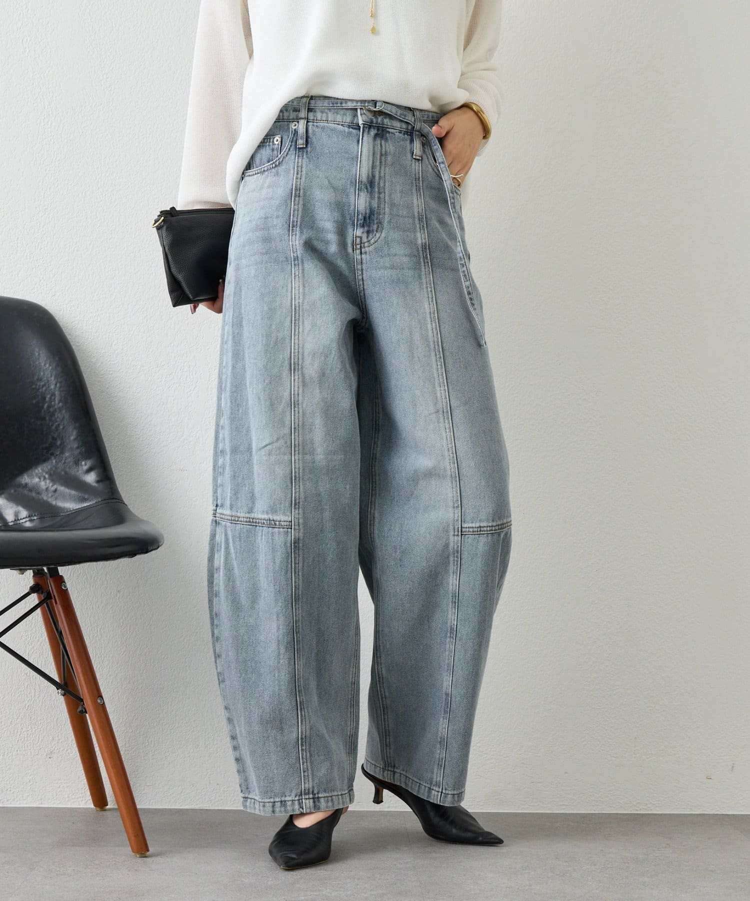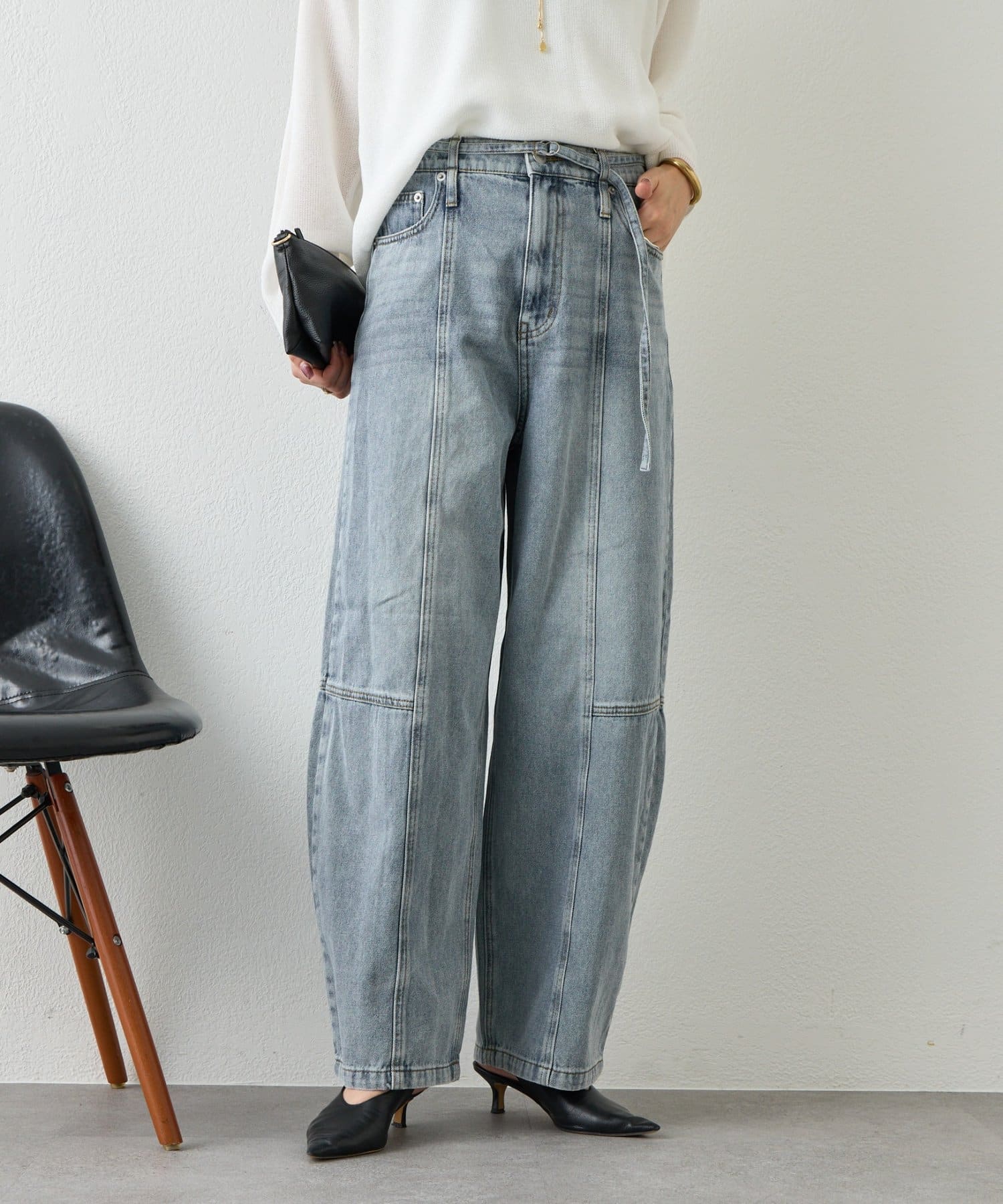 【曲線シルエット】細ベルトカーブデニムパンツ